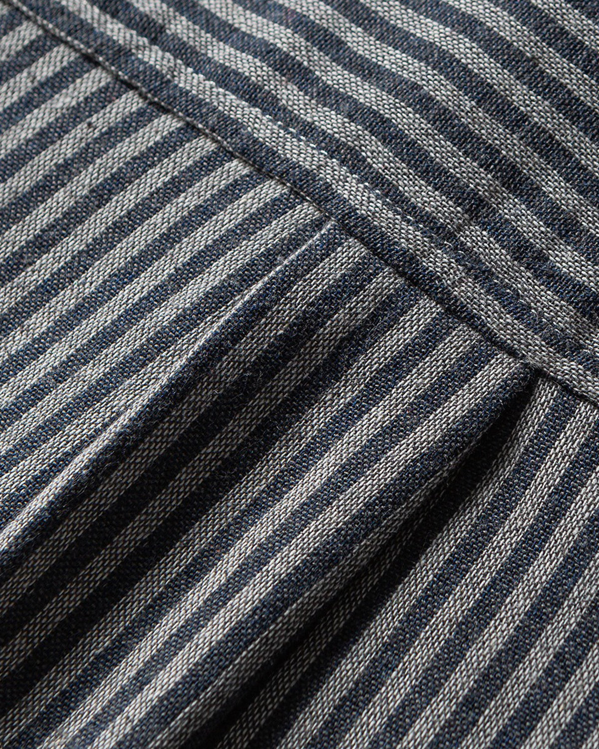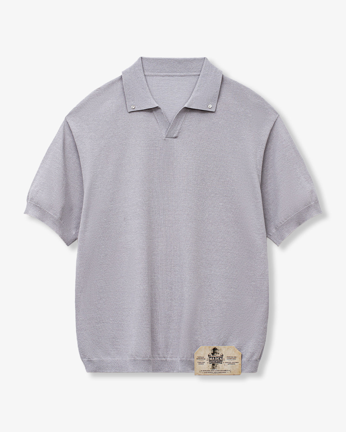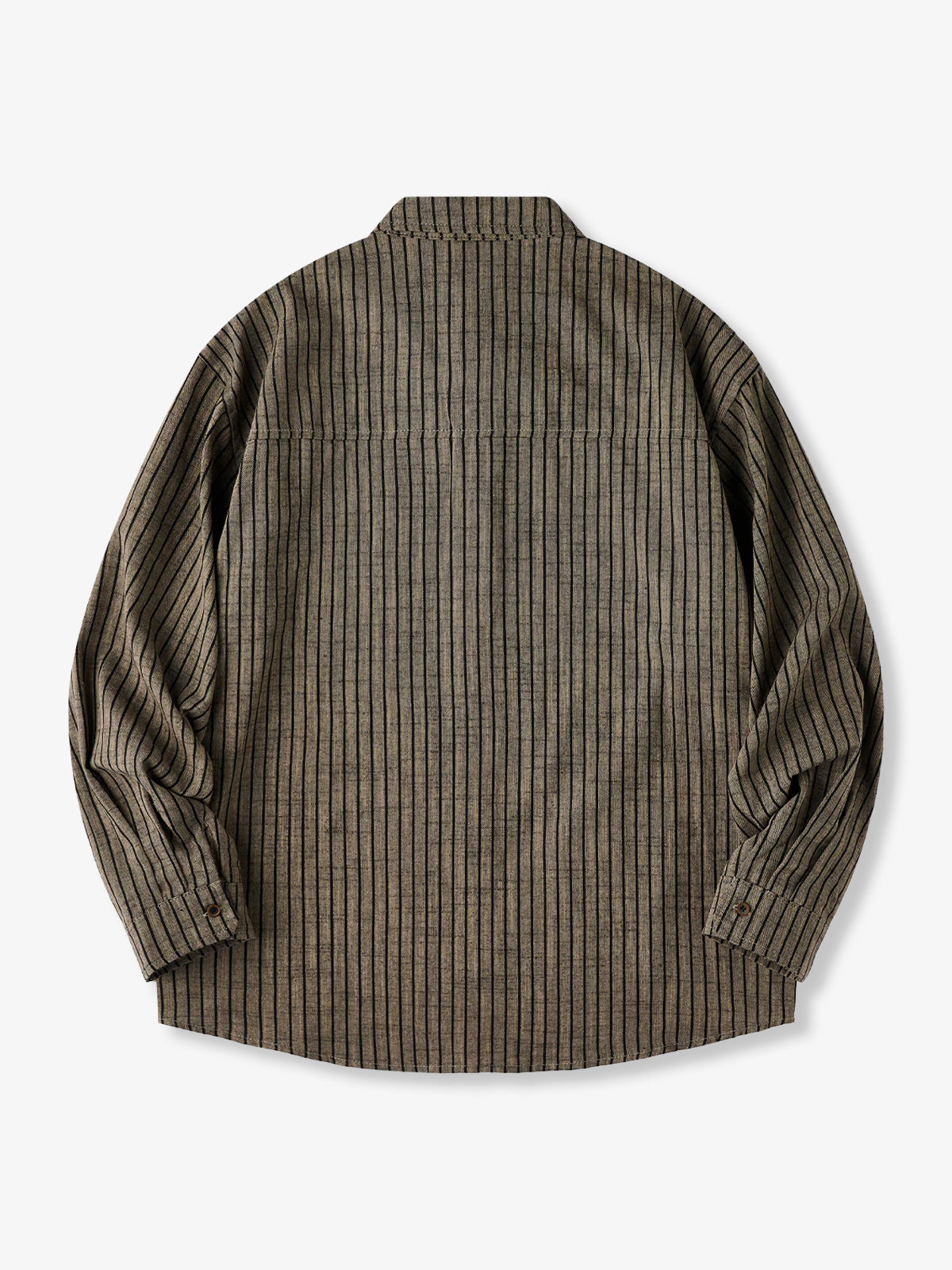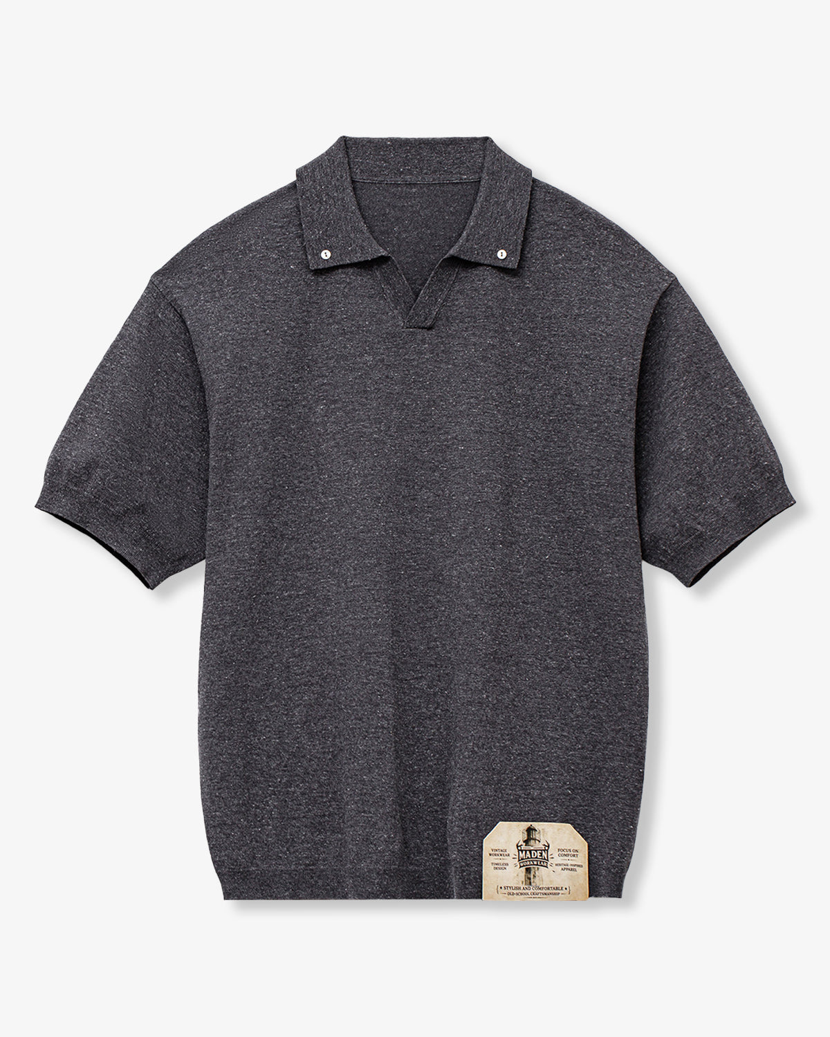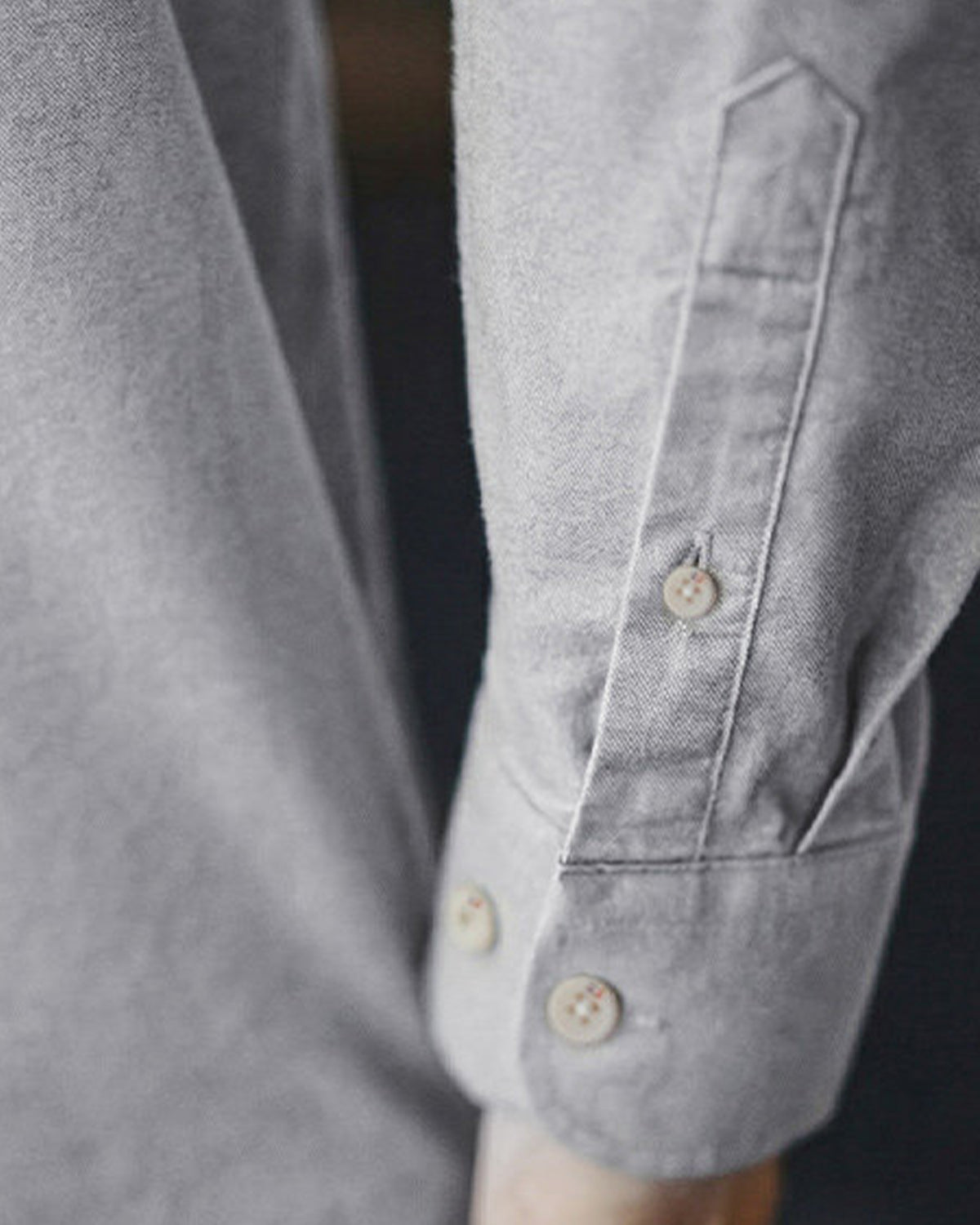 It has no collar, giving it a casual look. The large pockets and color-coordinated buttons are also nice touches.