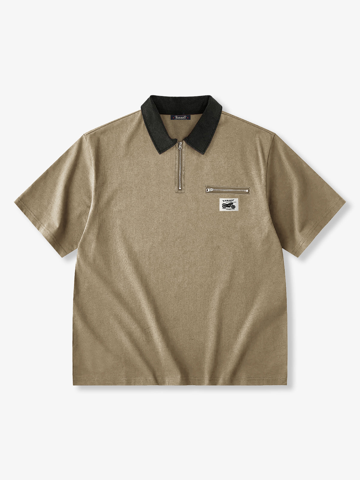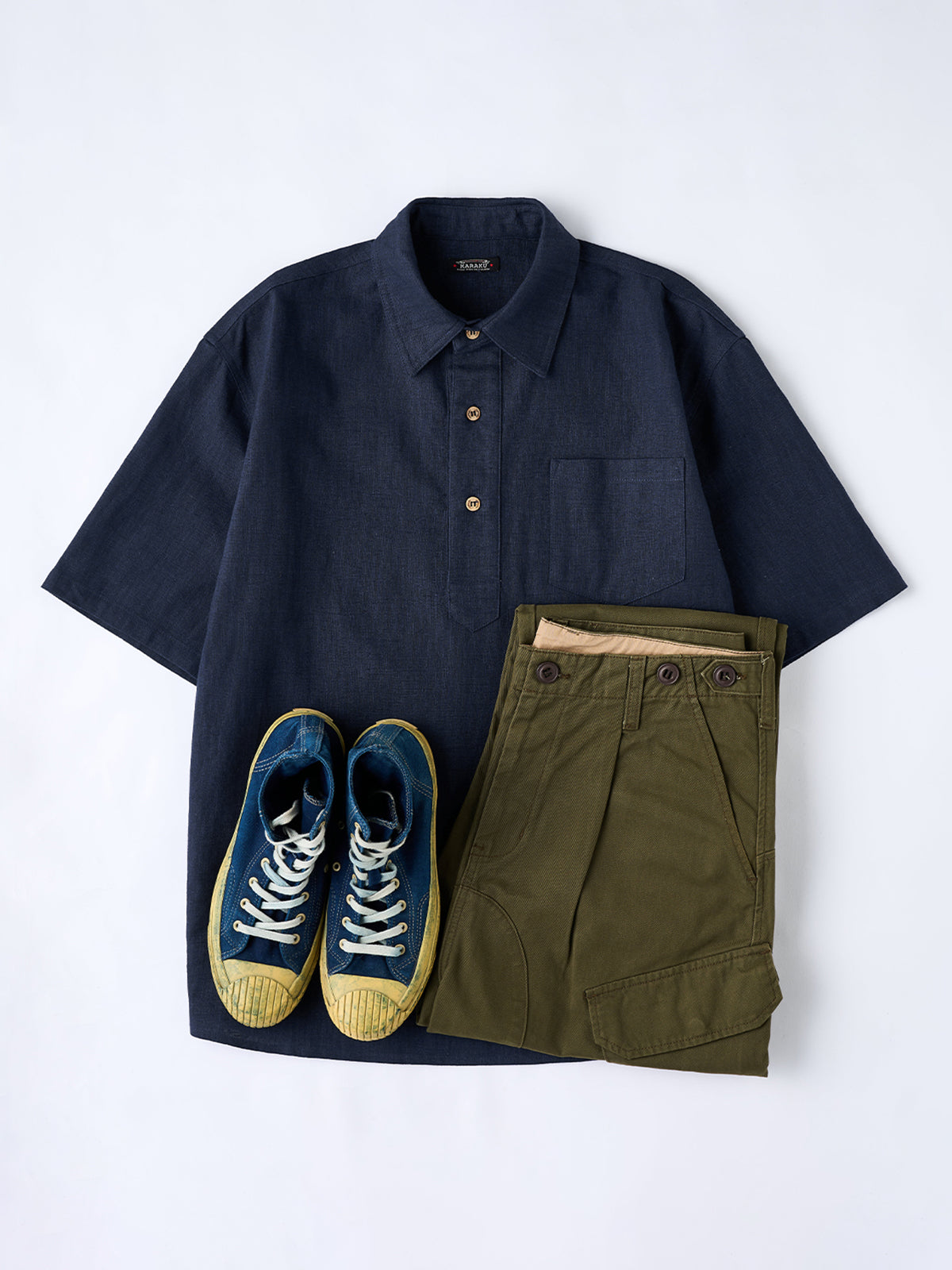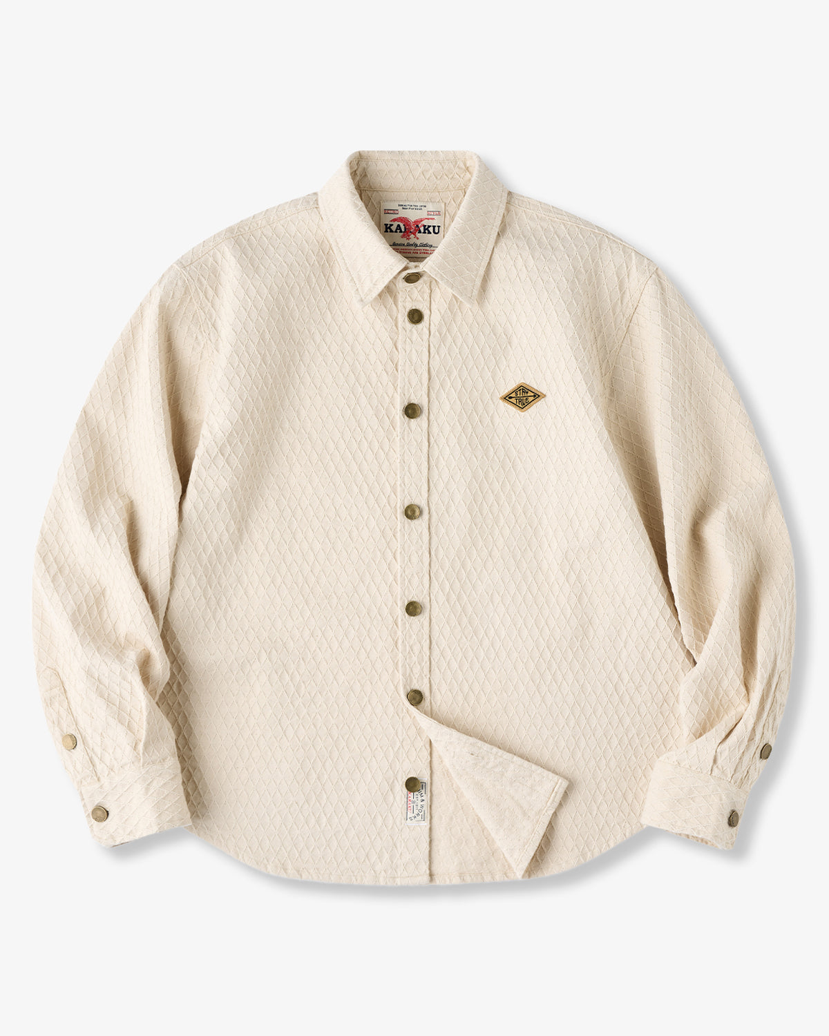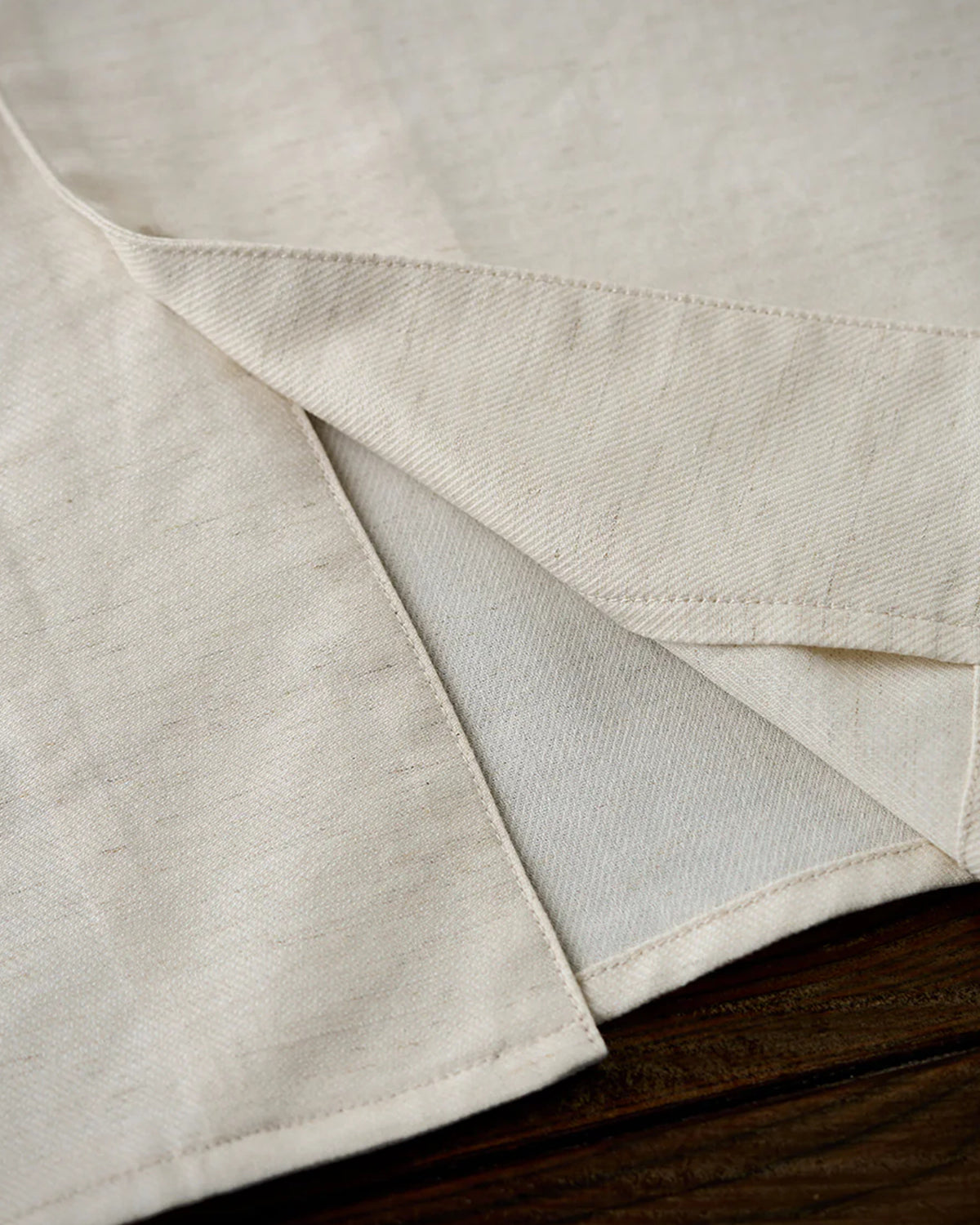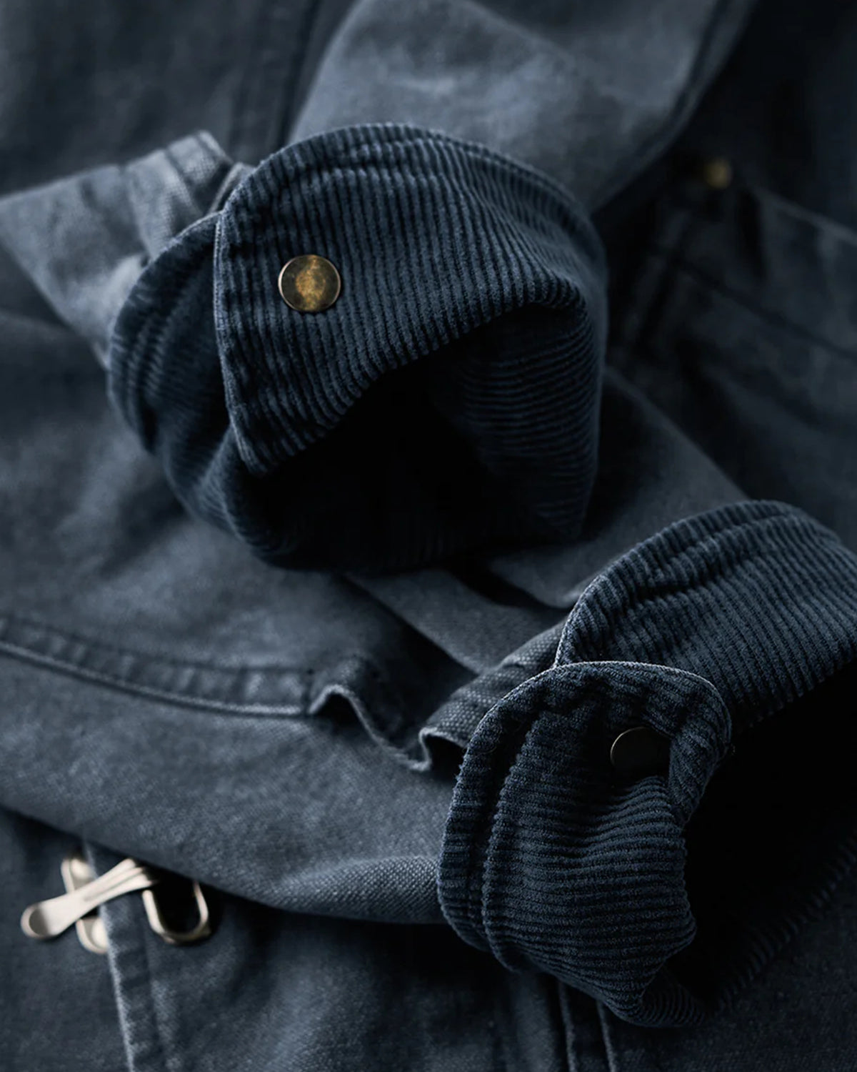 It has no collar, giving it a casual look. The large pockets and color-coordinated buttons are also nice touches.