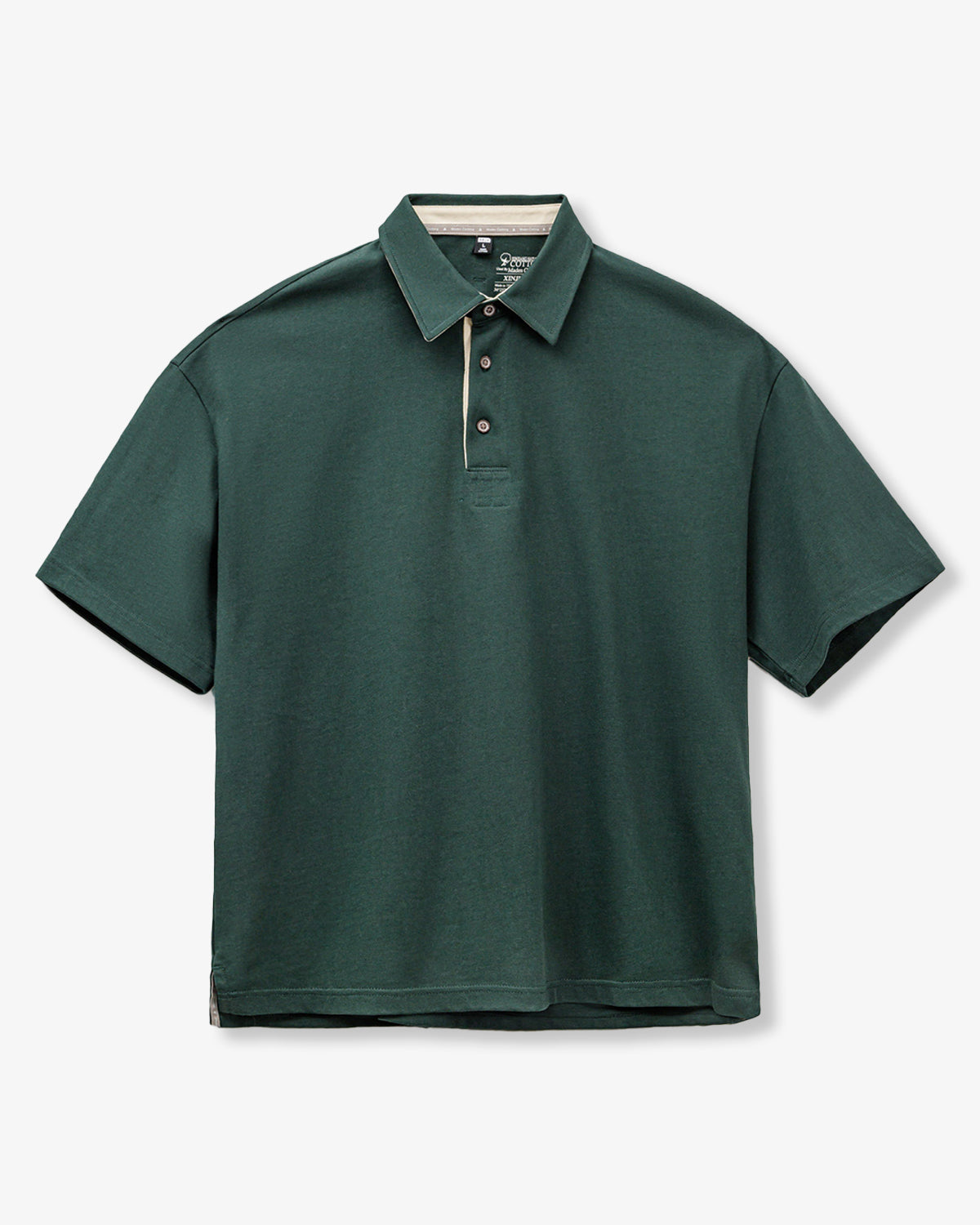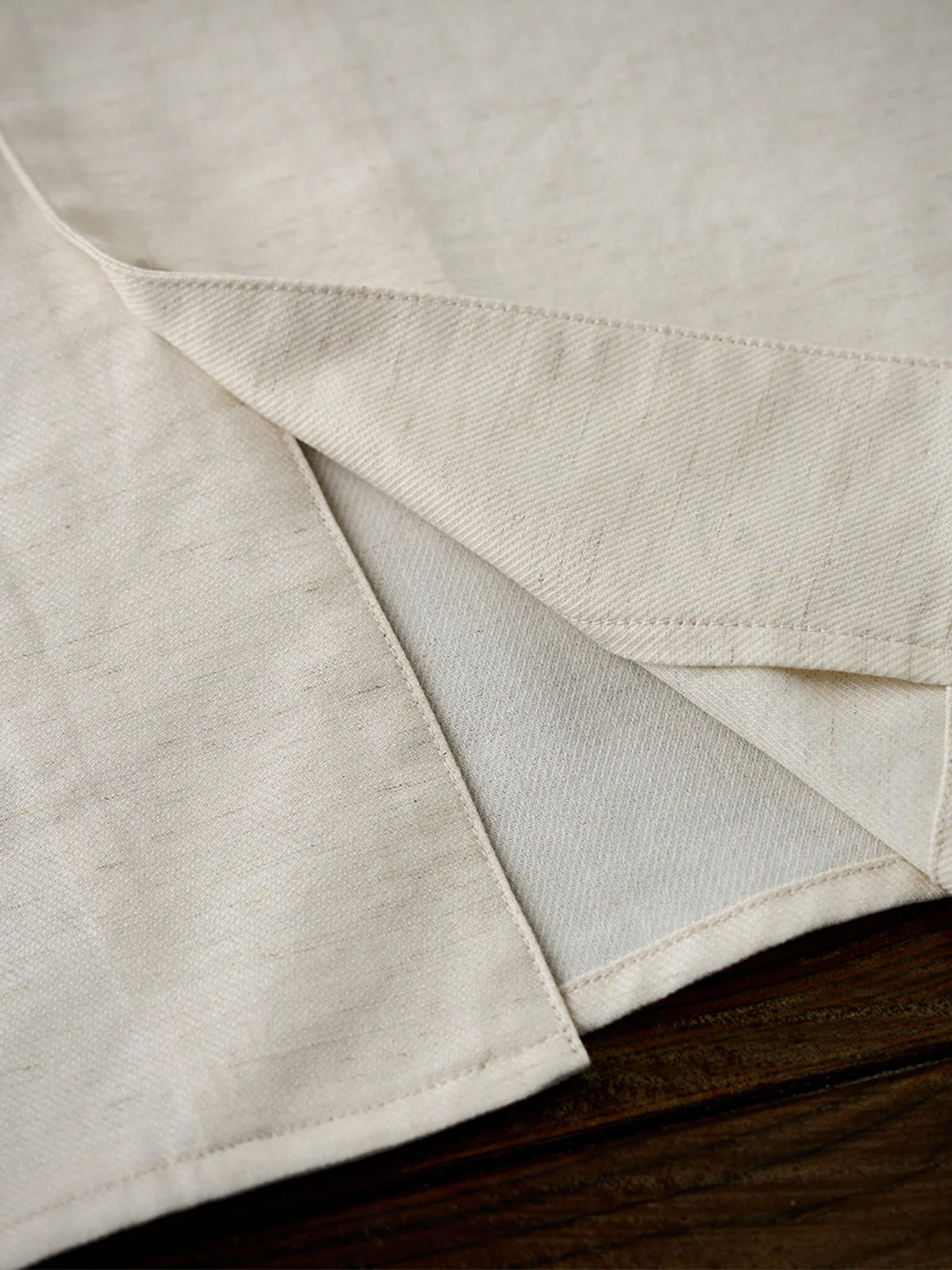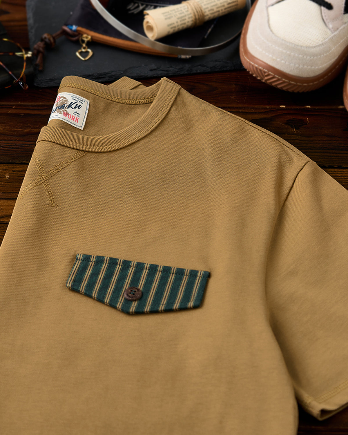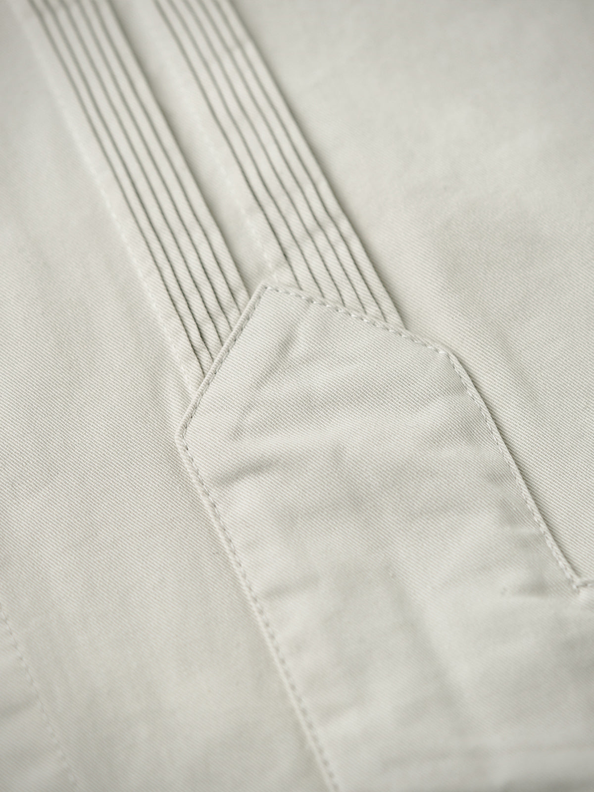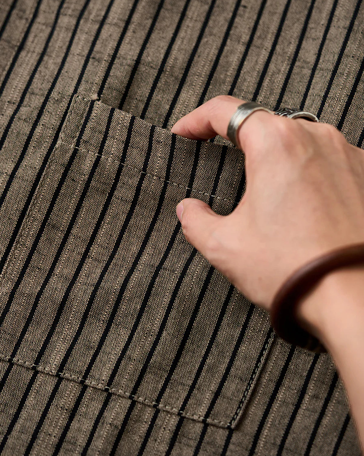 It has no collar, giving it a casual look. The large pockets and color-coordinated buttons are also nice touches.