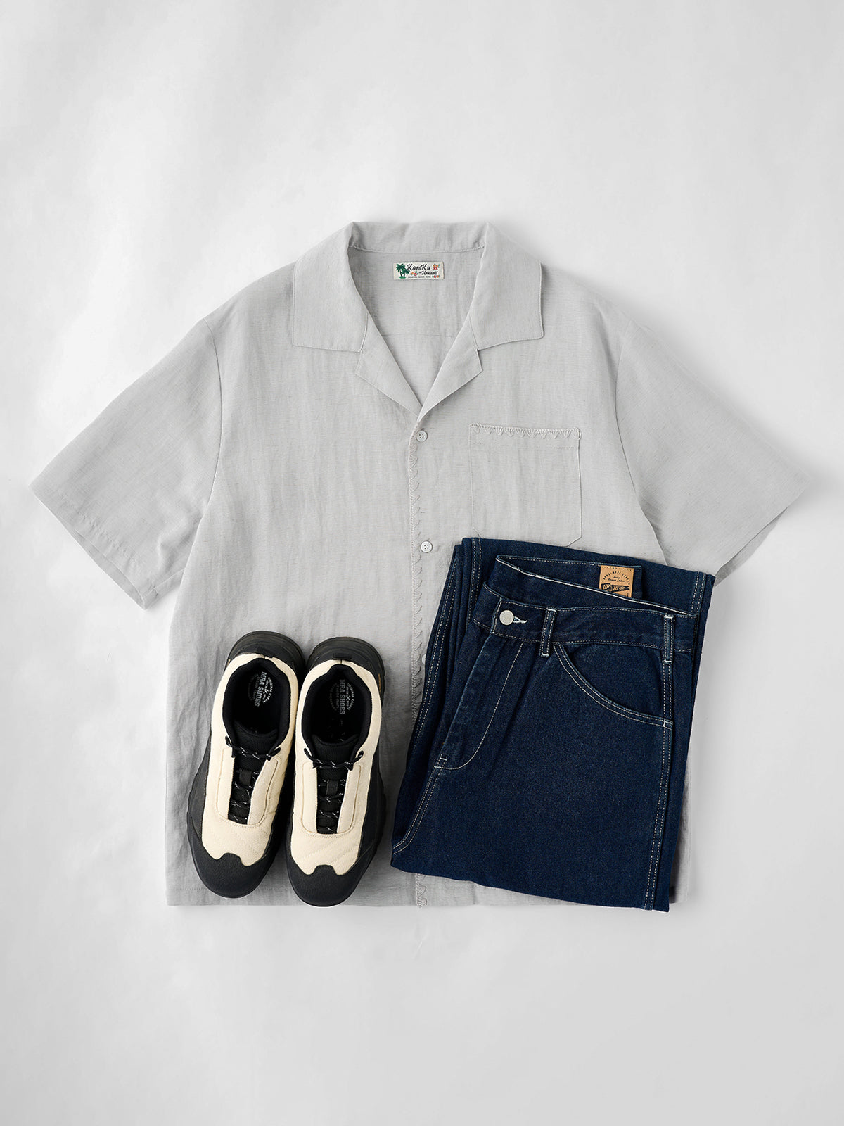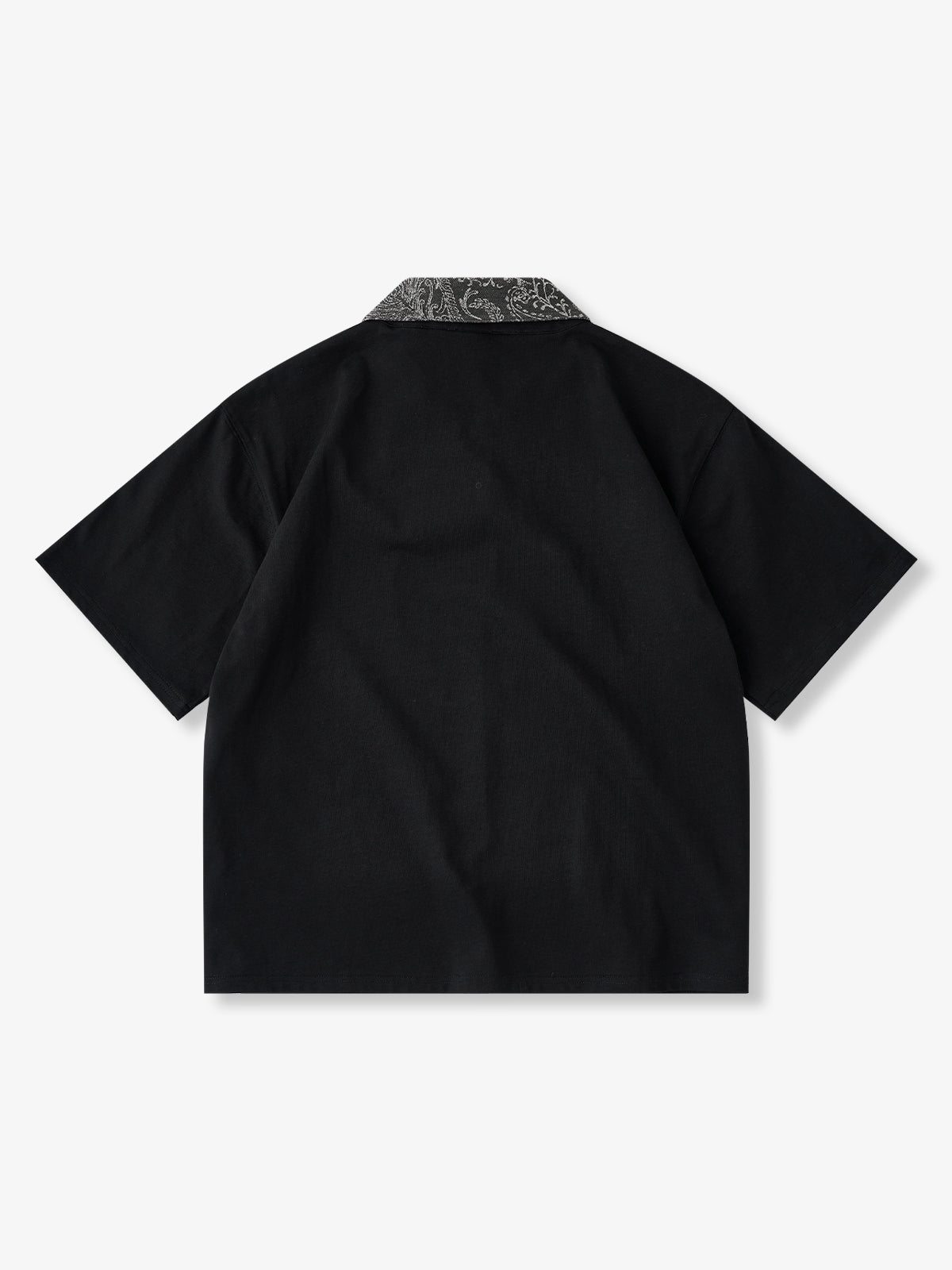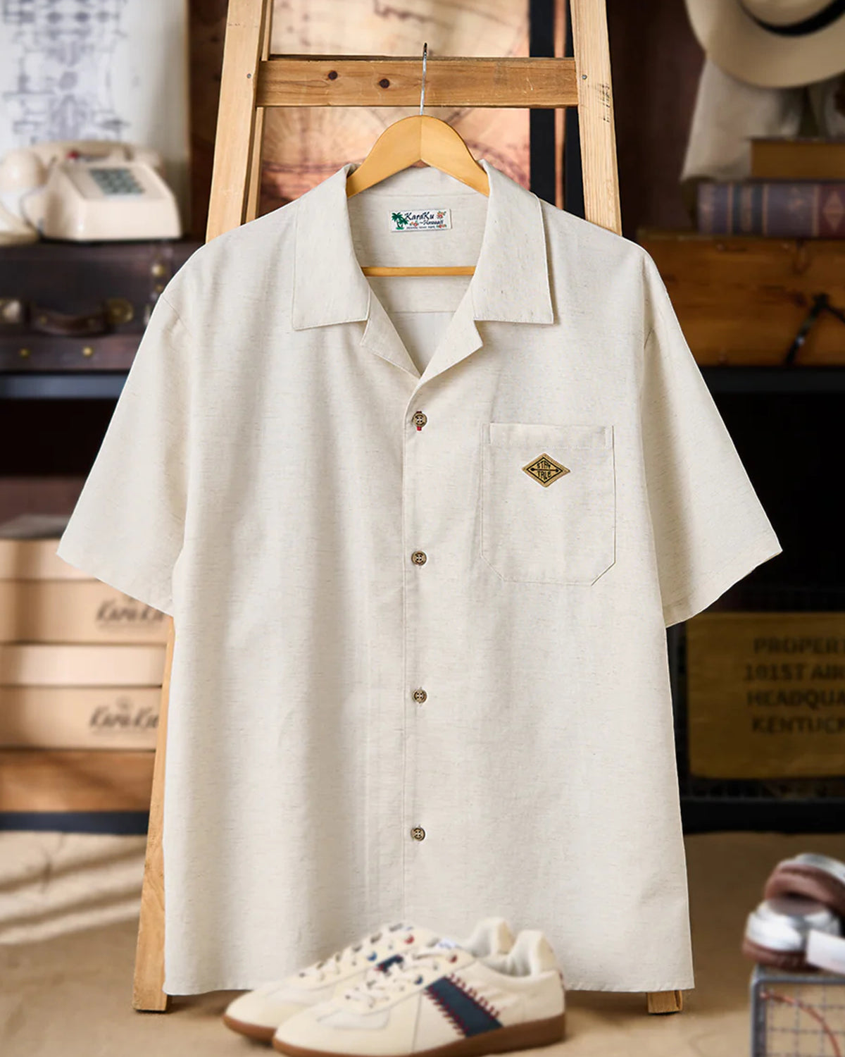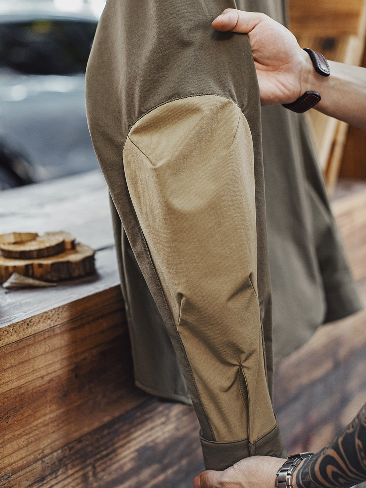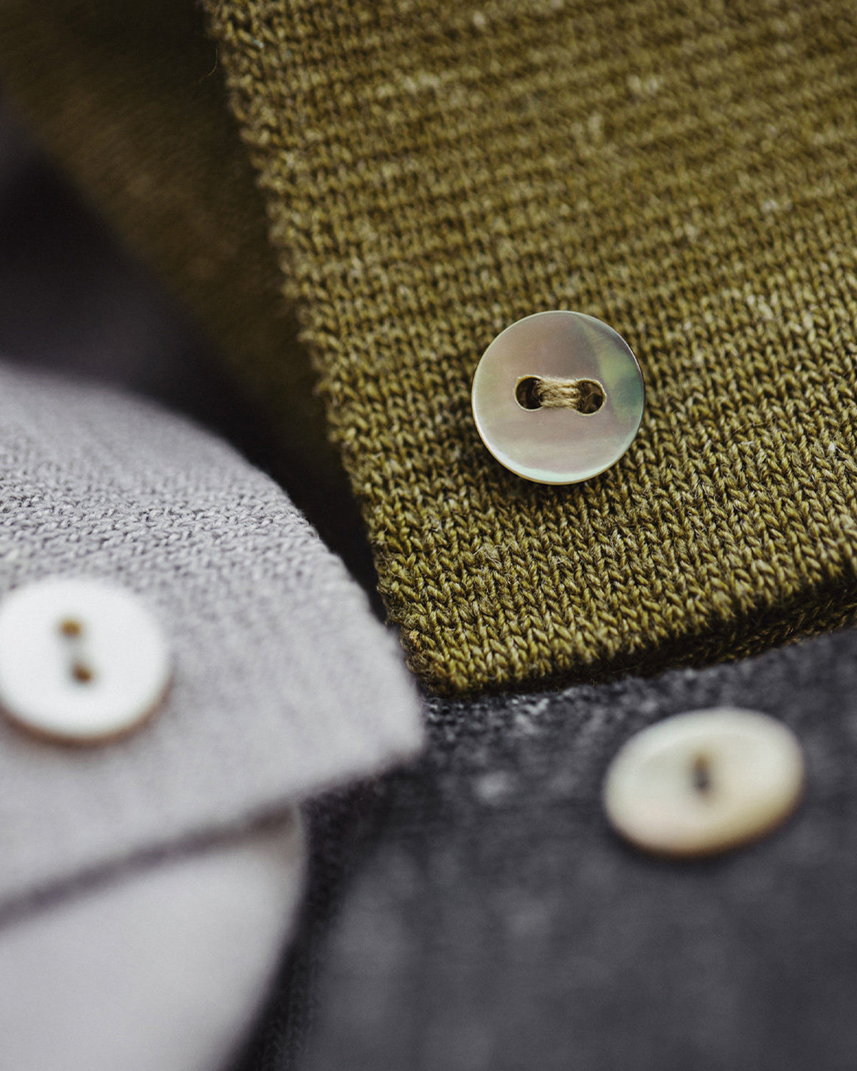 It has no collar, giving it a casual look. The large pockets and color-coordinated buttons are also nice touches.