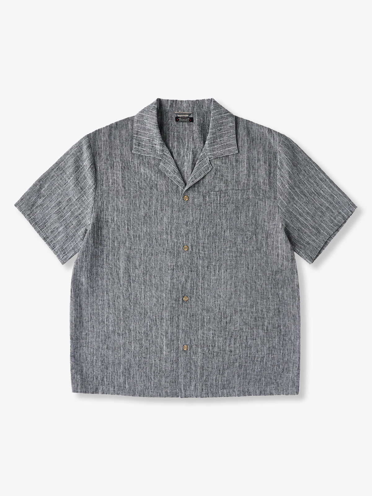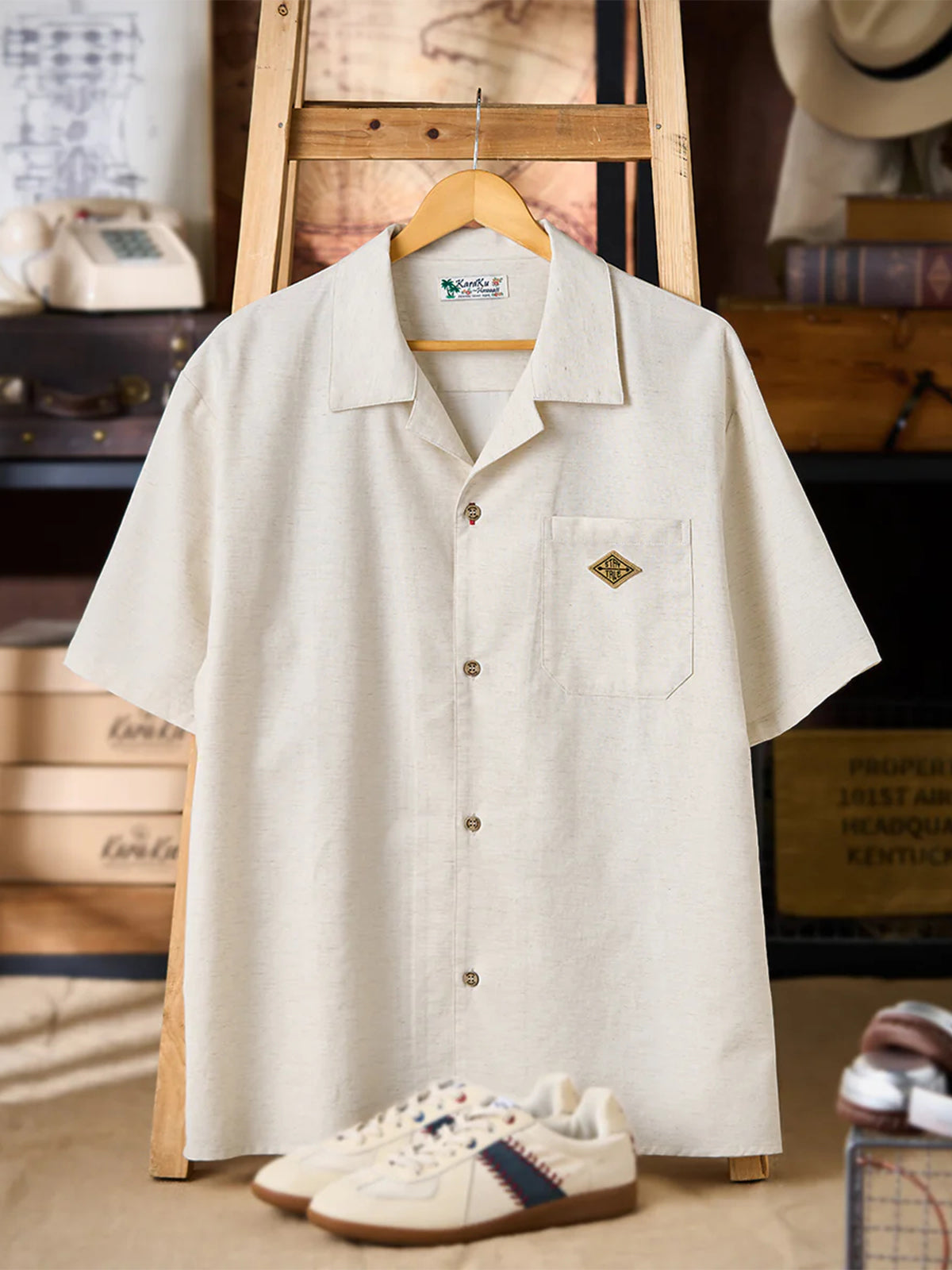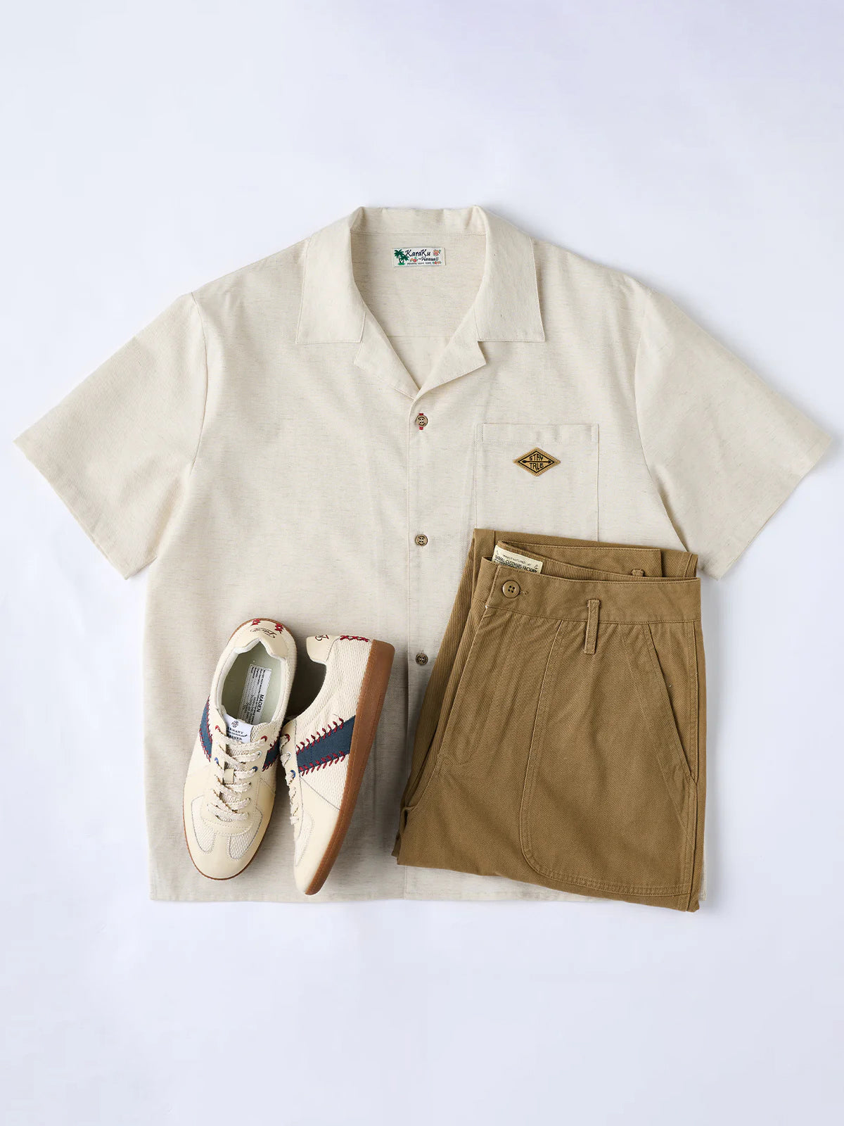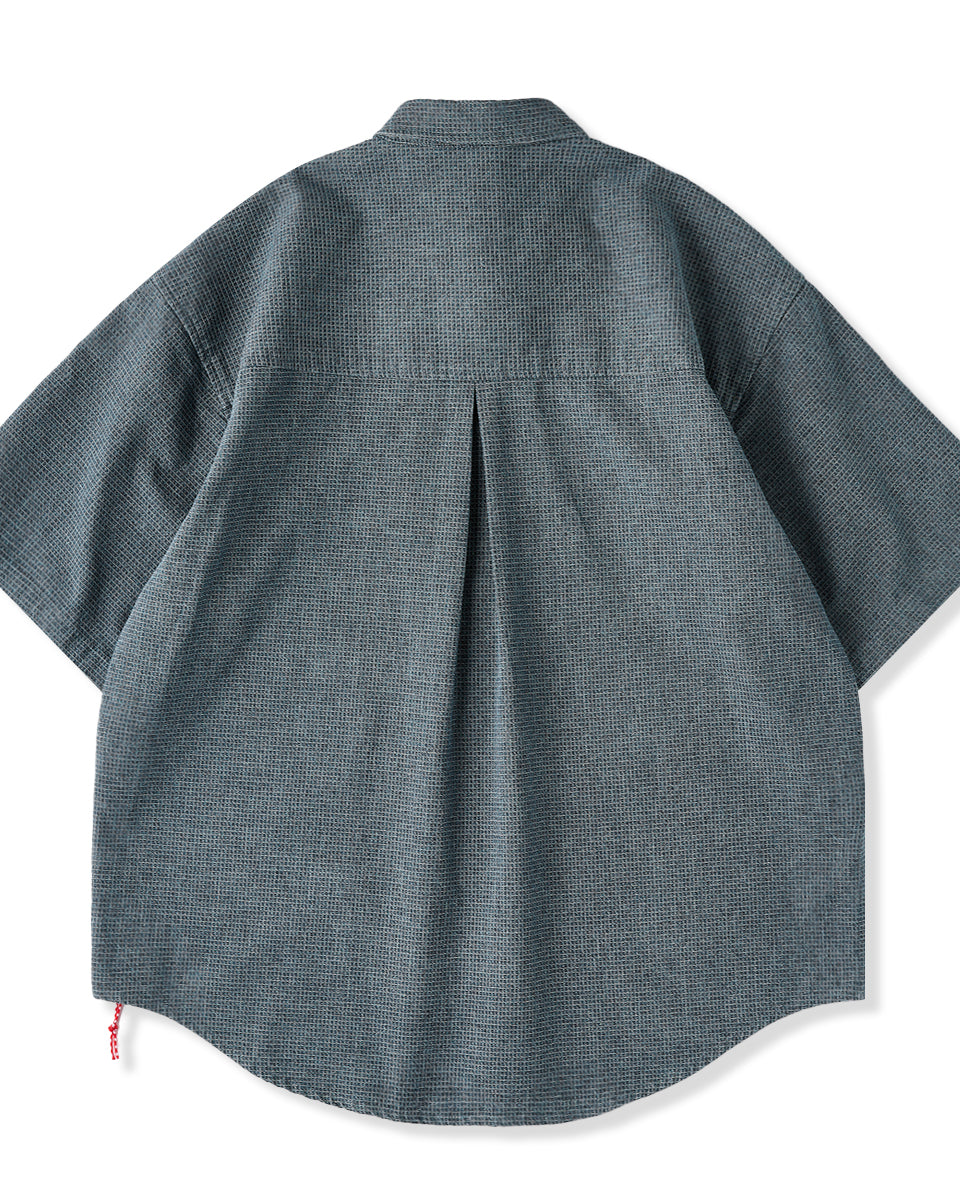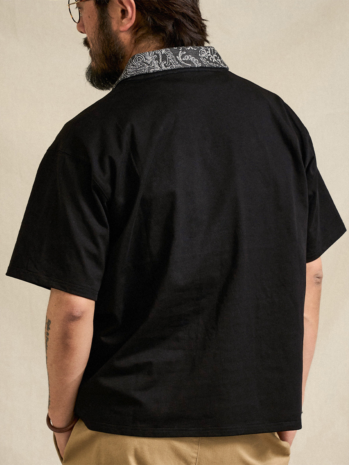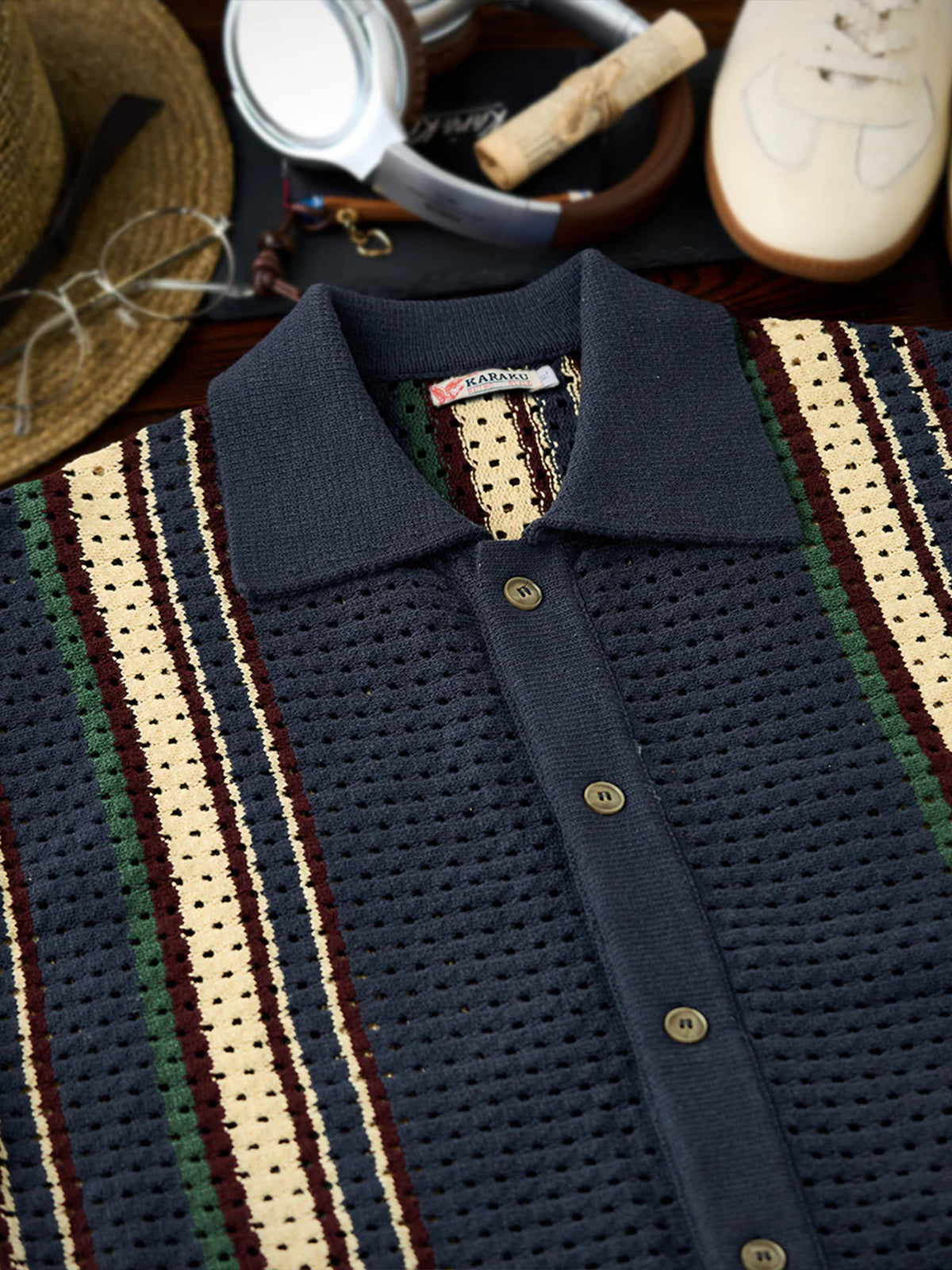 It has no collar, giving it a casual look. The large pockets and color-coordinated buttons are also nice touches.