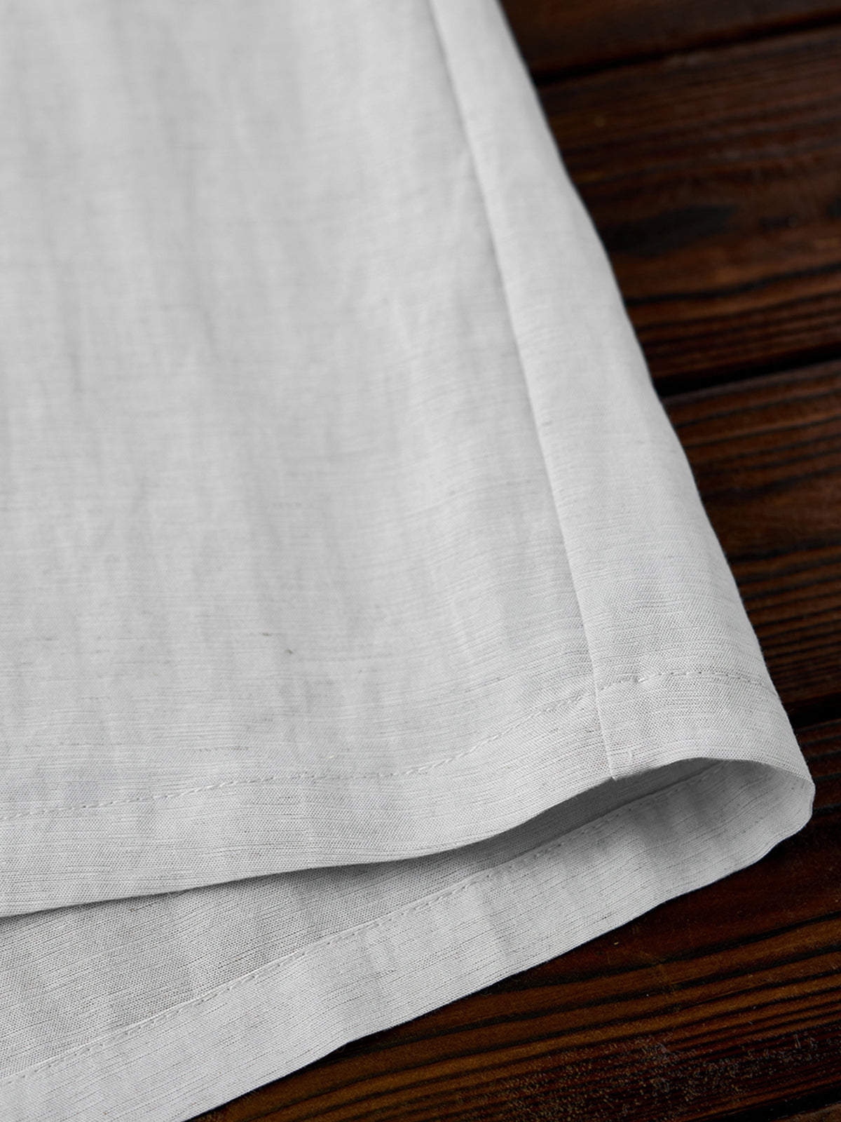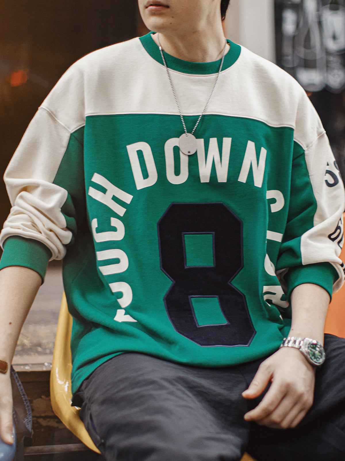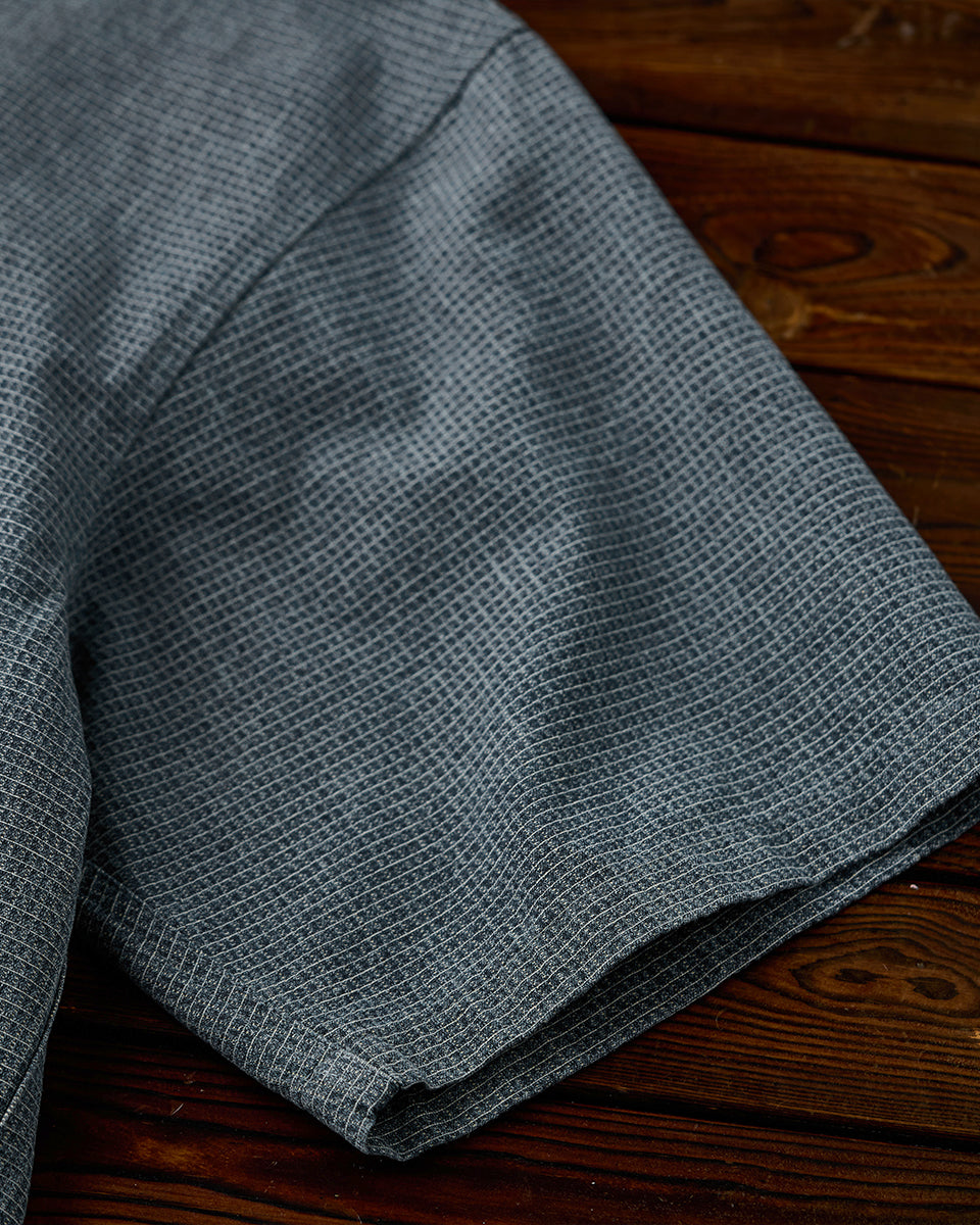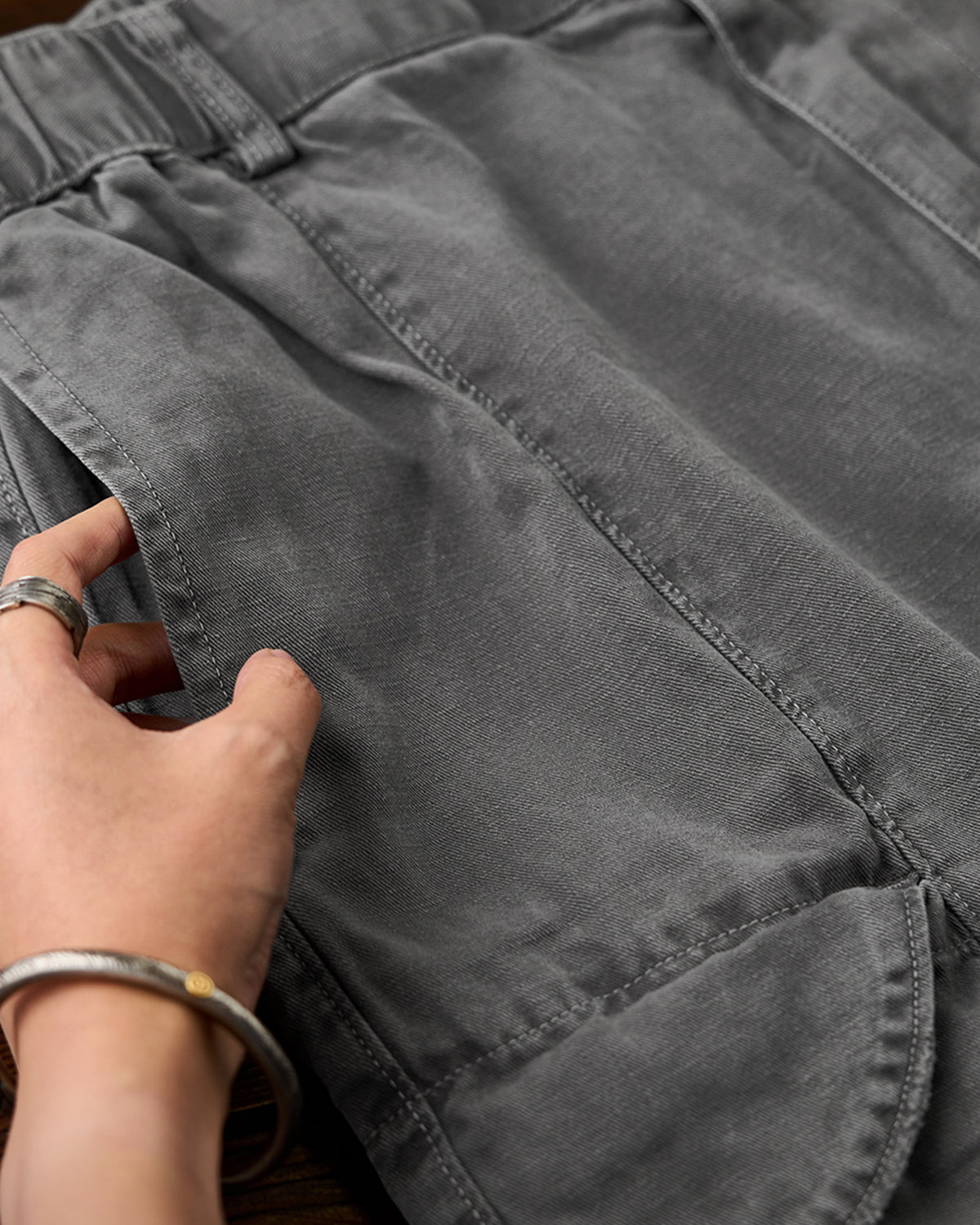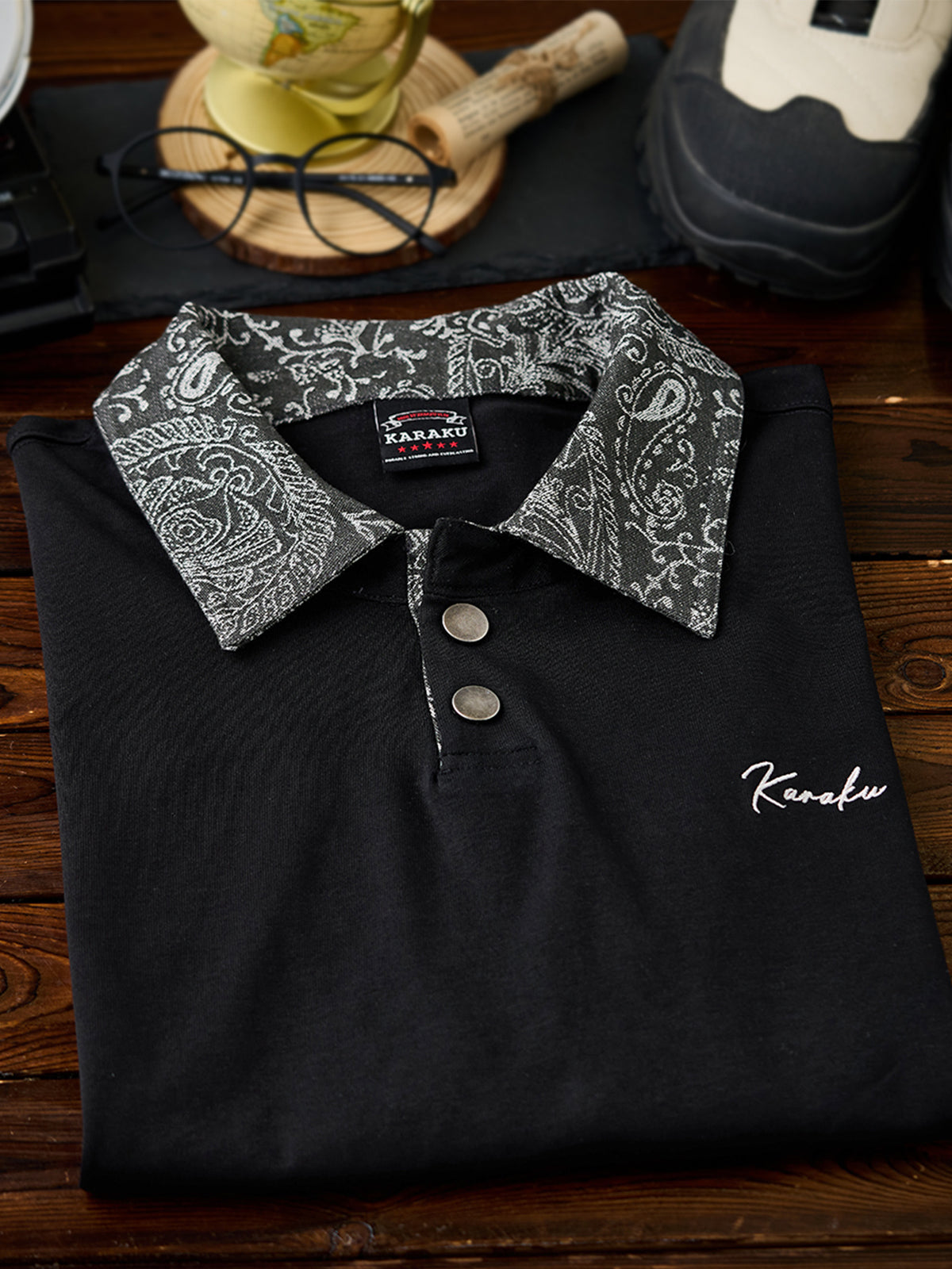 It has no collar, giving it a casual look. The large pockets and color-coordinated buttons are also nice touches.