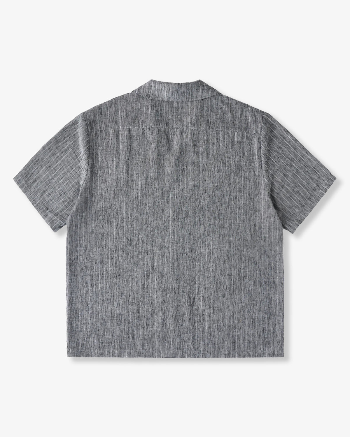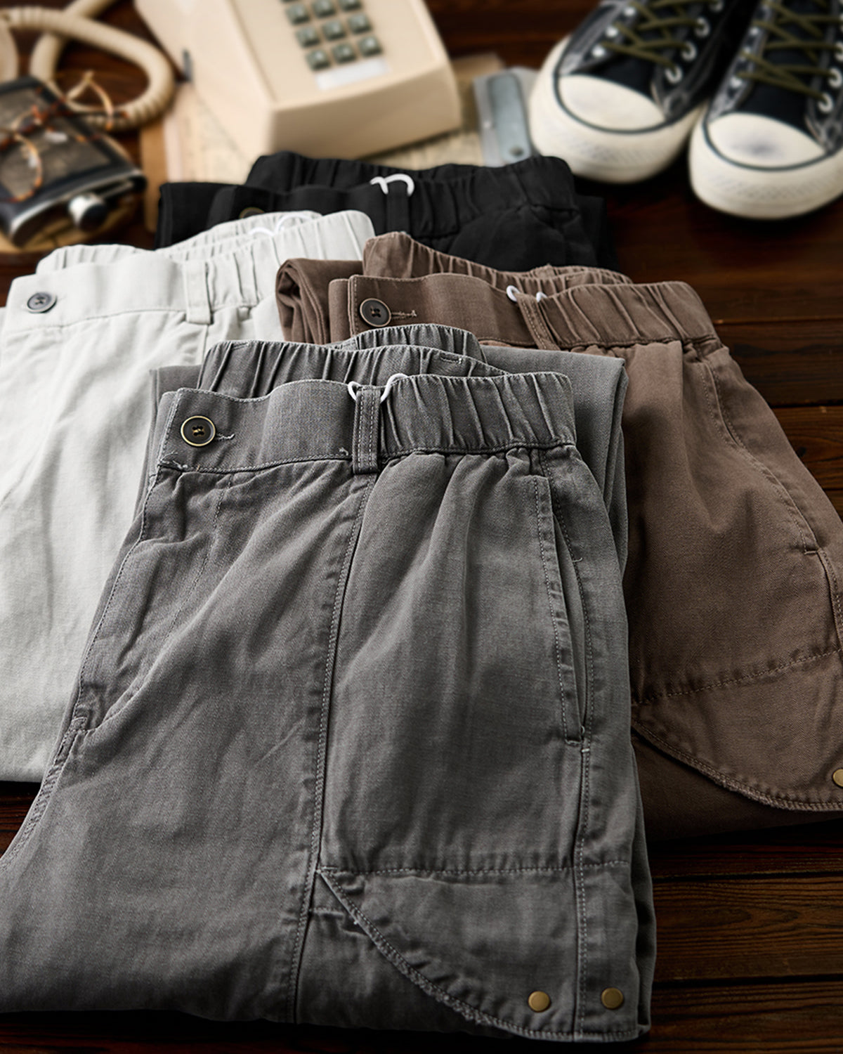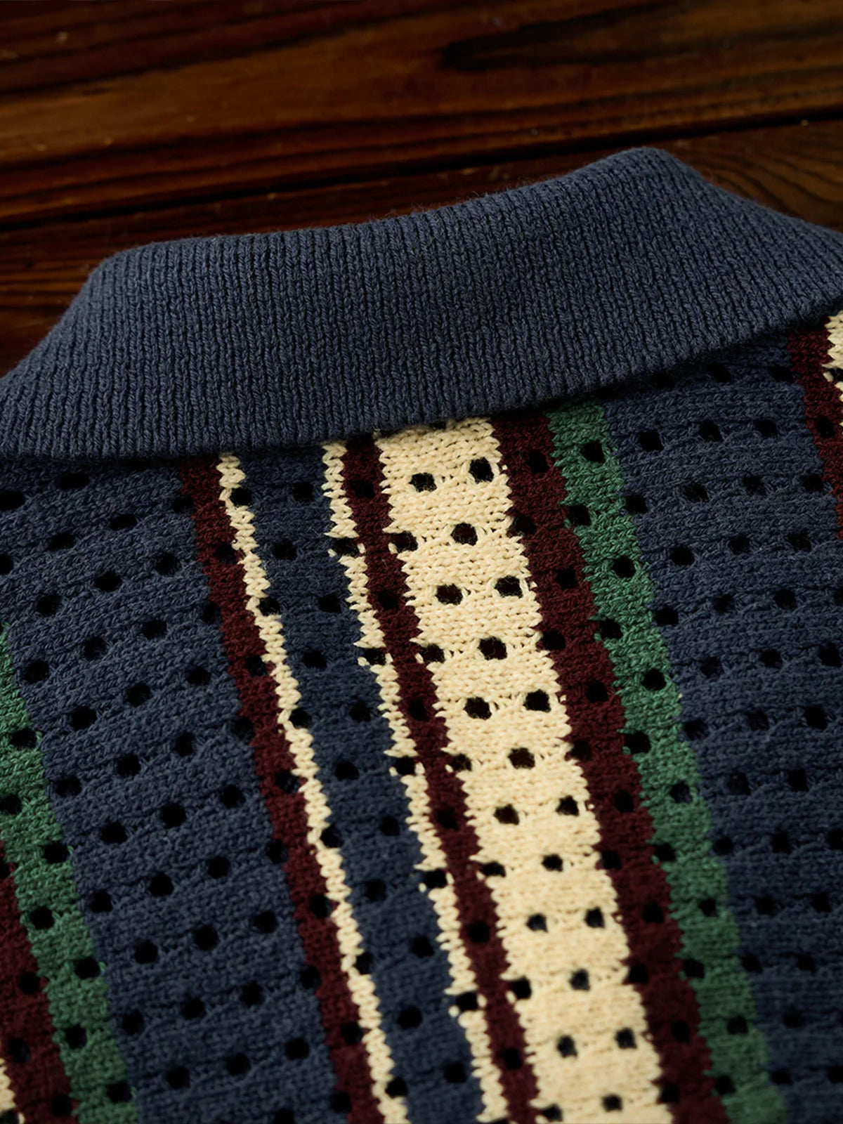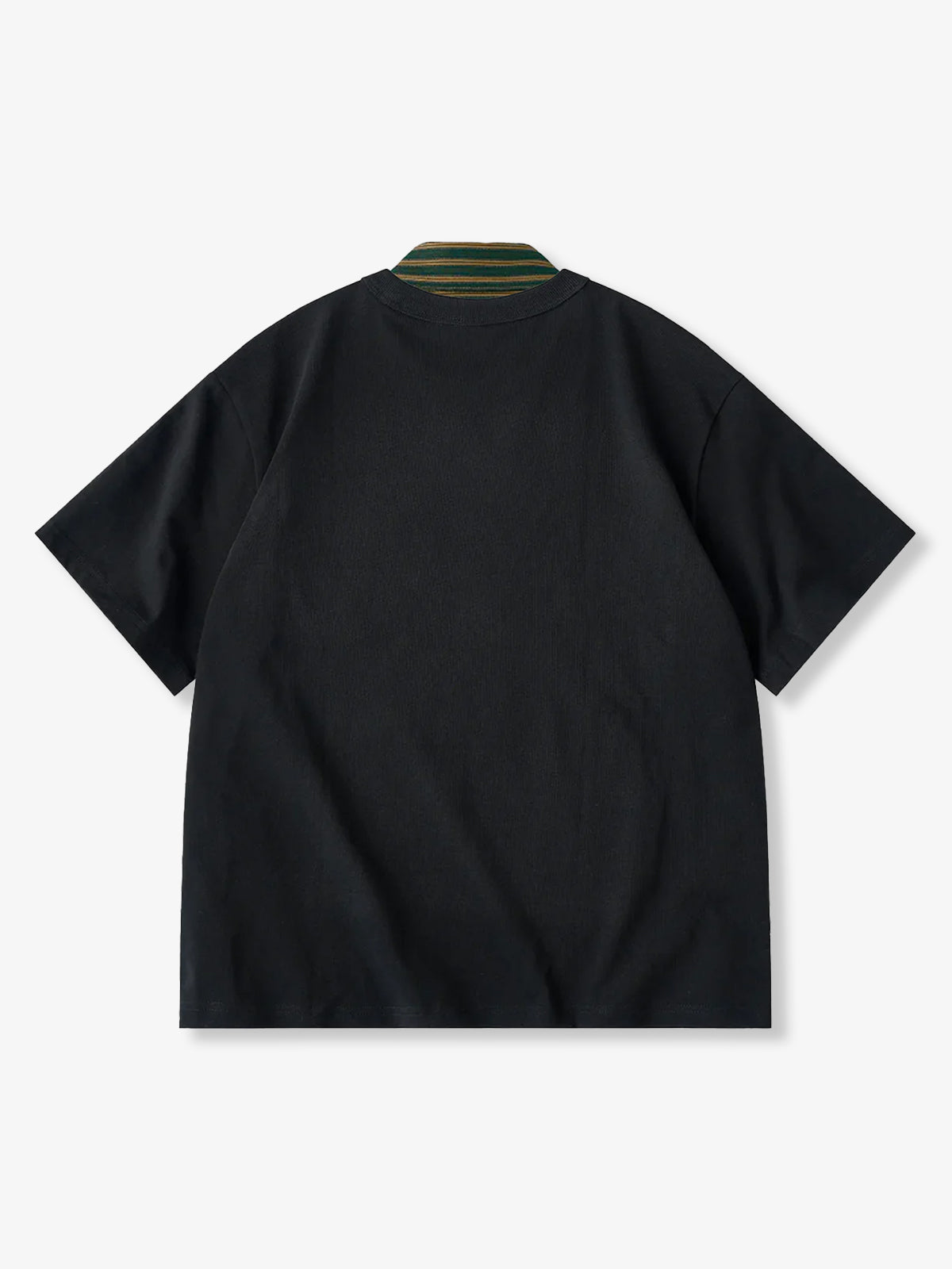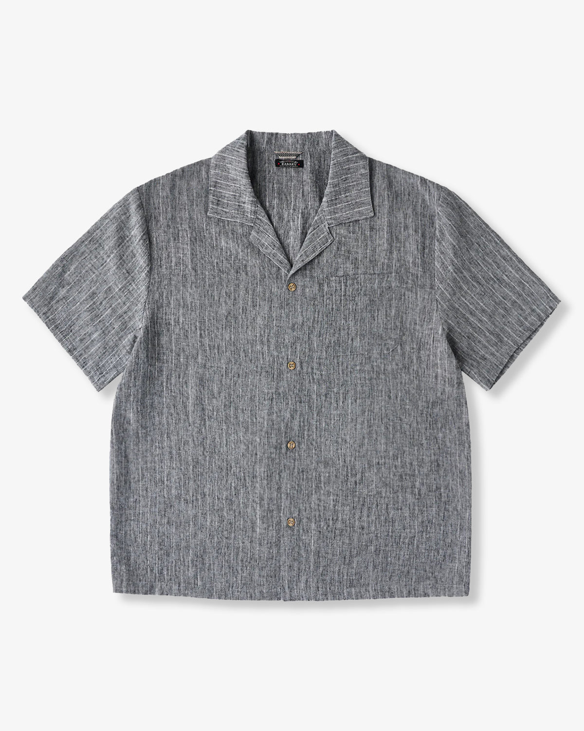 It has no collar, giving it a casual look. The large pockets and color-coordinated buttons are also nice touches.