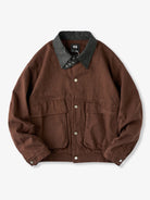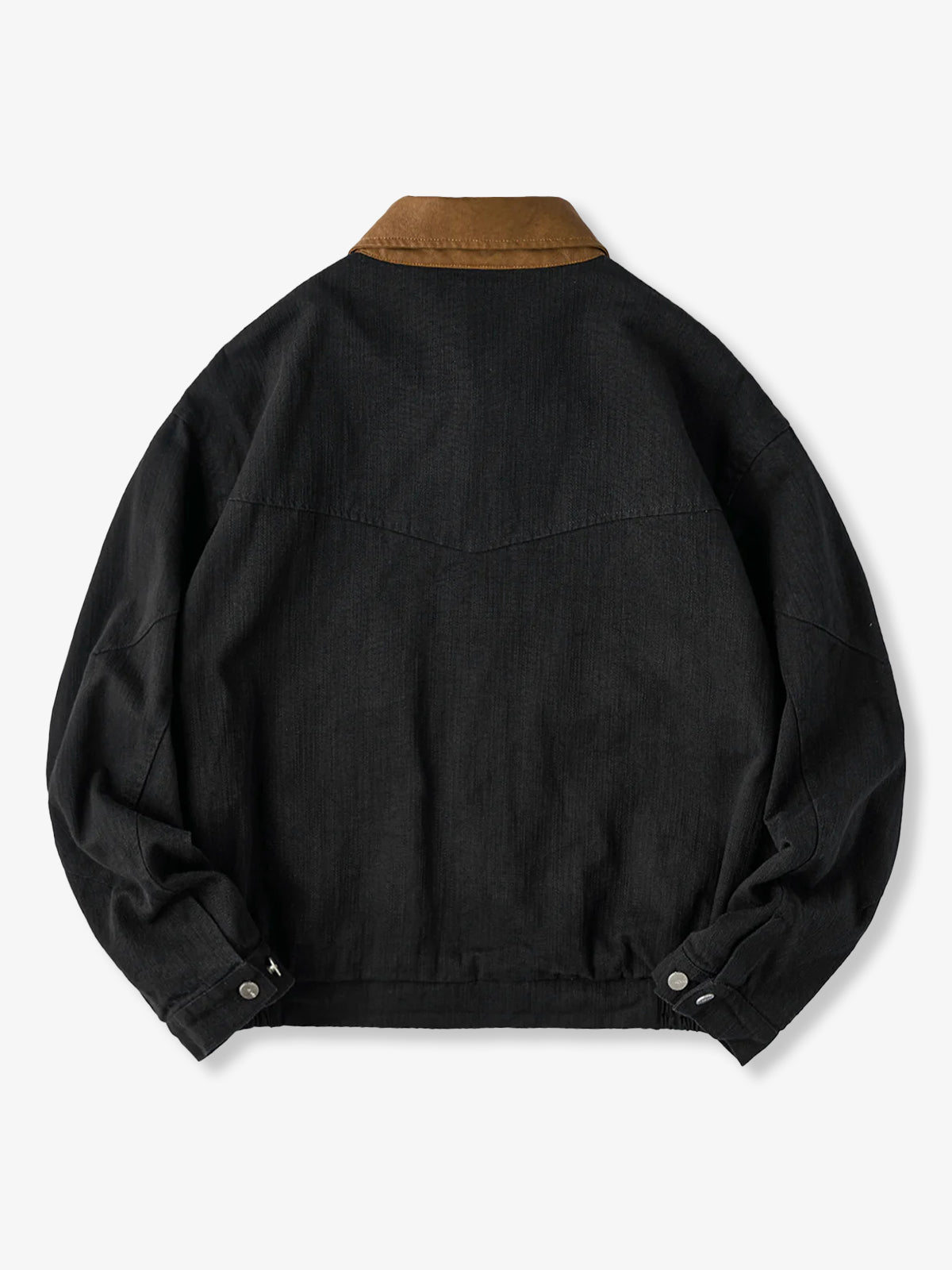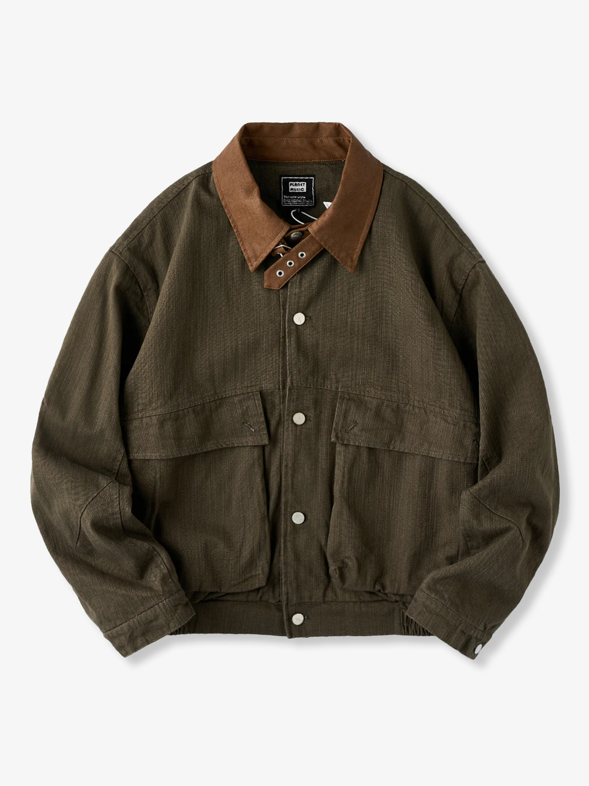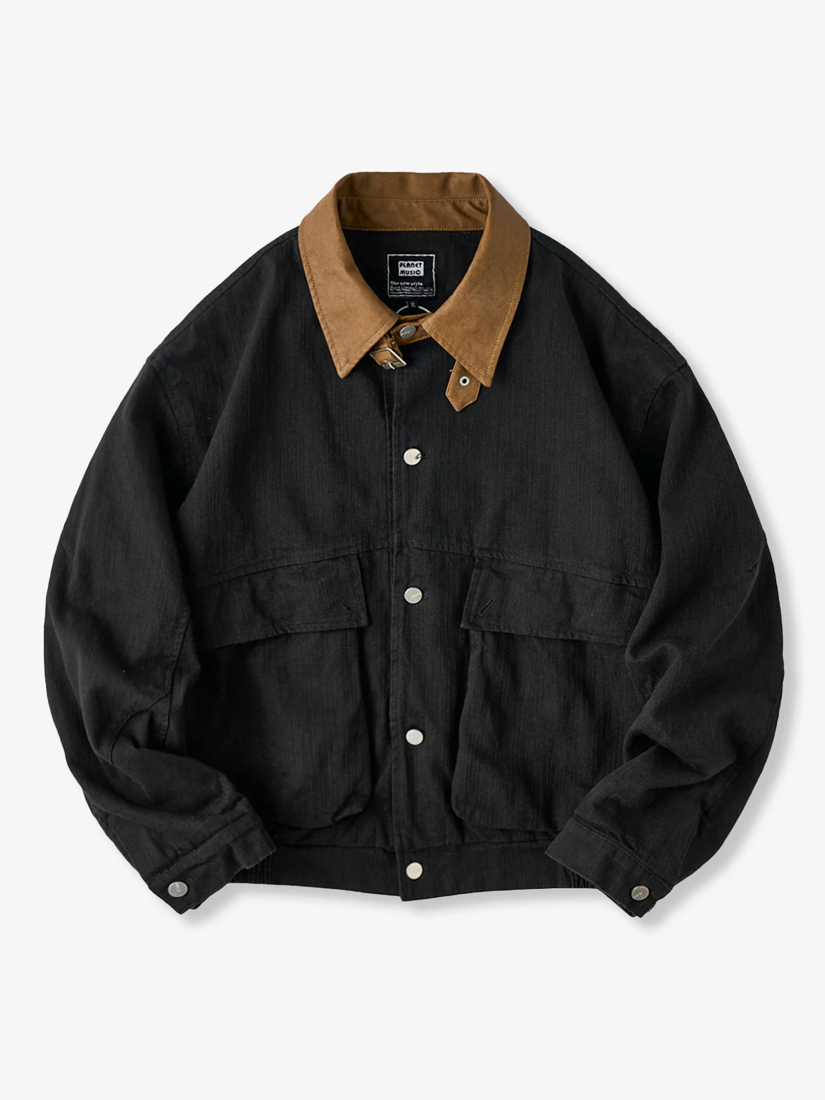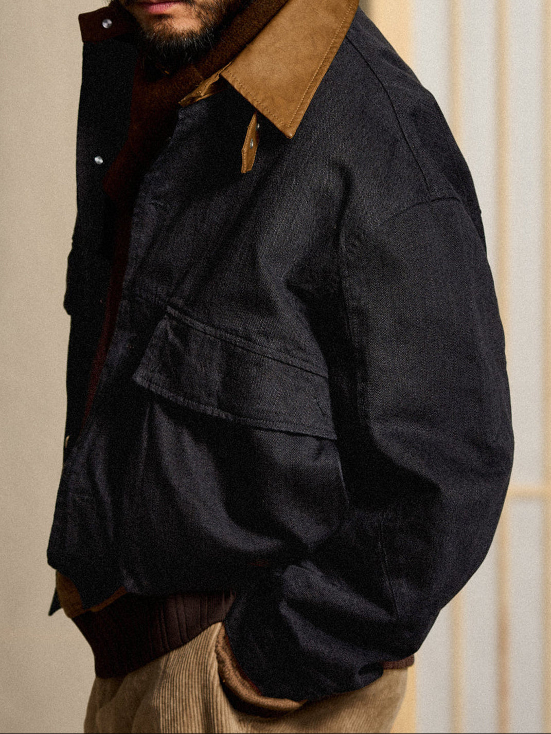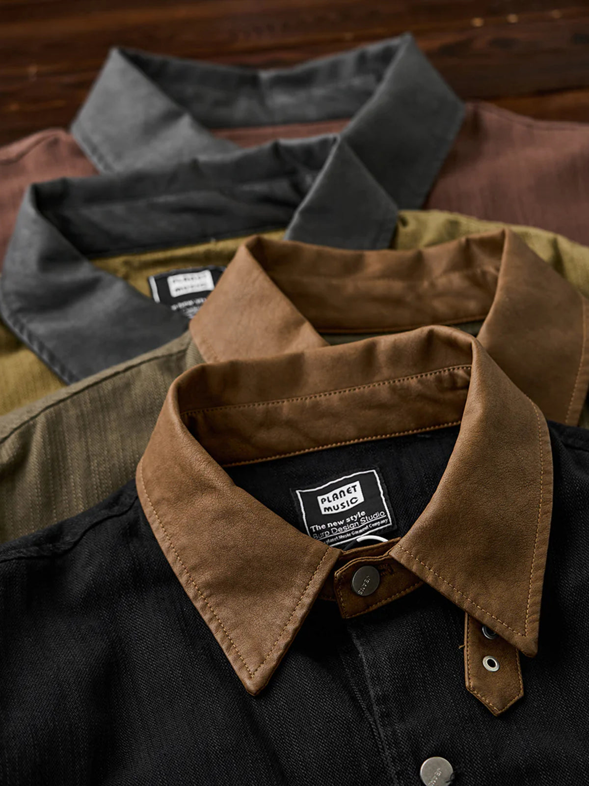 Mixed-Material Hunting Jacket with Leather-Effect Collar