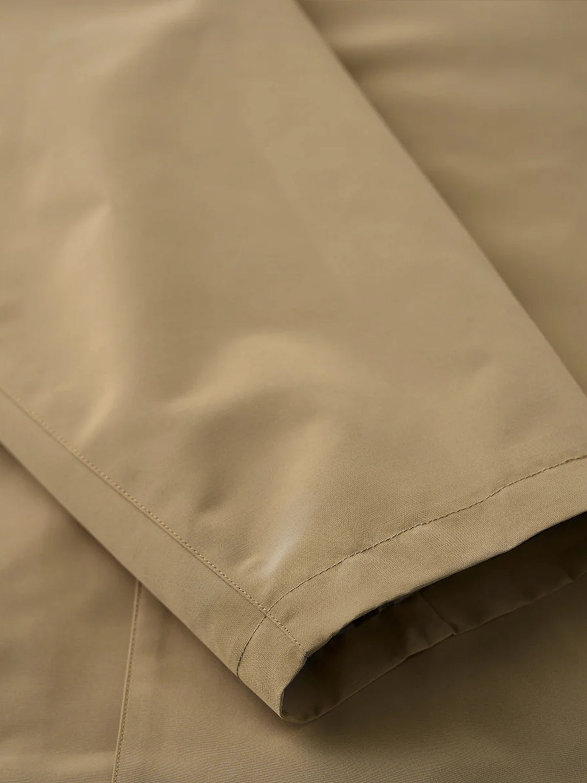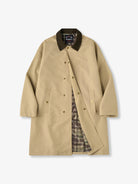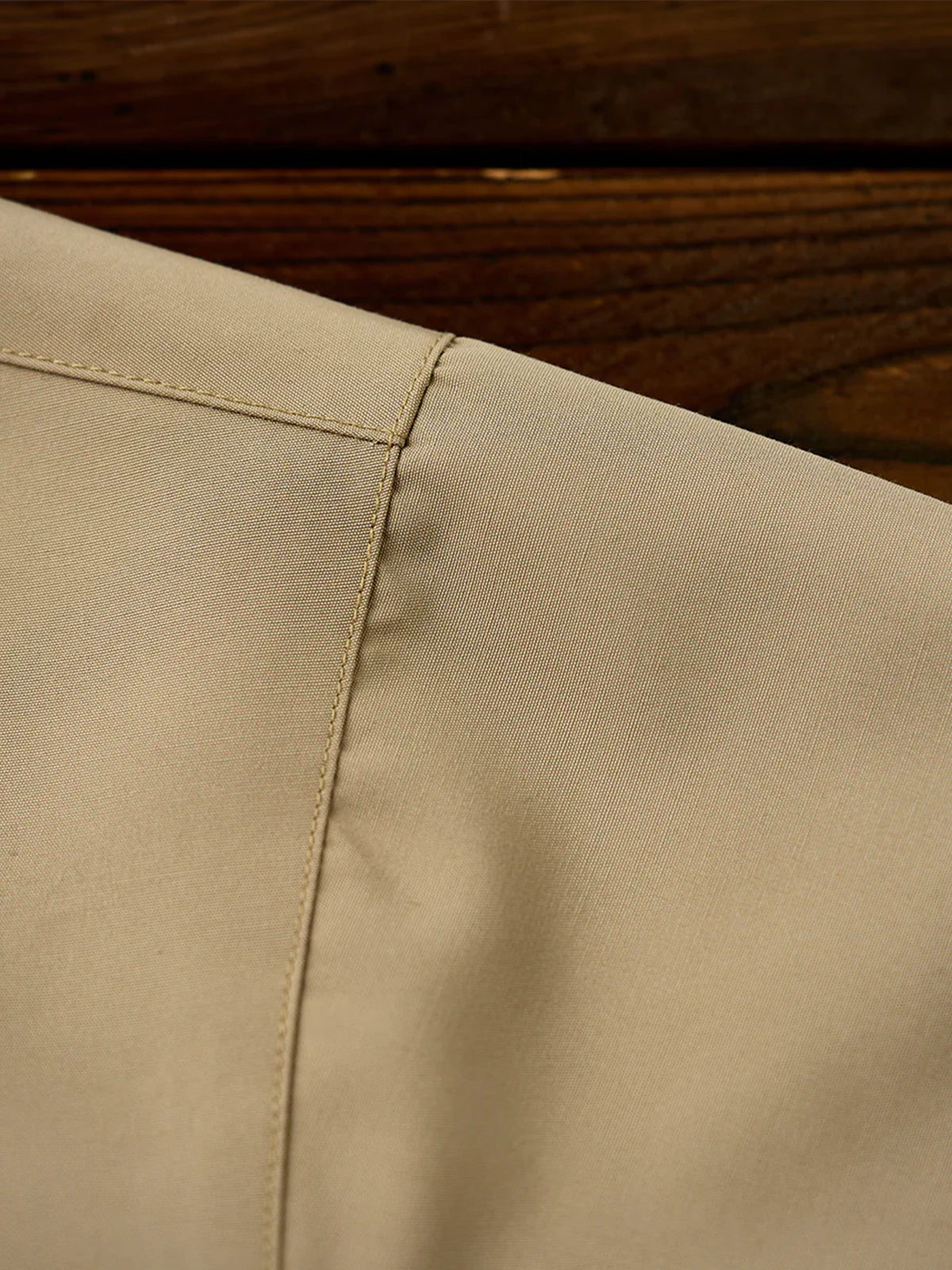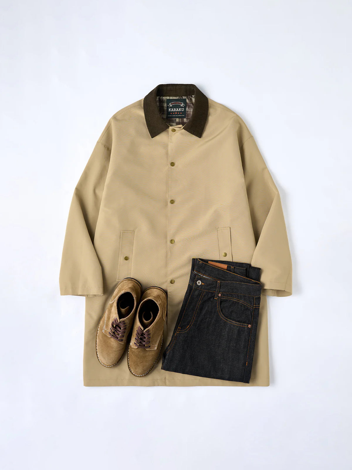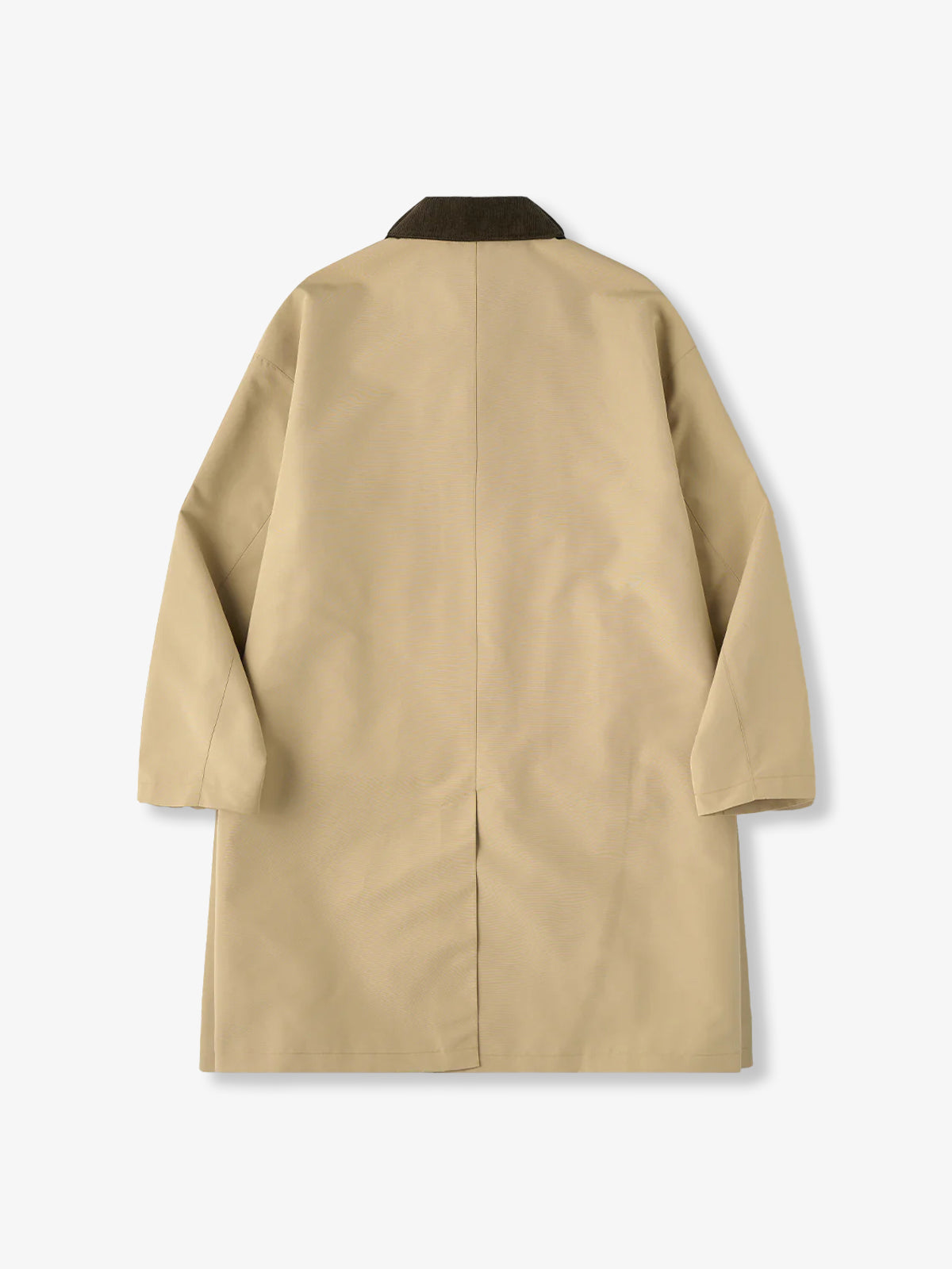 A classic silhouette fused with modern functionality — this all-weather Balmacaan coat is designed to withstand the elements while maintaining timeless appeal. The outer shell is made of high-density nylon that offers windproof, waterproof, and stain-resistant performance, providing reliable protection from rain, wind, and dirt. From daily wear to commuting and outdoor activities, it performs seamlessly across occasions. The collar is finished in textured corduroy, adding a refined touch and seasonal charm to its simple design. With a relaxed silhouette, it layers comfortably over thick knits or jackets, offering both ease of movement and comfort. Blending practicality and style, this coat transitions effortlessly from traditional to casual looks.