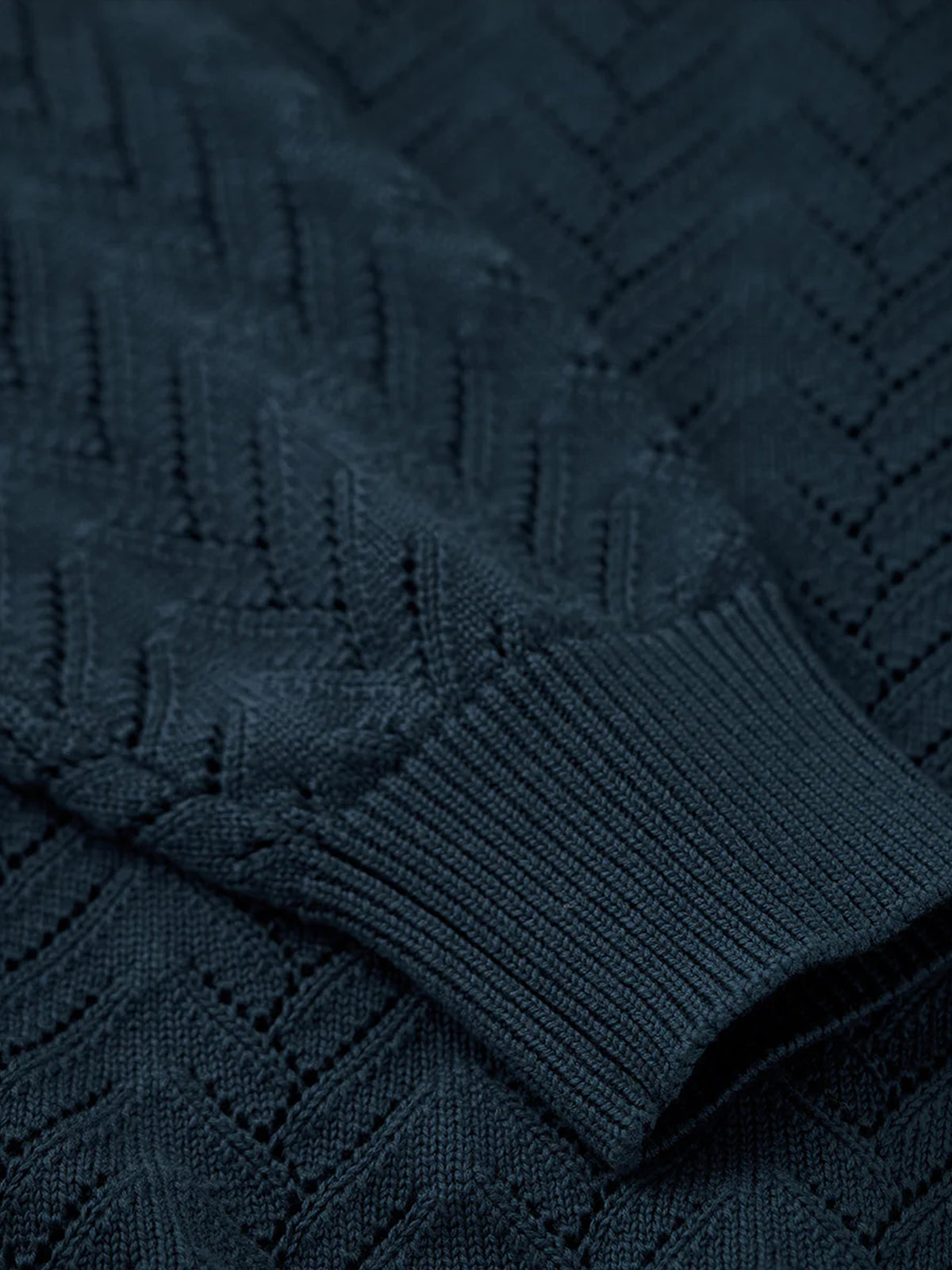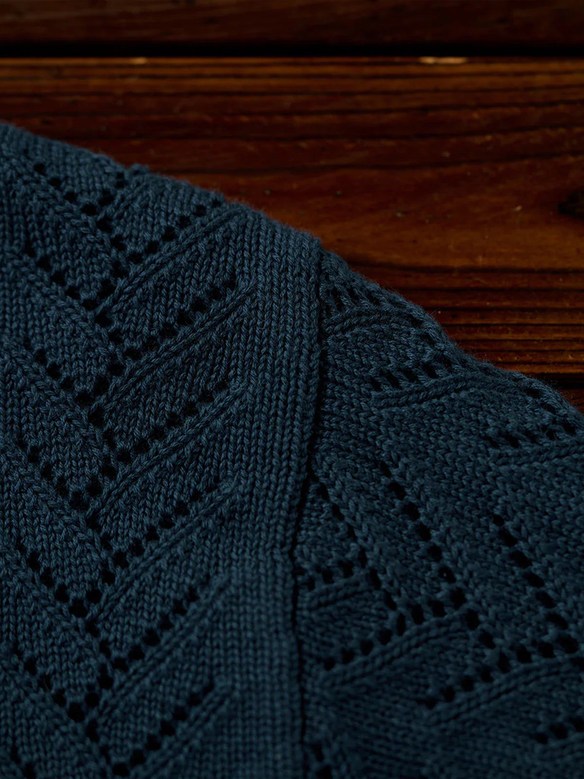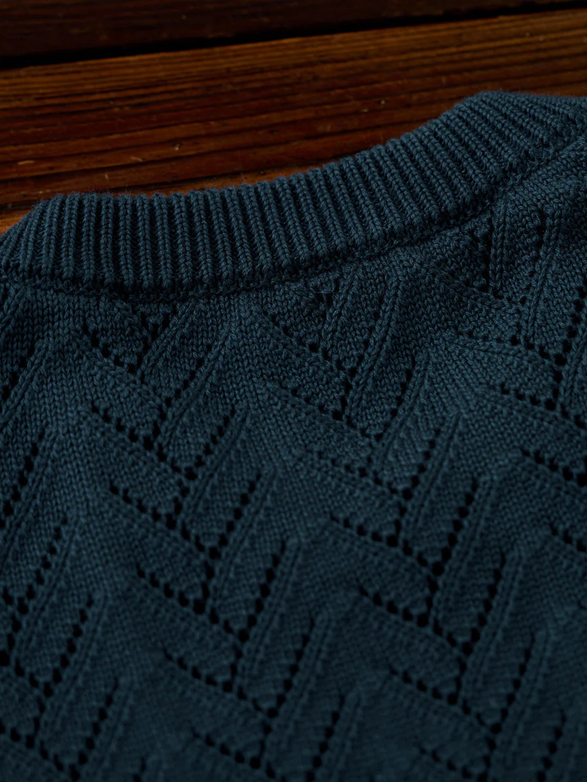 This relaxed-fit sweater features delicate openwork knitting that creates an airy, layered look. The intricate lace pattern adds a lightweight texture, achieving a simple yet refined and sophisticated aesthetic. The roomy drop-shoulder silhouette offers a comfortably relaxed fit. Crafted from soft, high-quality yarn with optimal thickness, it provides comfortable wear during seasonal transitions. Perfect for layering over shirts or long-sleeve tees.