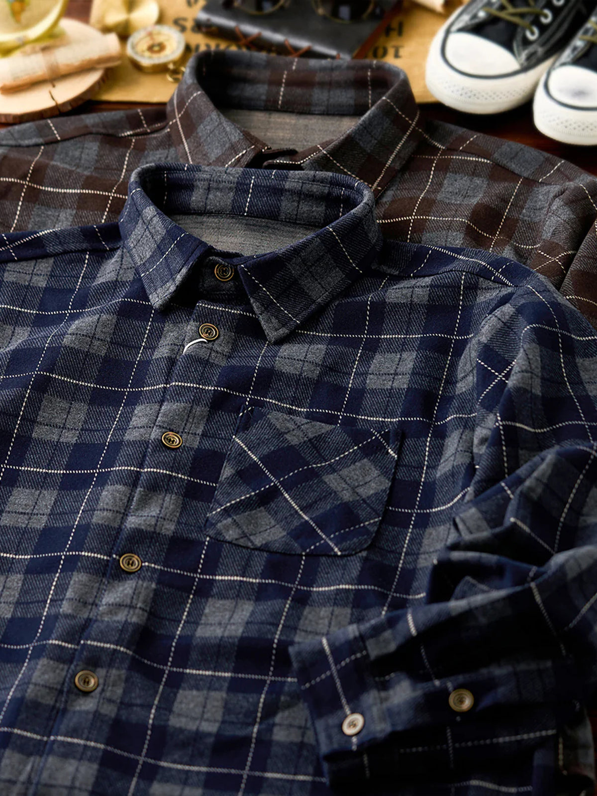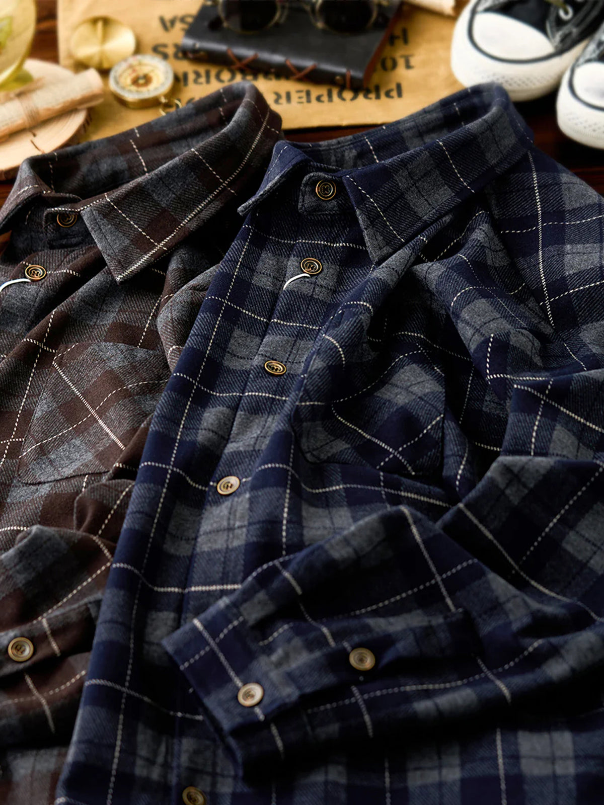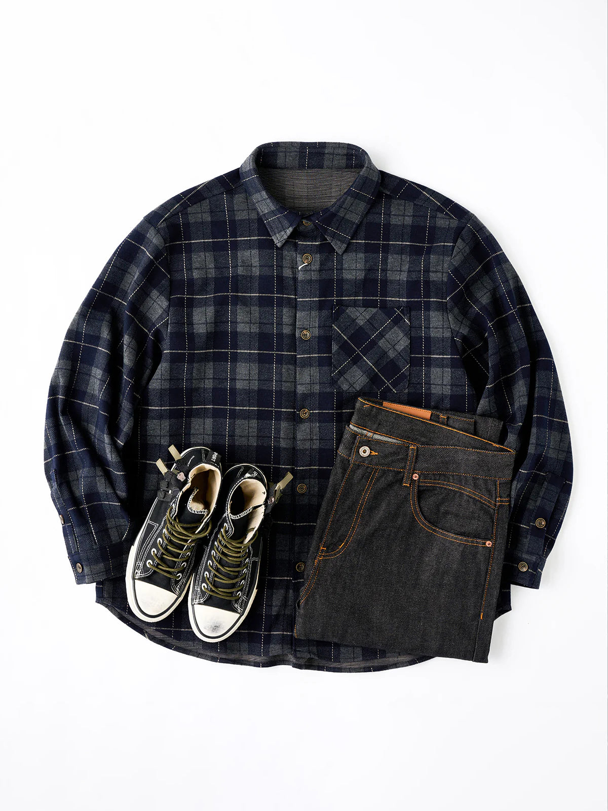 Lightly Brushed Custom-Made Button-Down Check Shirt