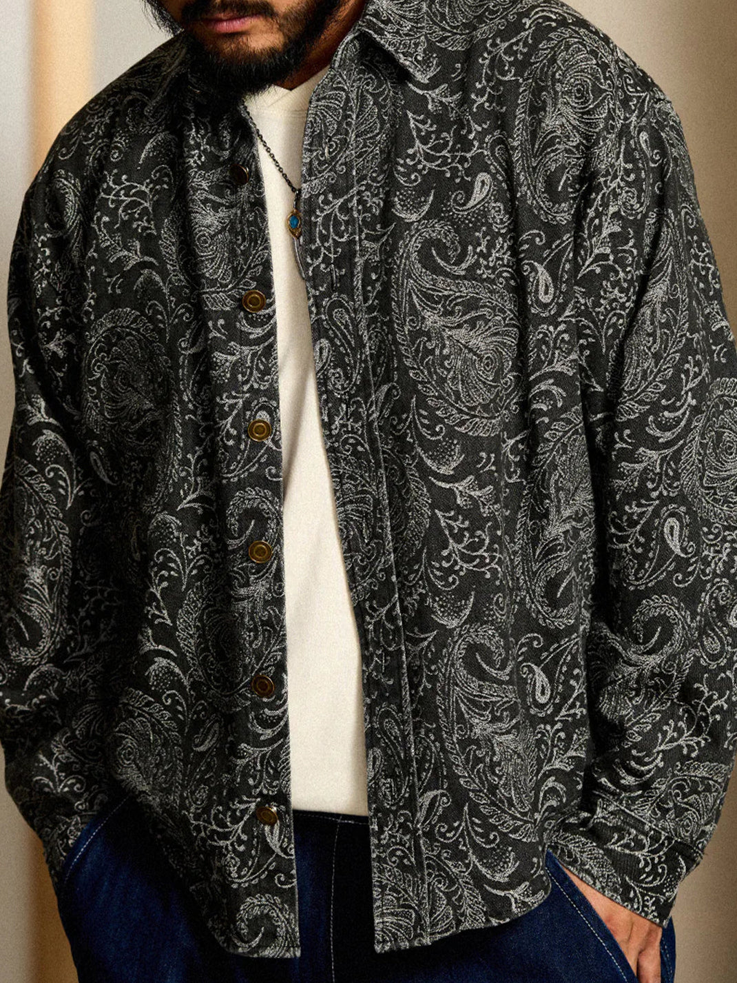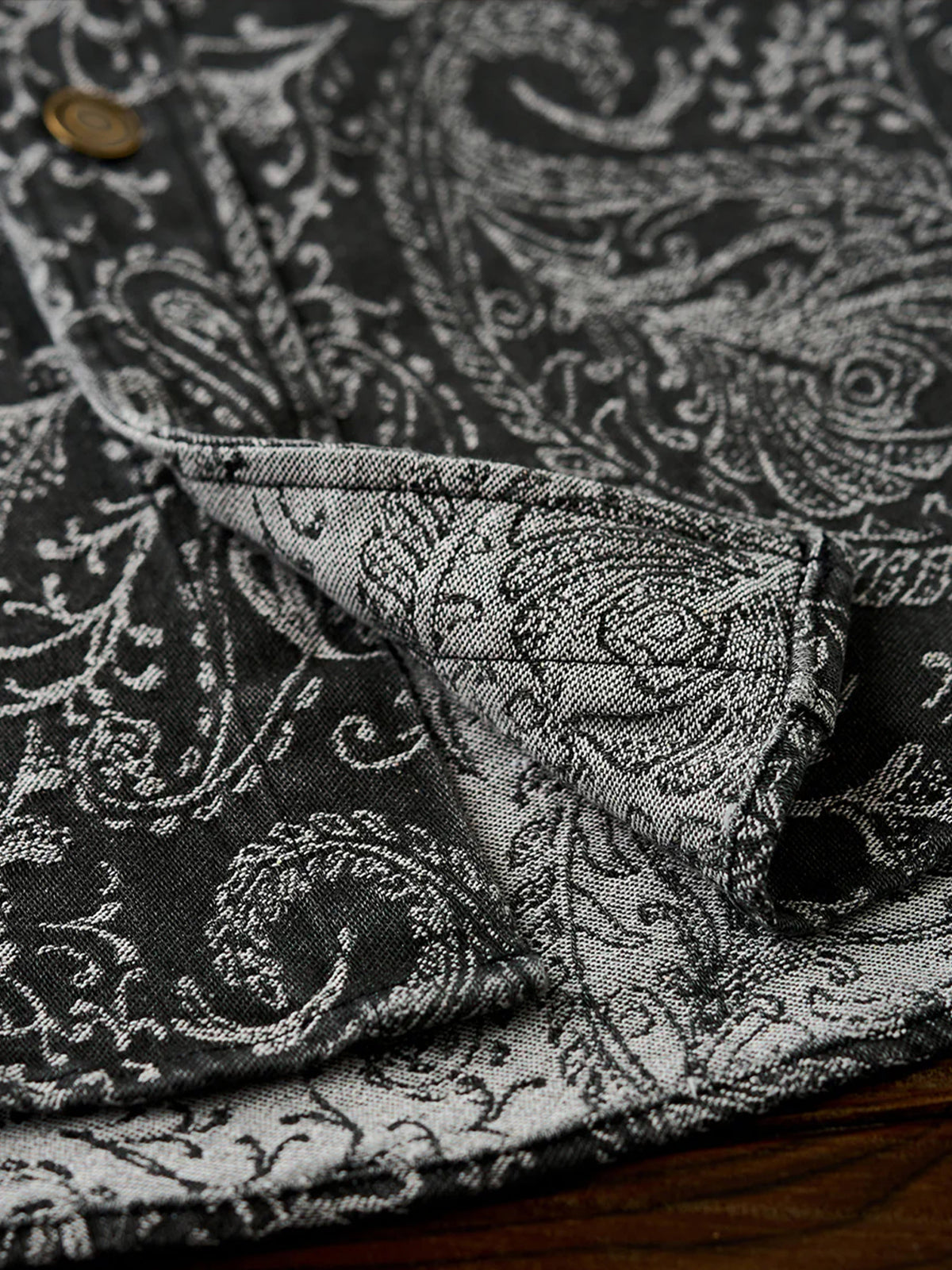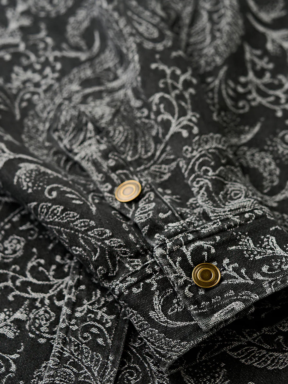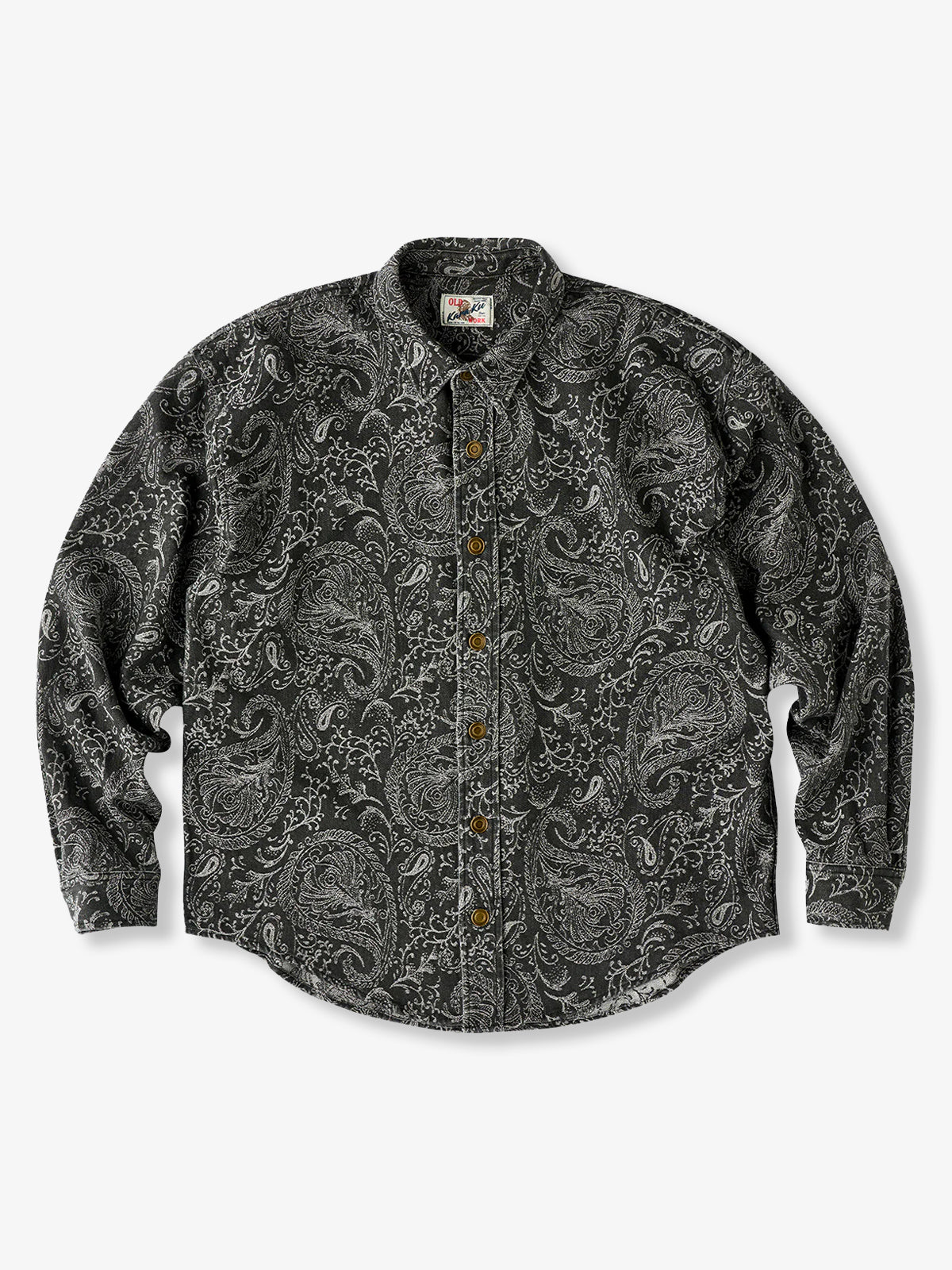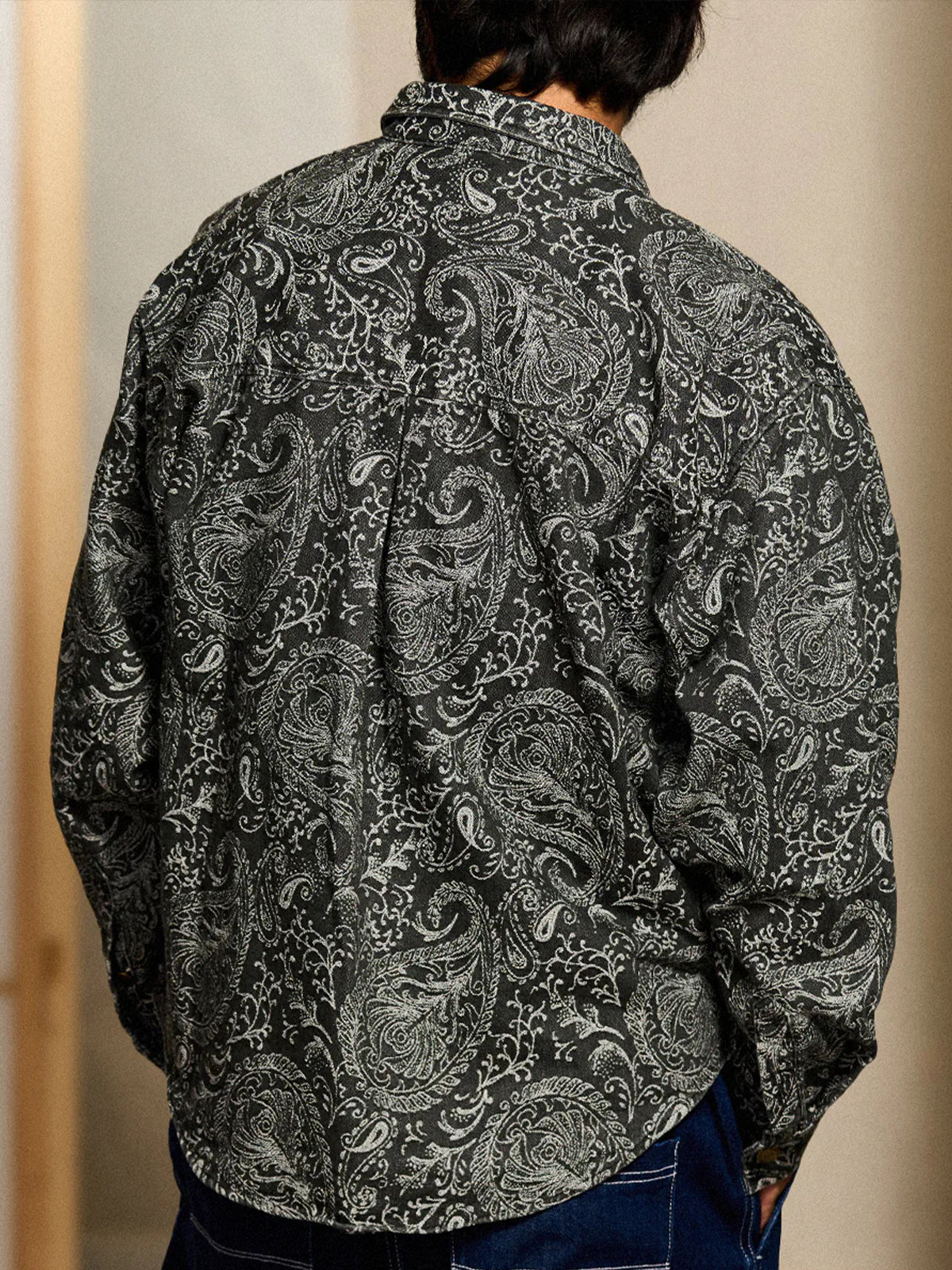 Jacquard Paisley All-Over Wash Denim Long Sleeve Shirt