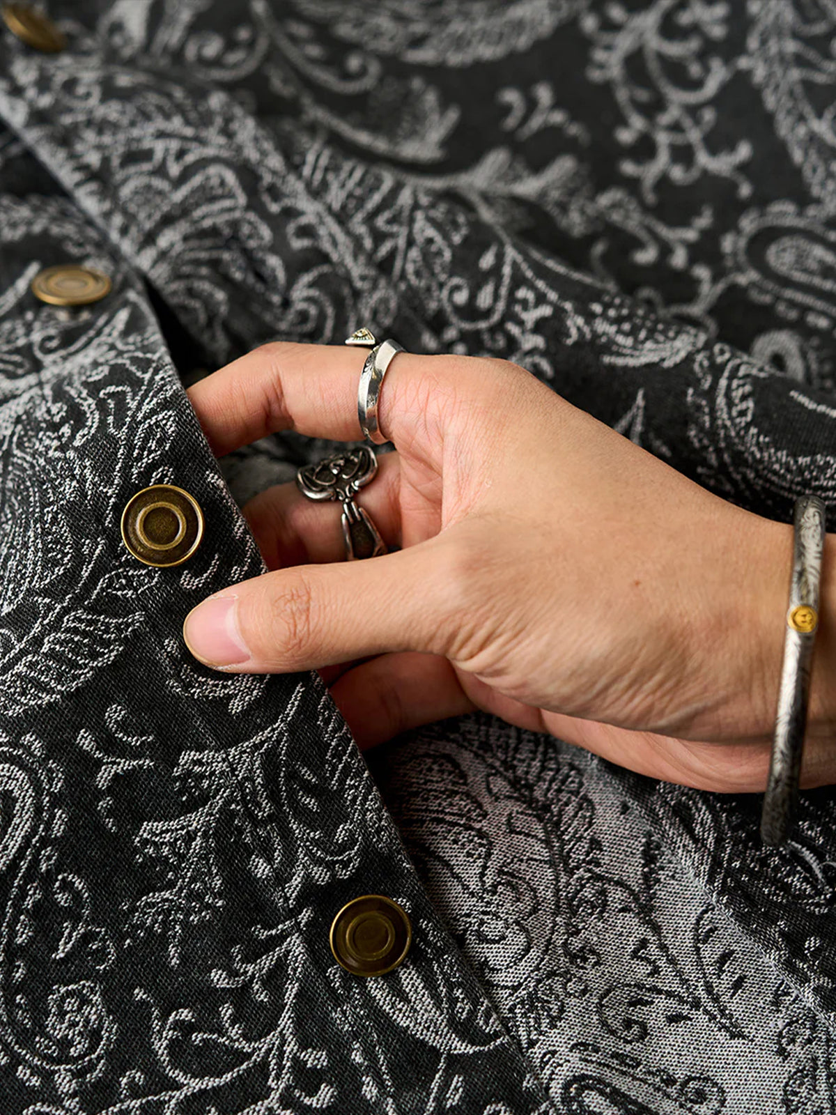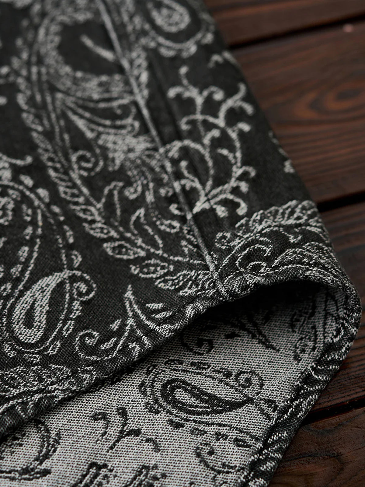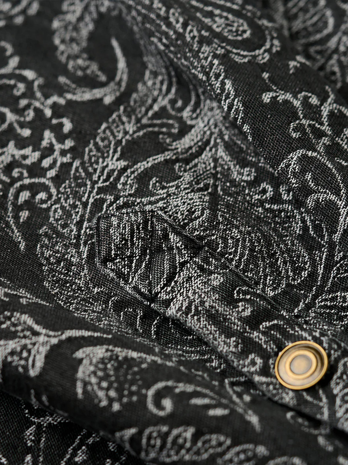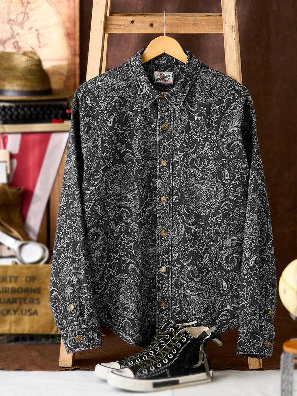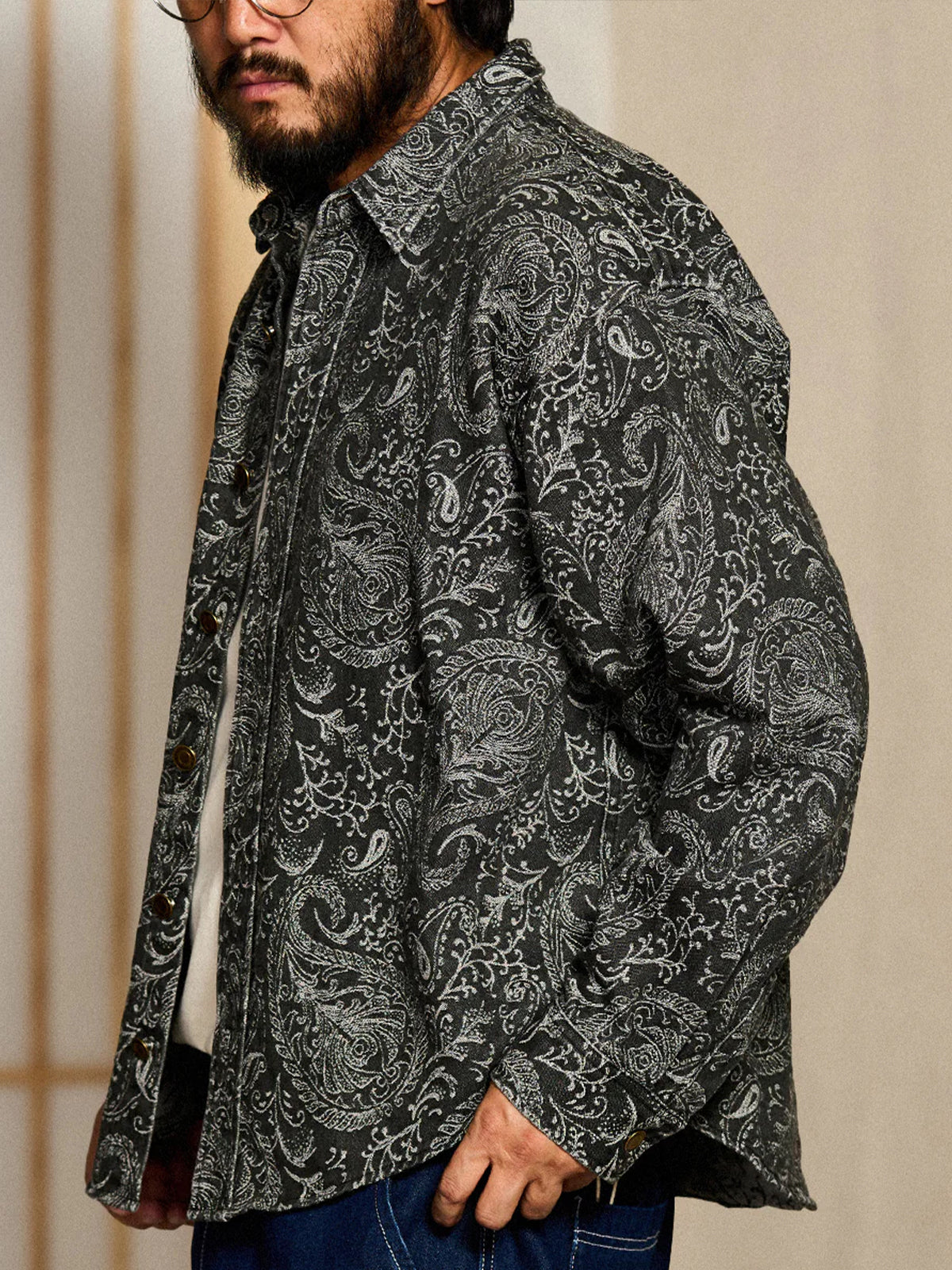 Jacquard Paisley All-Over Wash Denim Long Sleeve Shirt