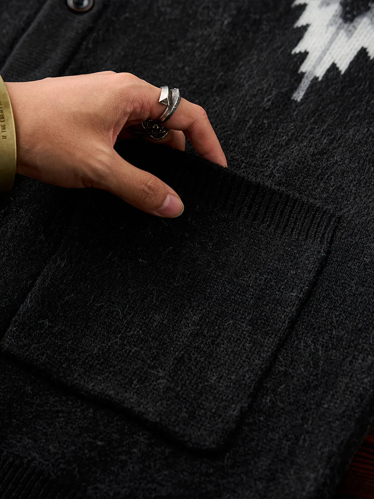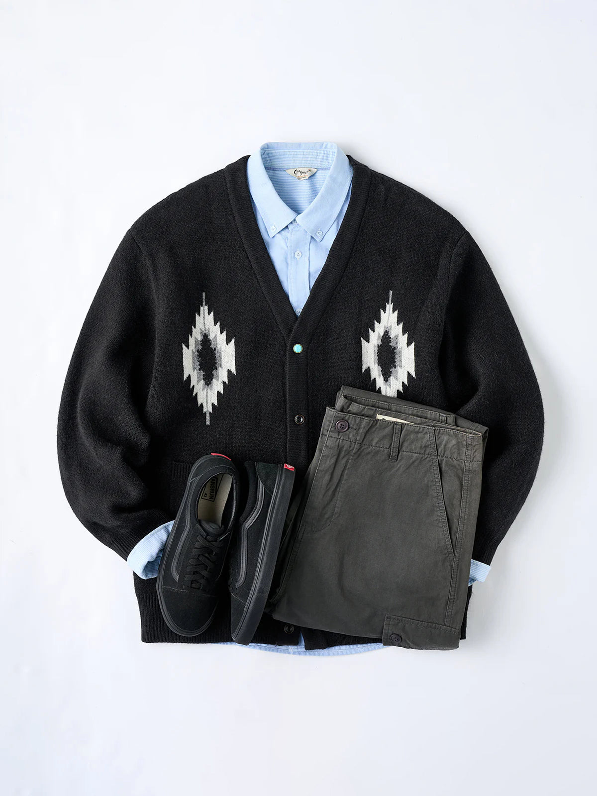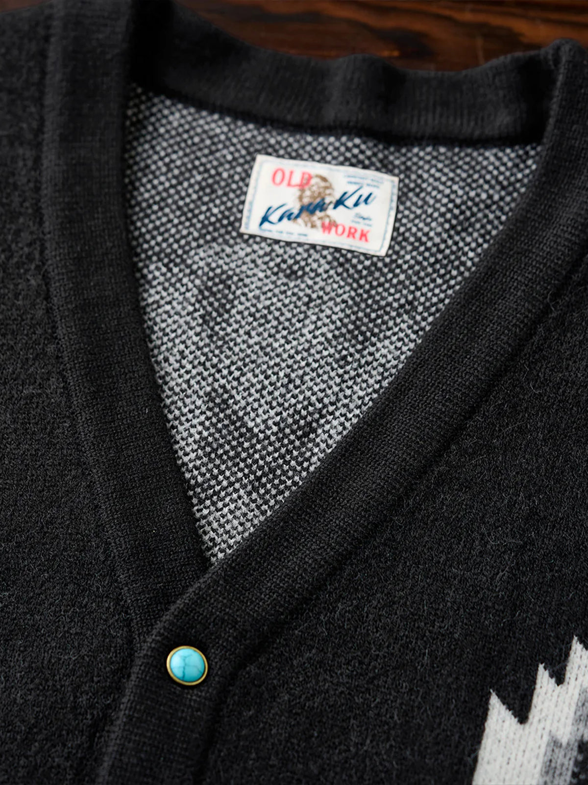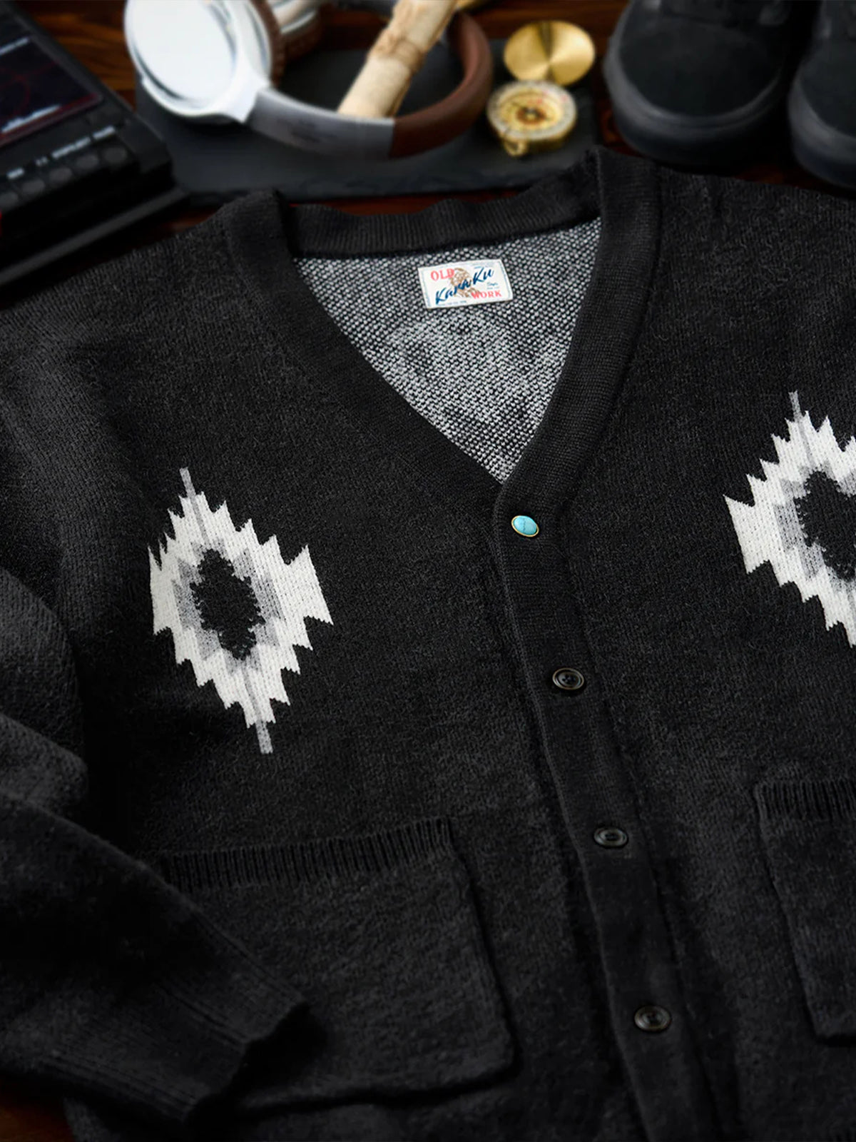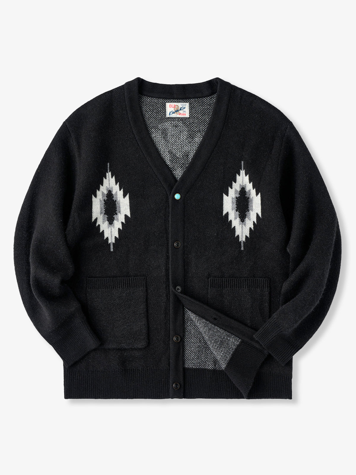 Jacquard Knit V-Neck Cardigan with Navajo & Thunderbird Motifs