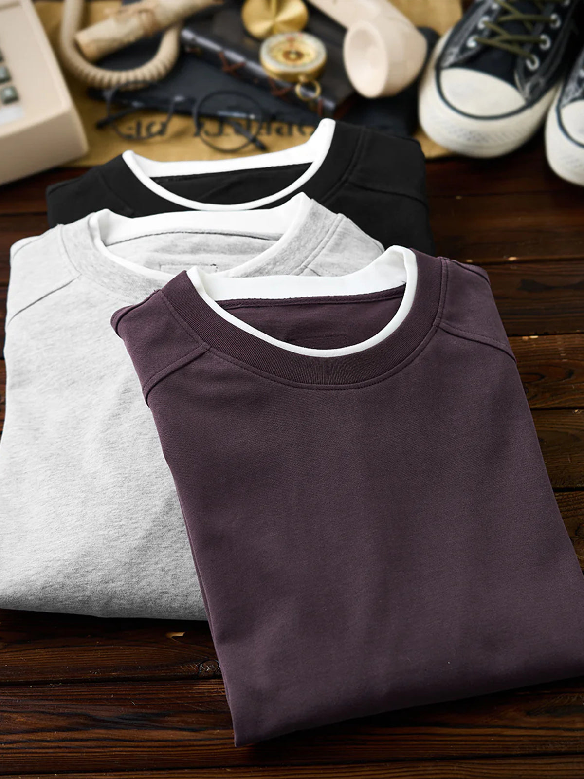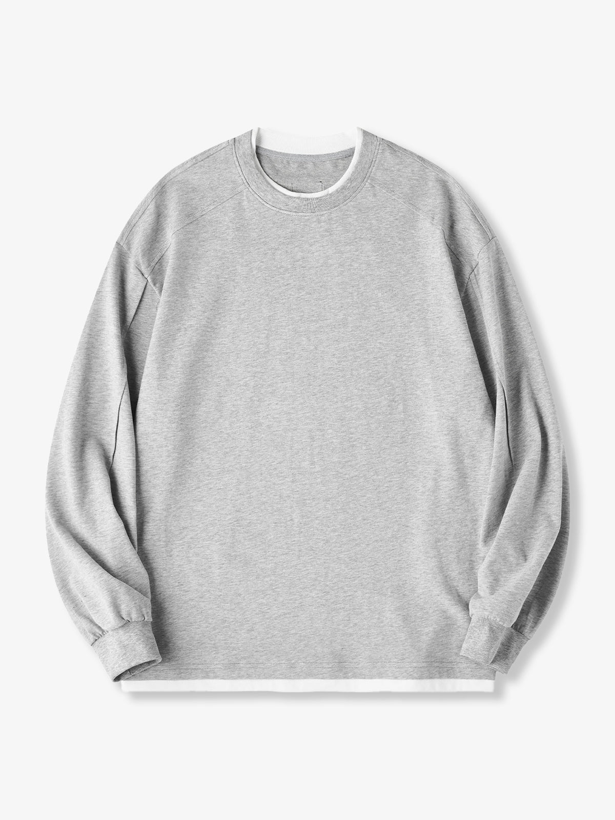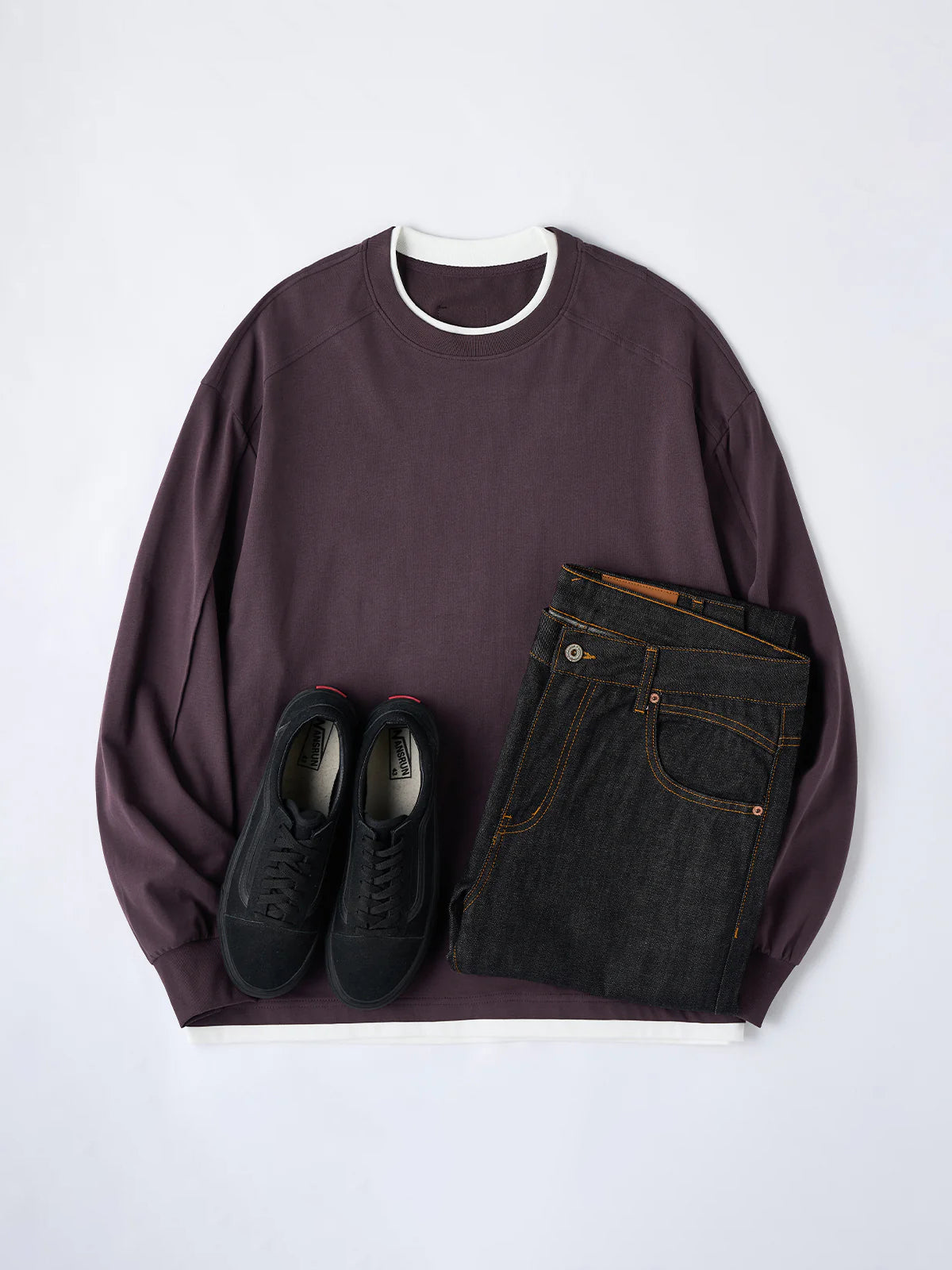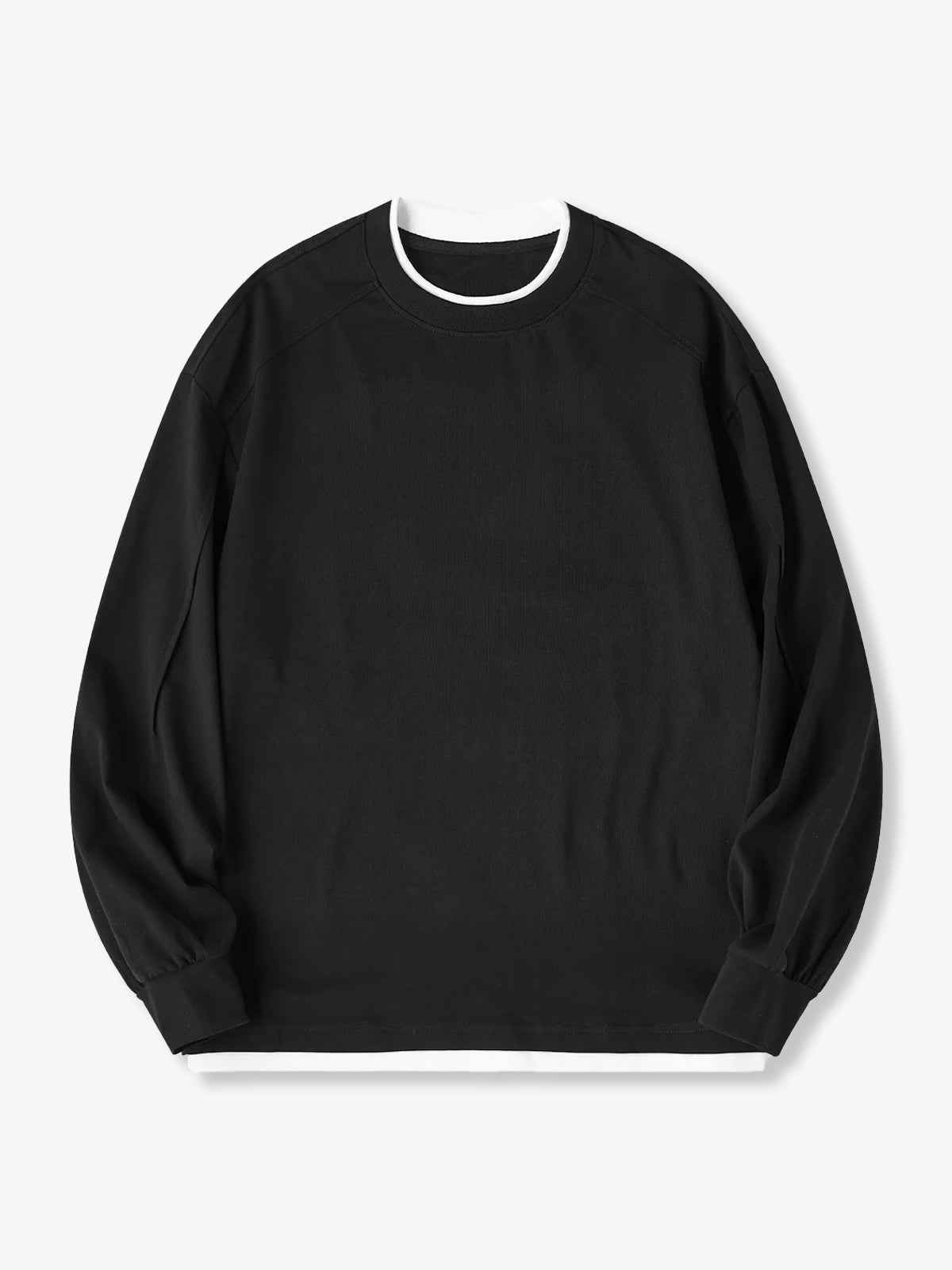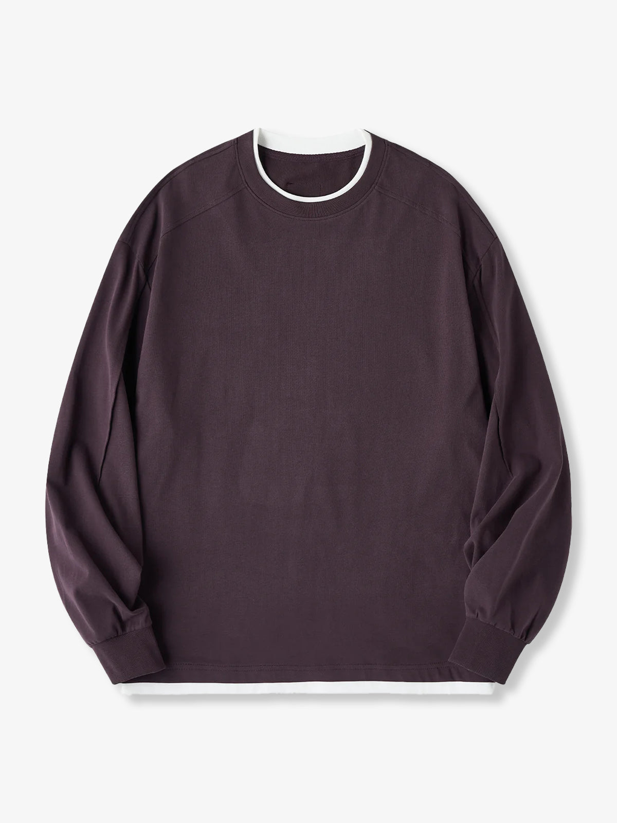 Faux Layered Cotton Long Sleeve Tee with Leather Tag