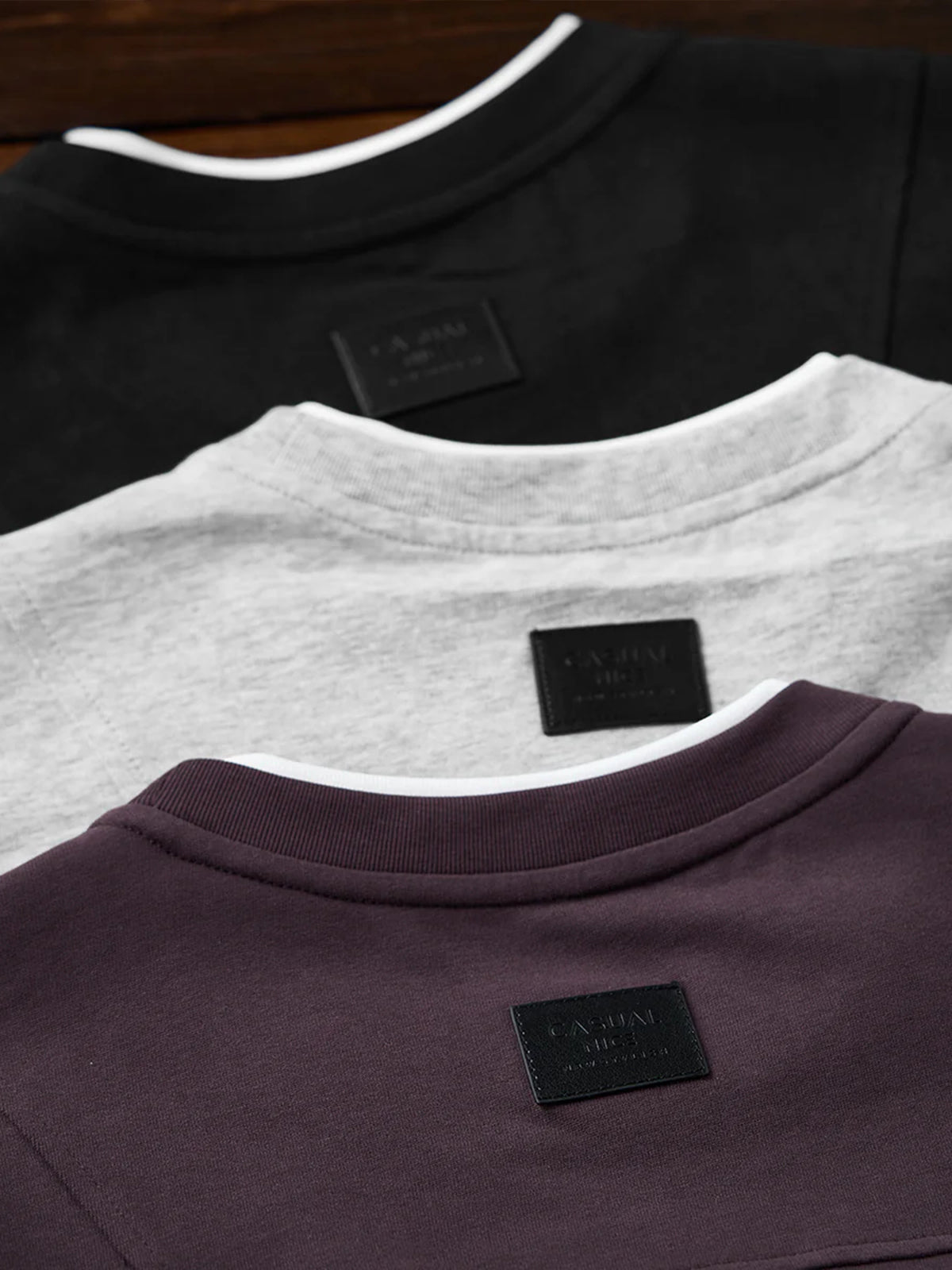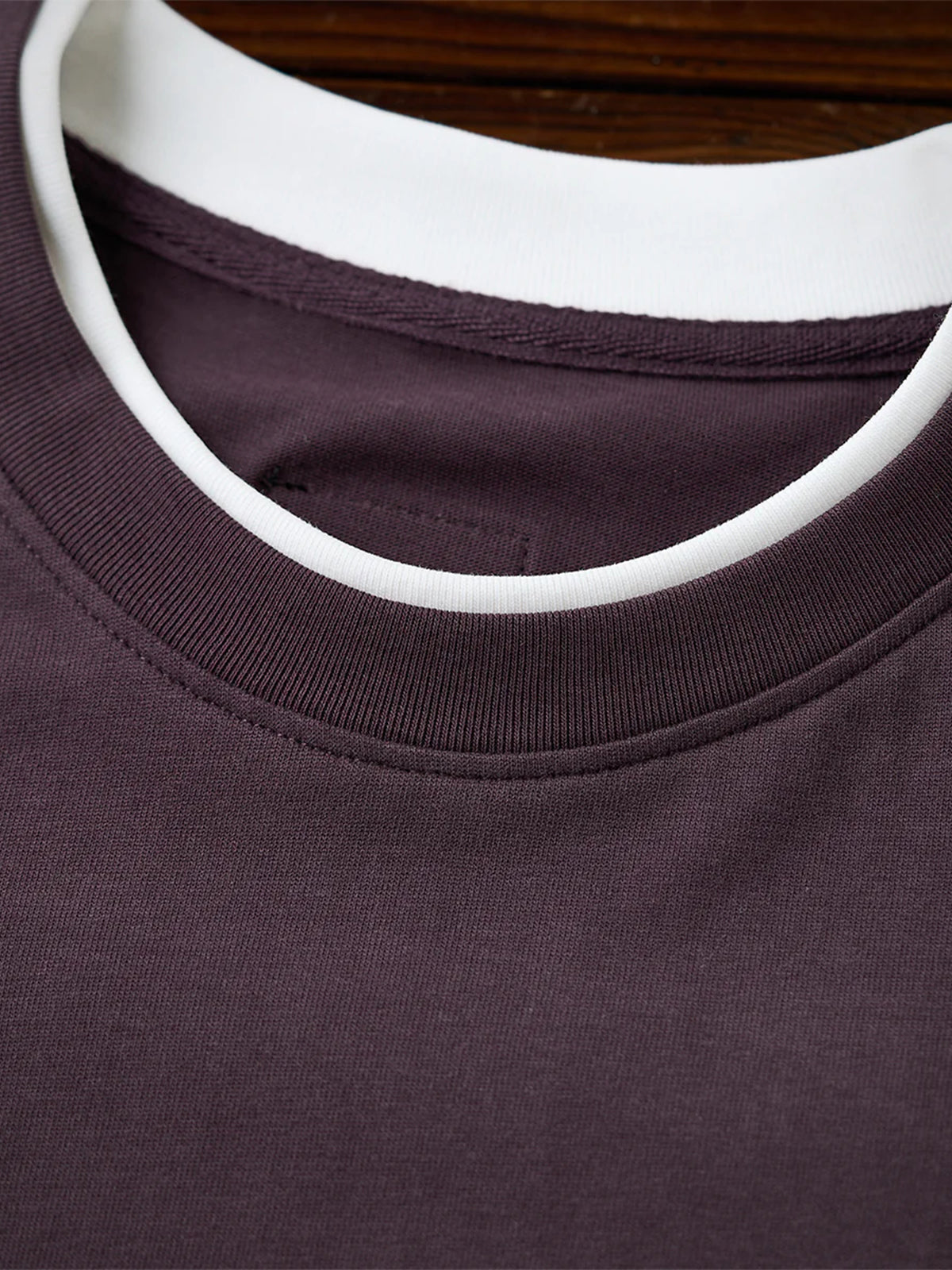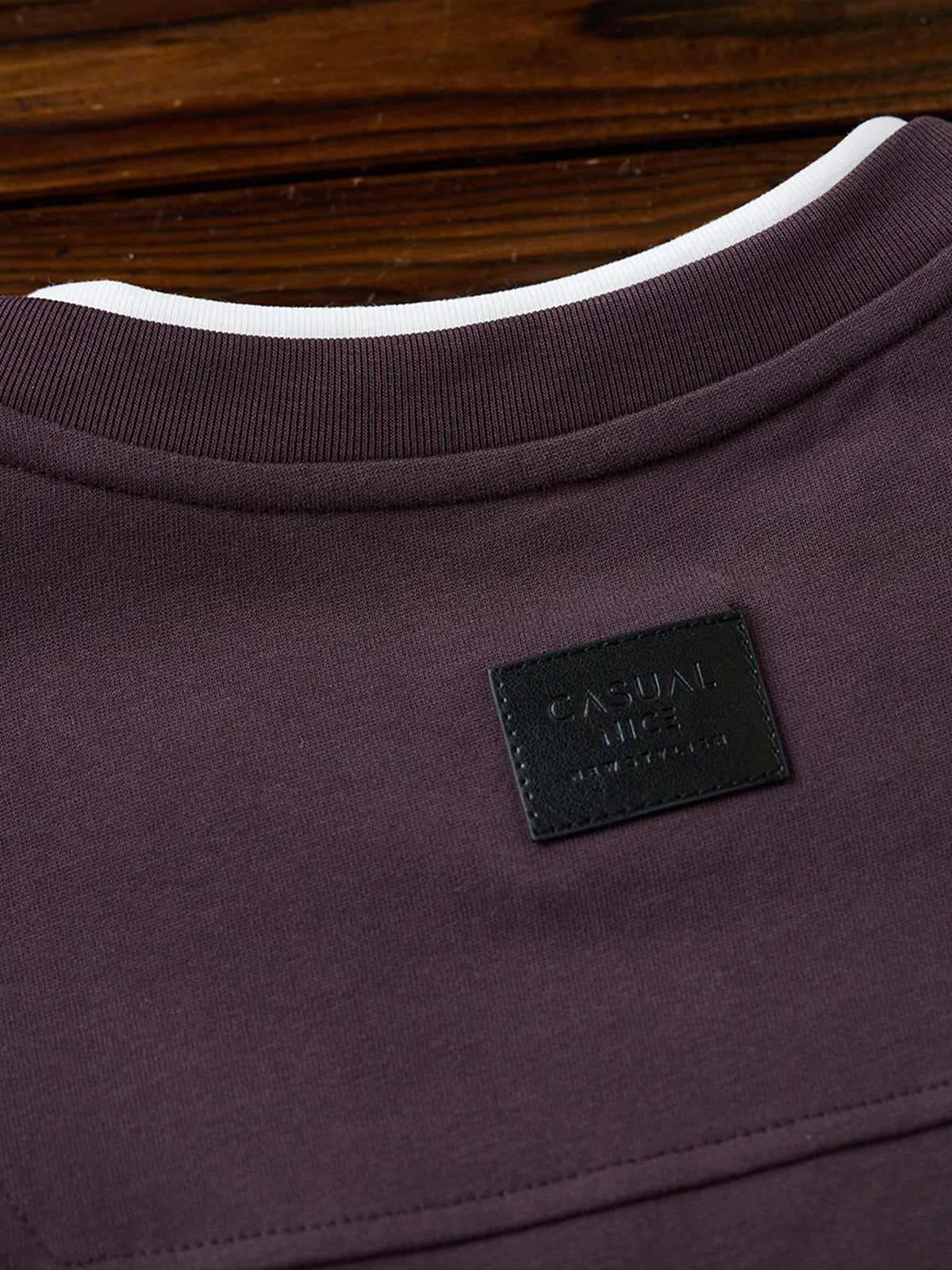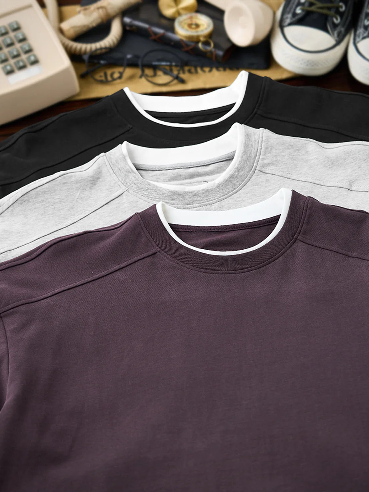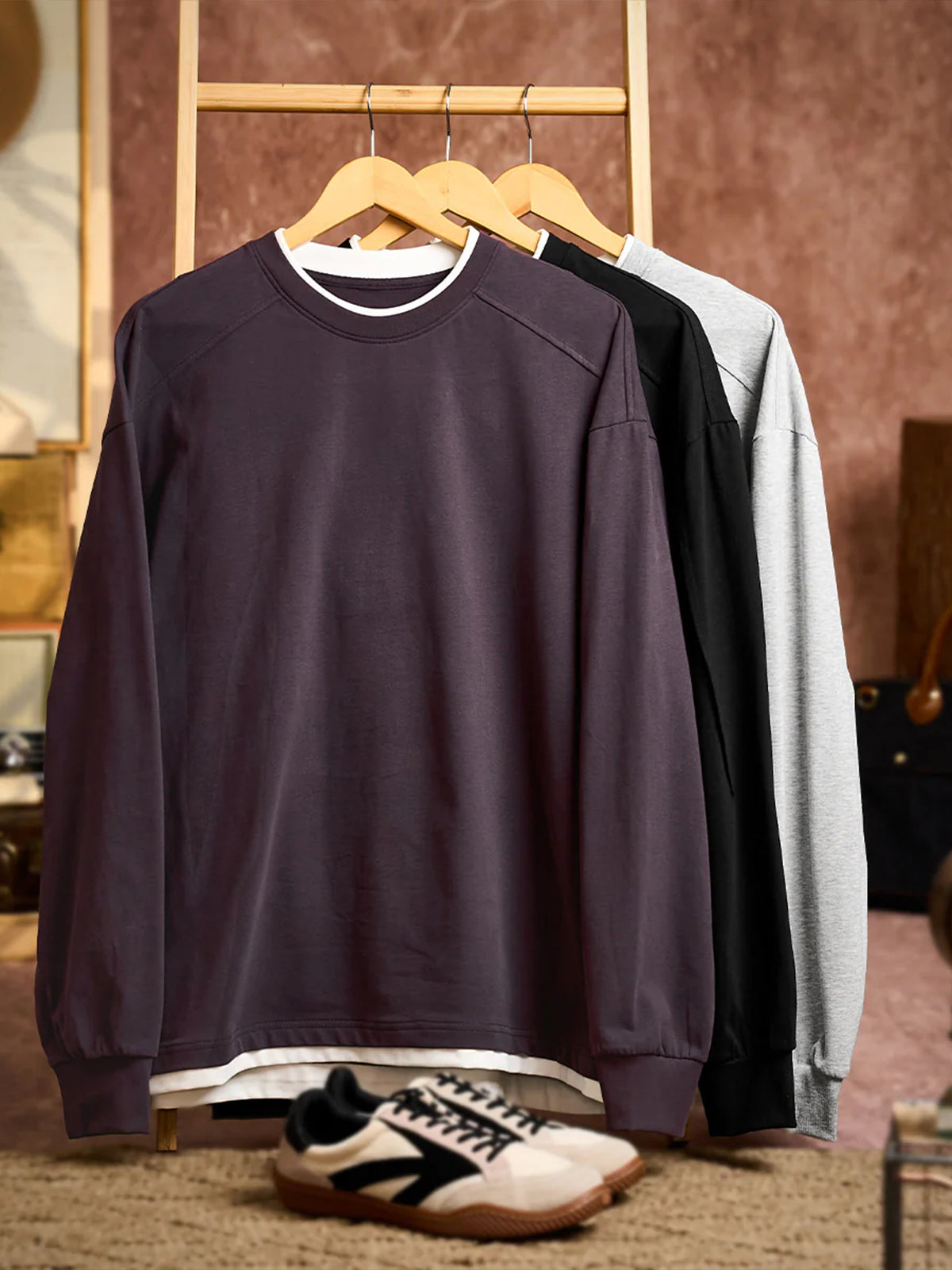 Faux Layered Cotton Long Sleeve Tee with Leather Tag