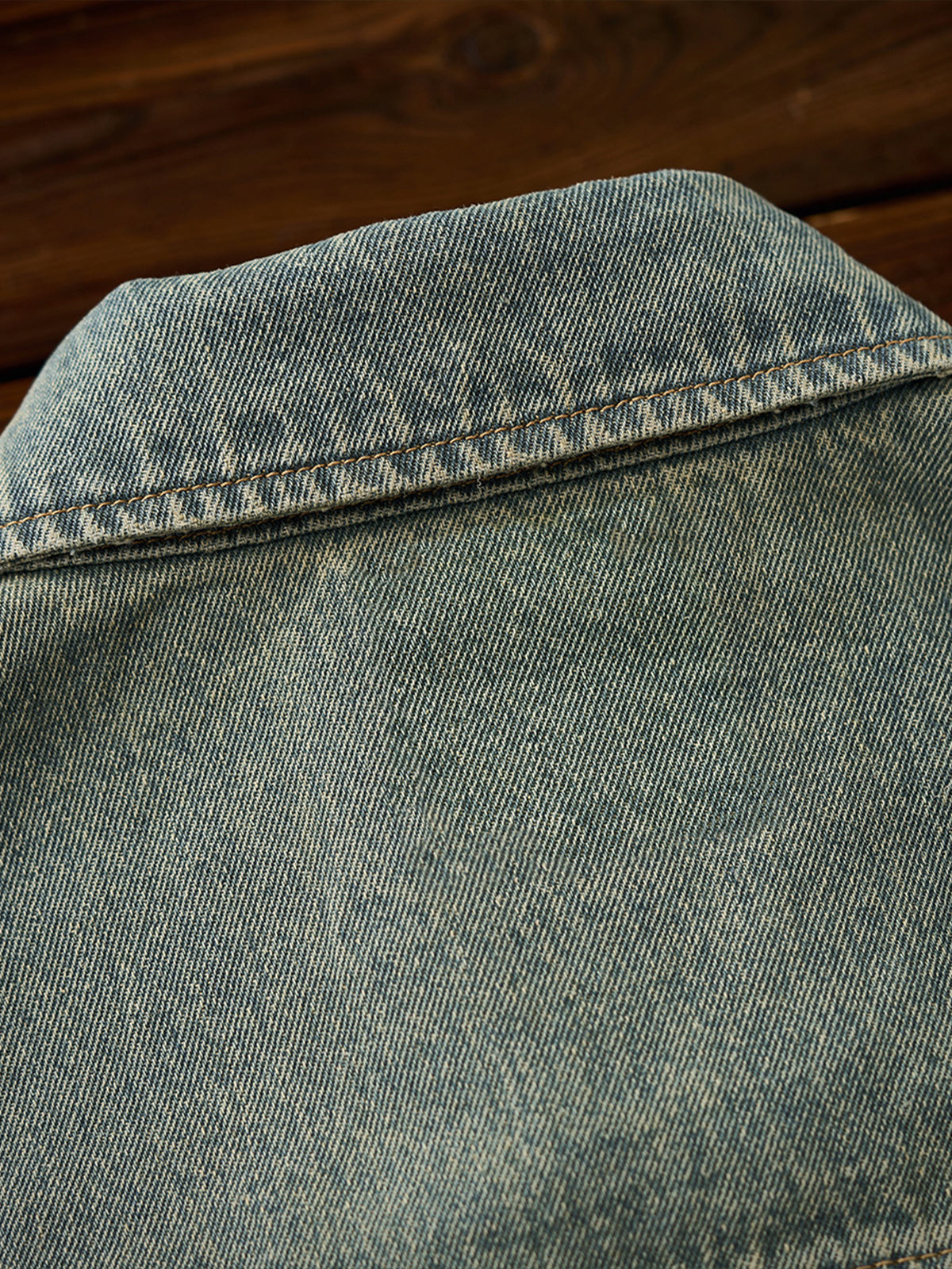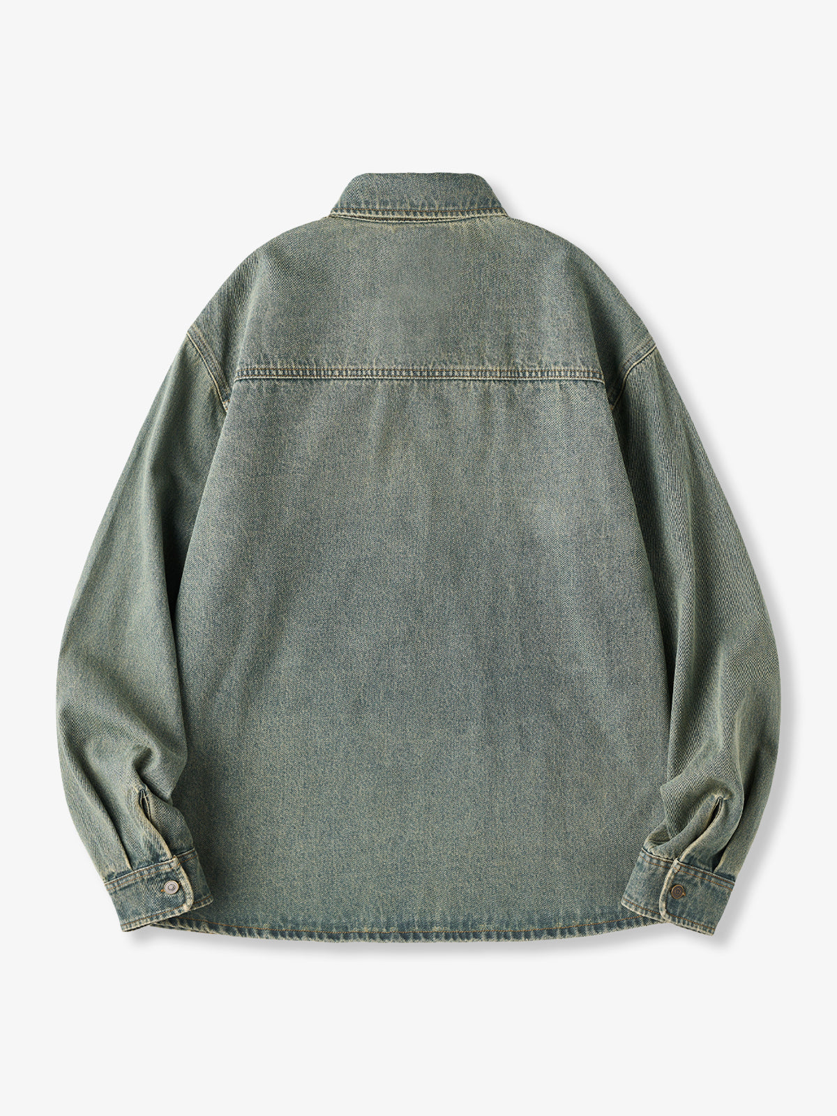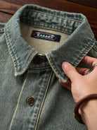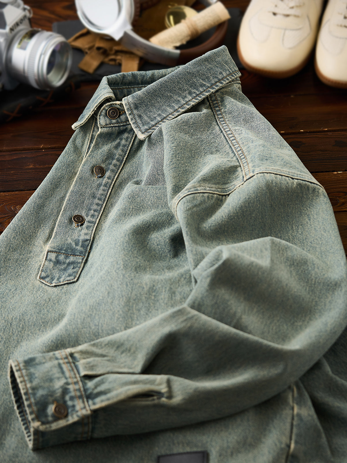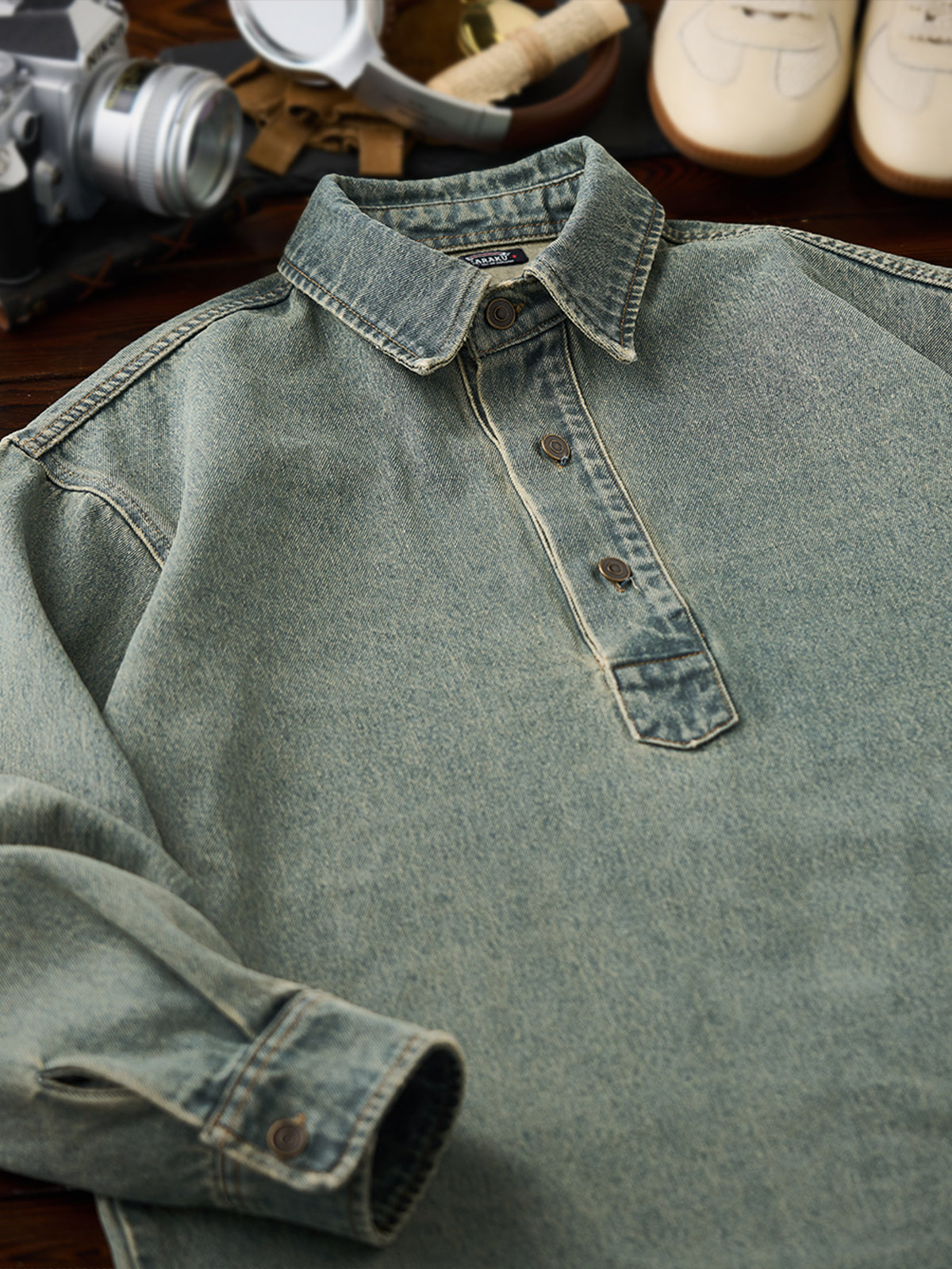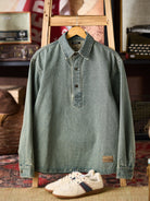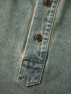 Washed Half-Button Long-Sleeve Denim Shirt