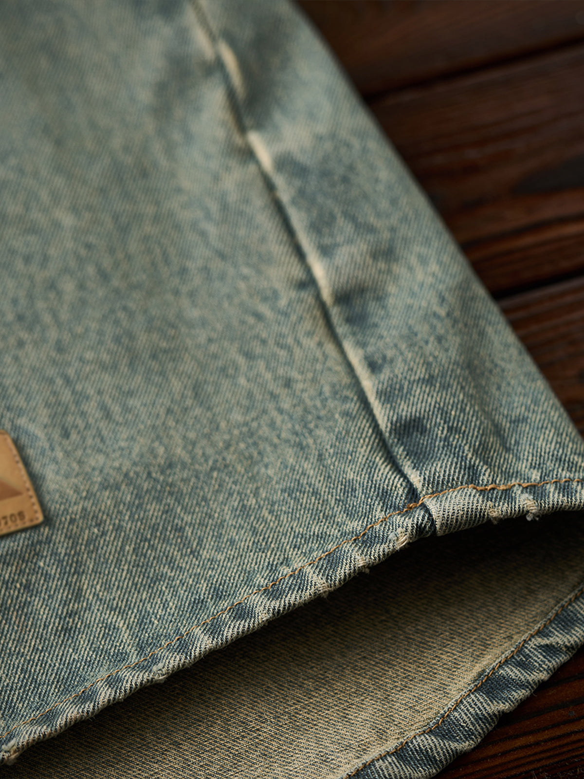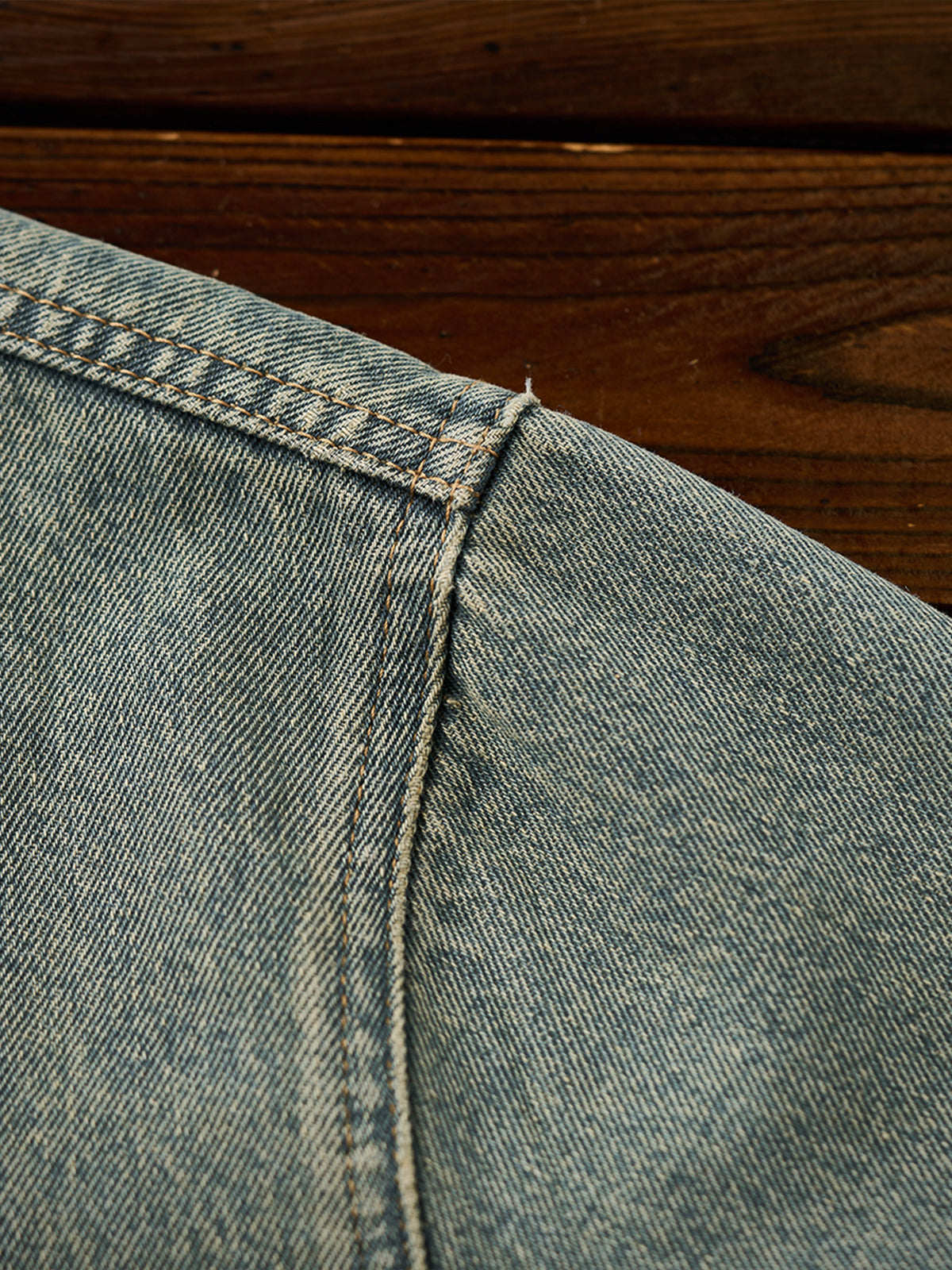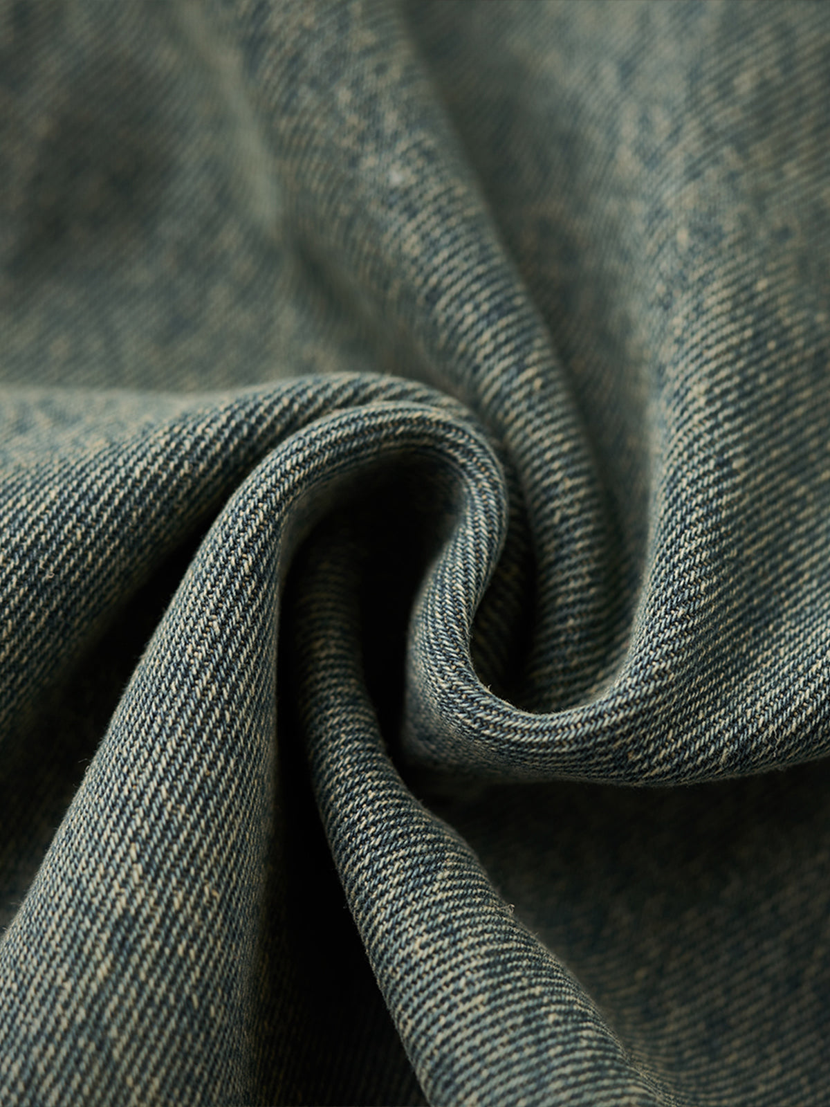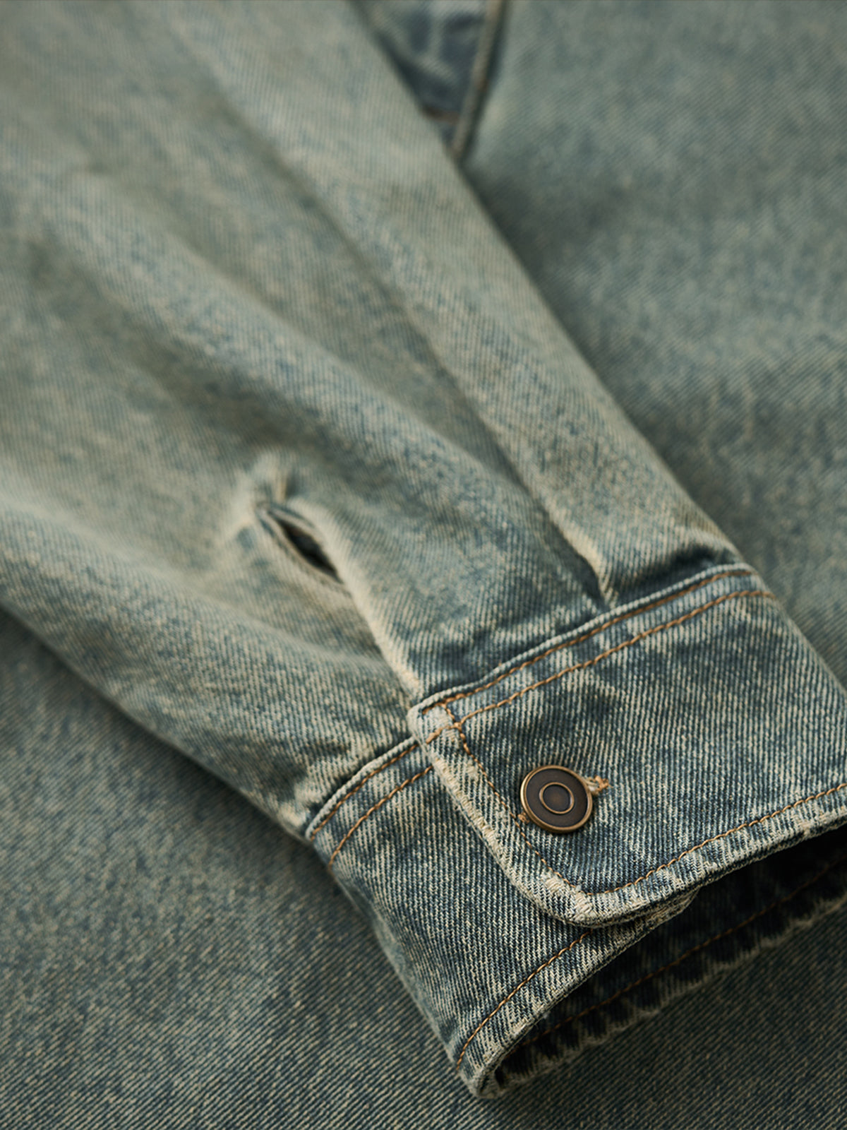 Washed Half-Button Long-Sleeve Denim Shirt