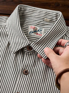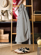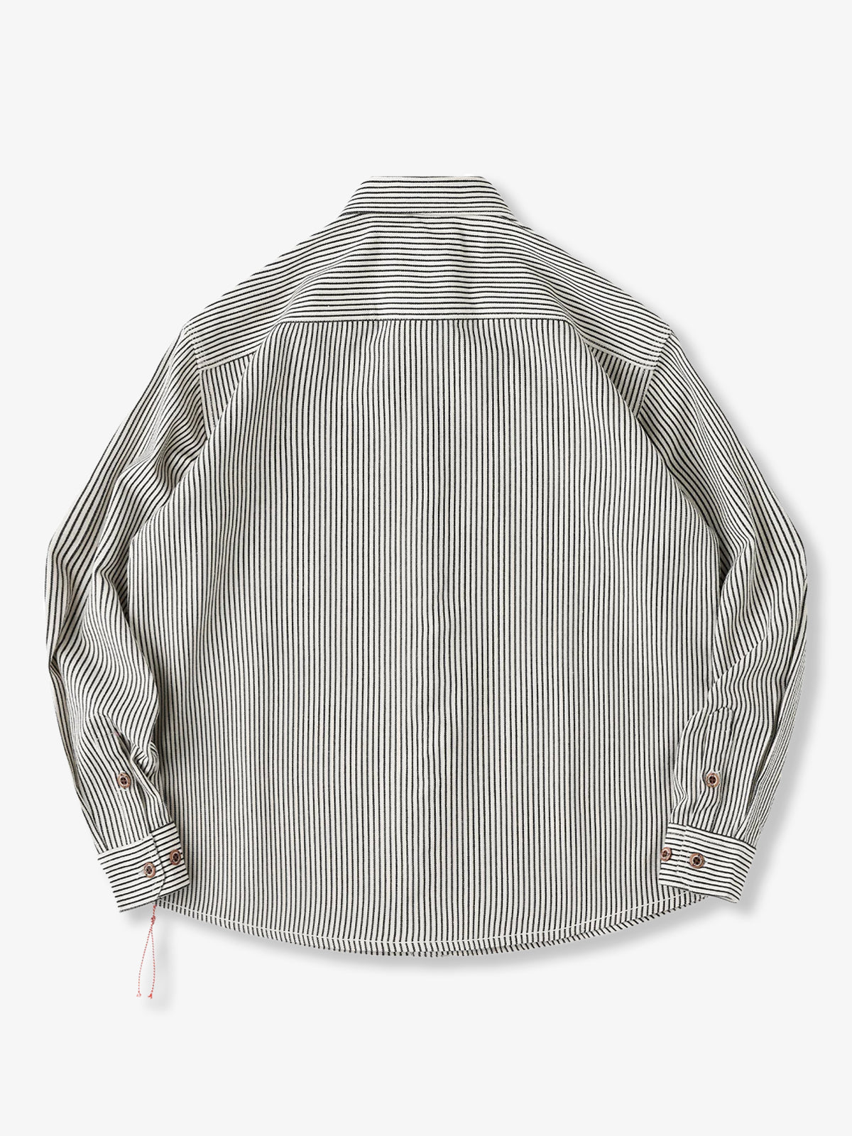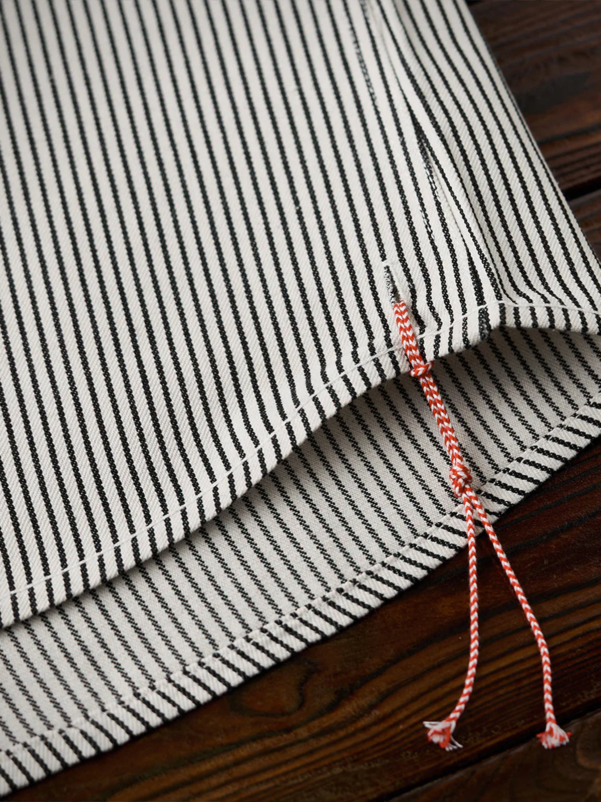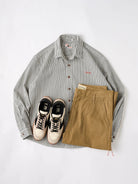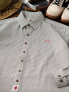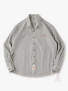 [Pre-Order] ‘Karaku’ Embroidered Logo Striped Long-Sleeve Shirt with Red-White Drawstrings