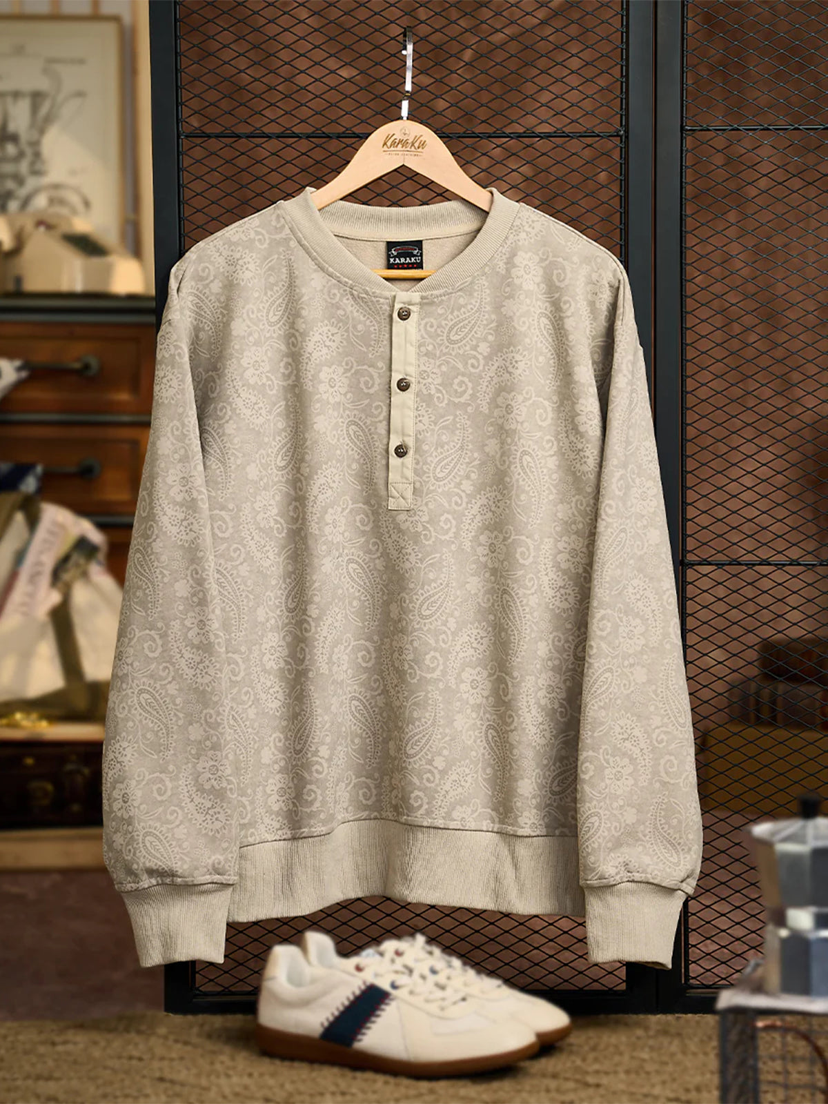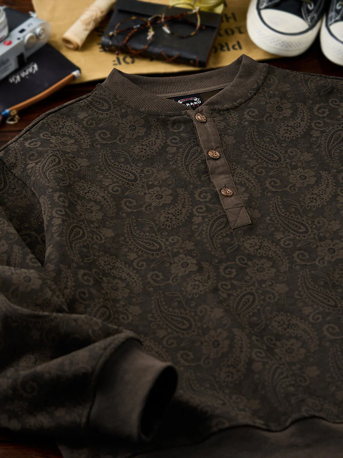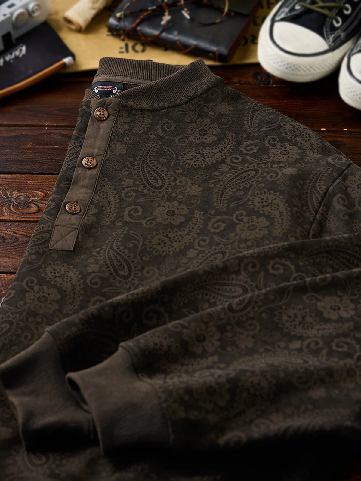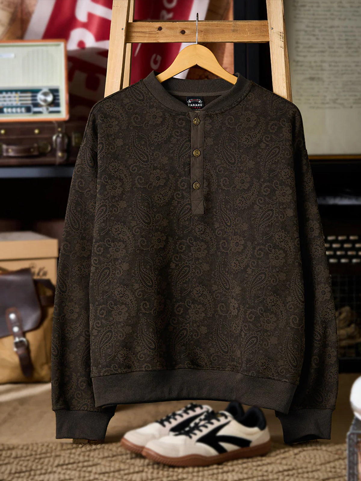 Washed Paisley All-Over Half-Button Sweatshirt