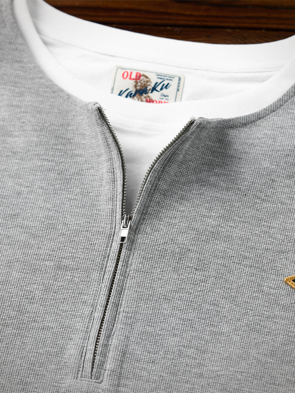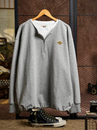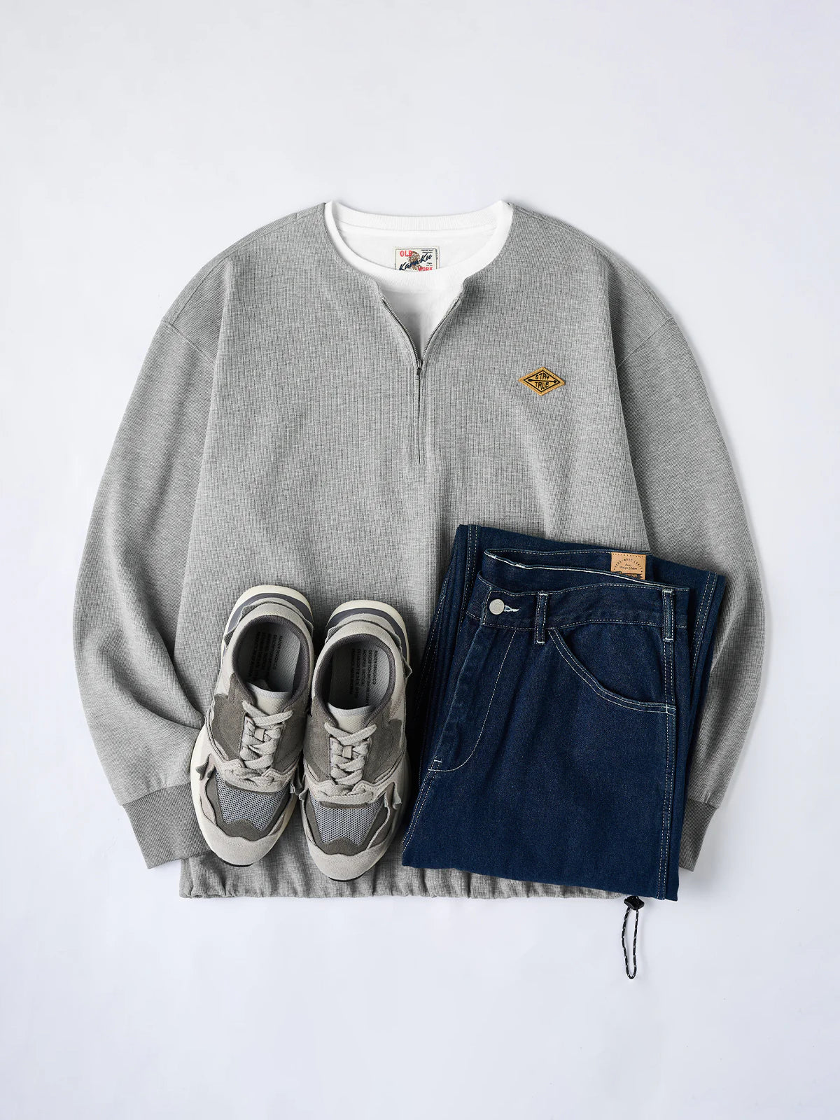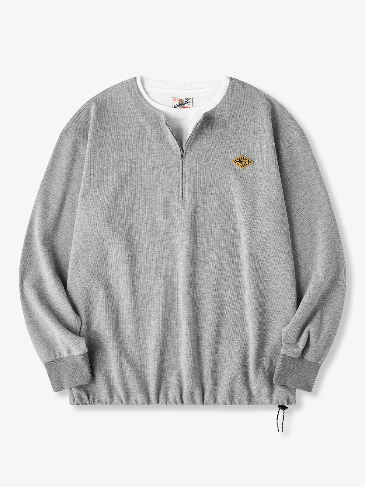 [Pre-Order] "STAY TRUE" Embroidered Patch Half-Zip Faux-Layer Waffle Long Sleeve Tee