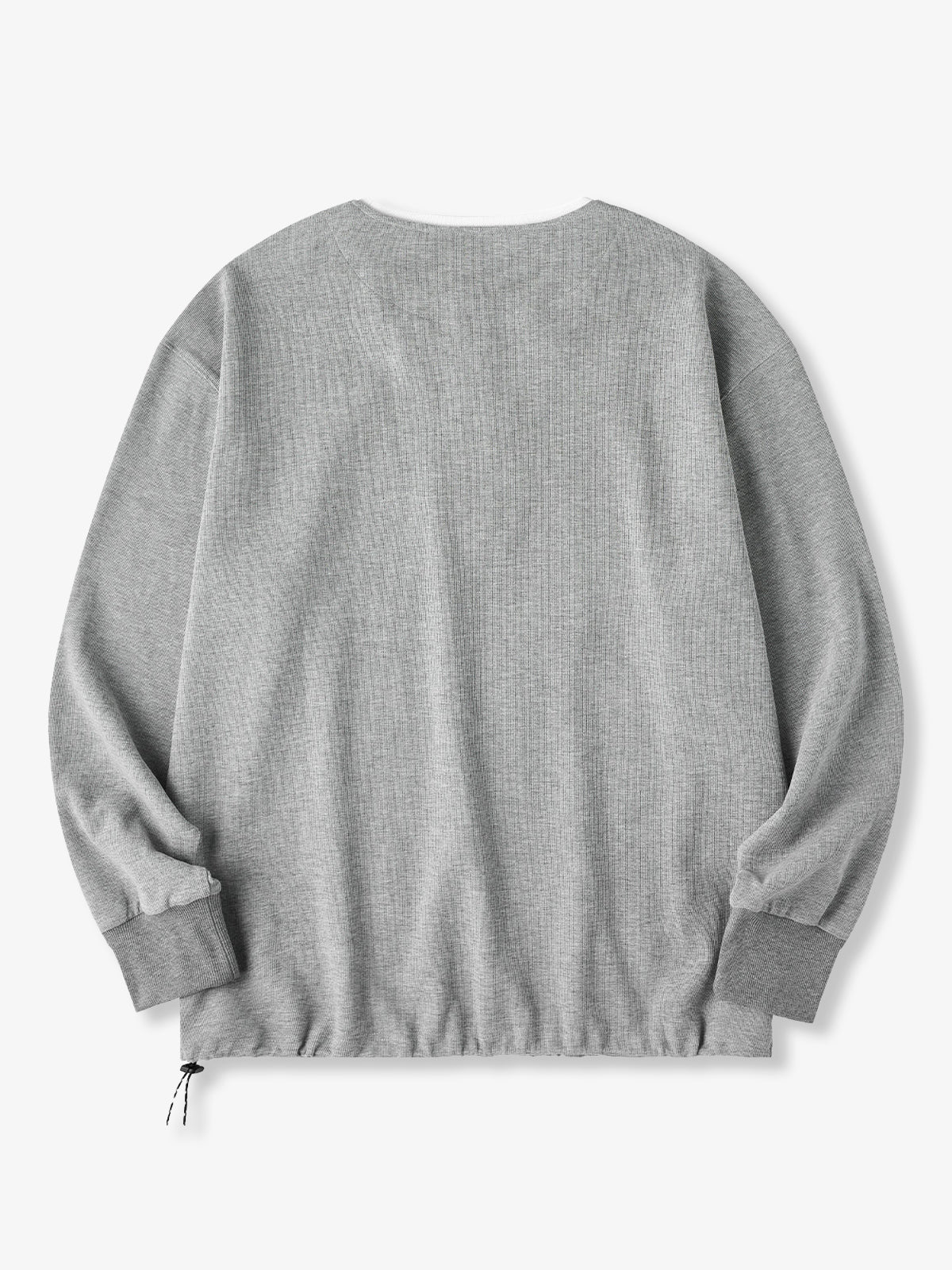 A casual waffle-knit long sleeve designed with a faux-layer look, revealing a white inner panel at the neckline. The half-zip front adds versatility—wear it open for a relaxed vibe or zipped up for a clean, streamlined finish.