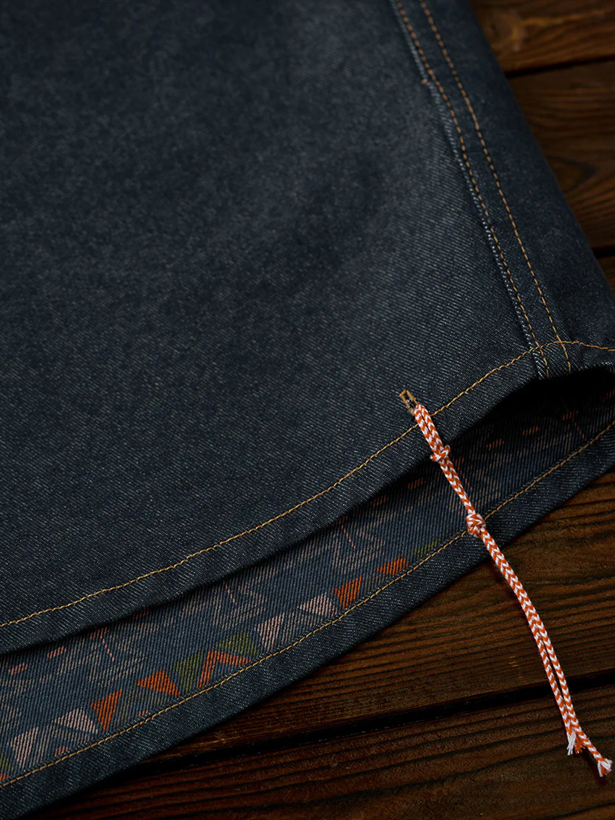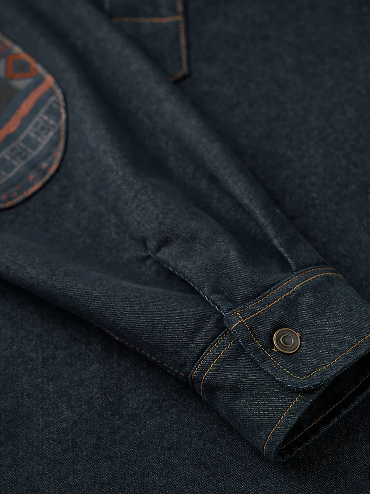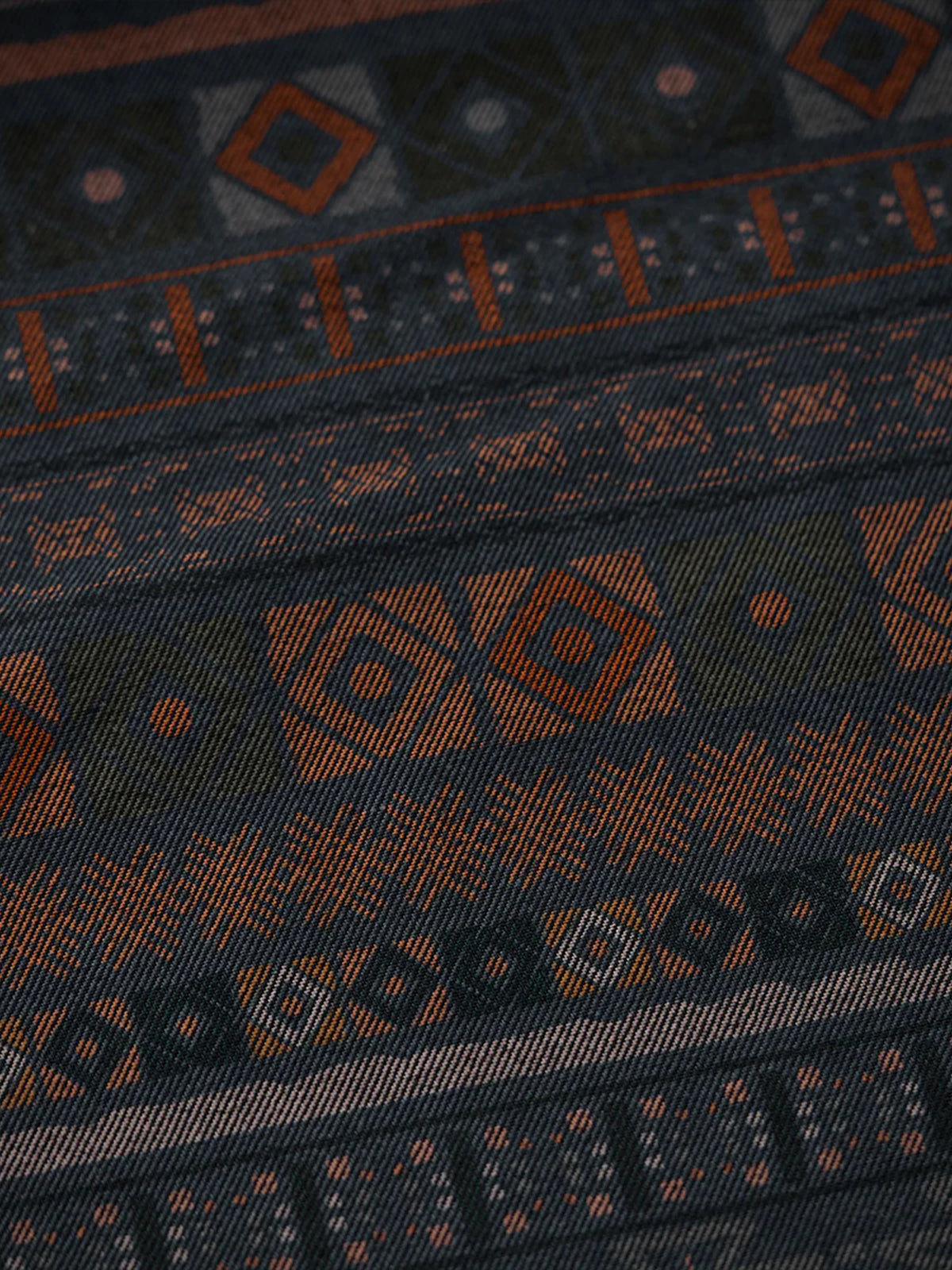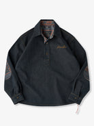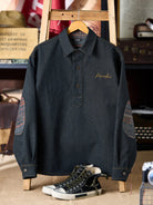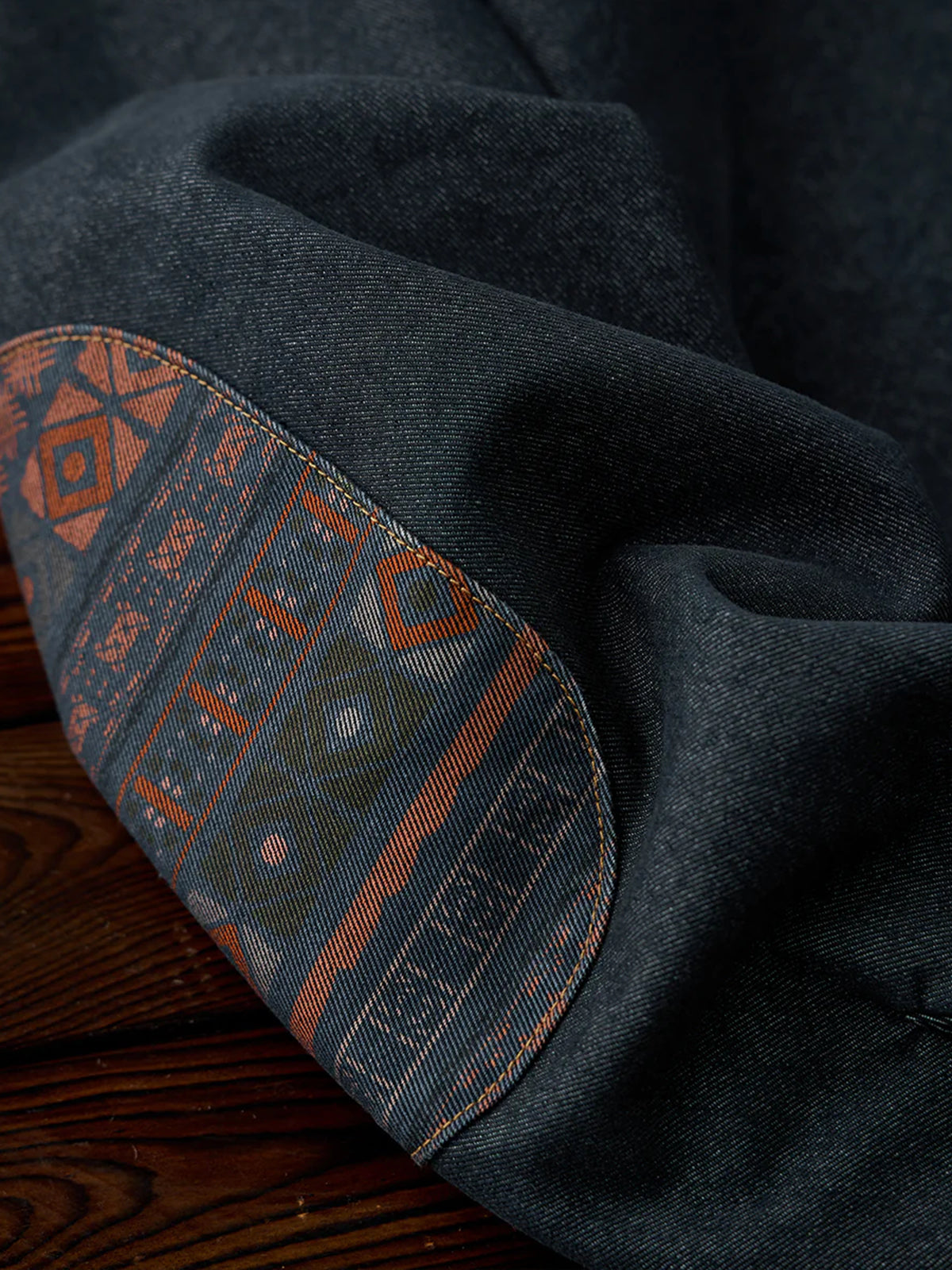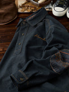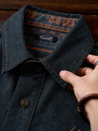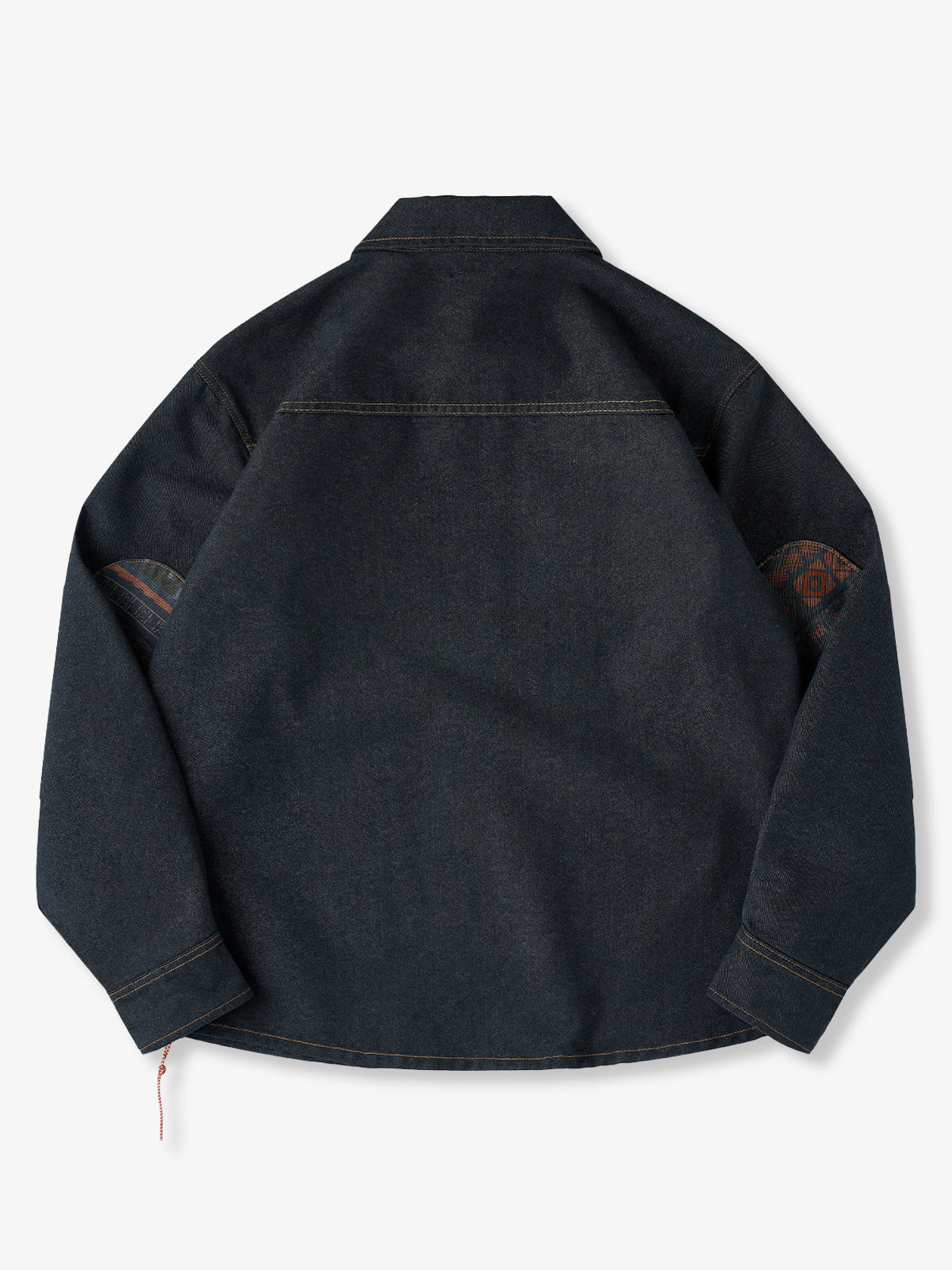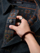 [Pre-Order] Ethnic Print Panel Half-Button Denim Shirt with Red Cord