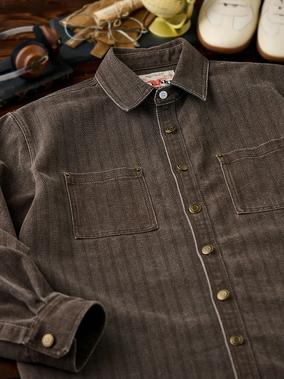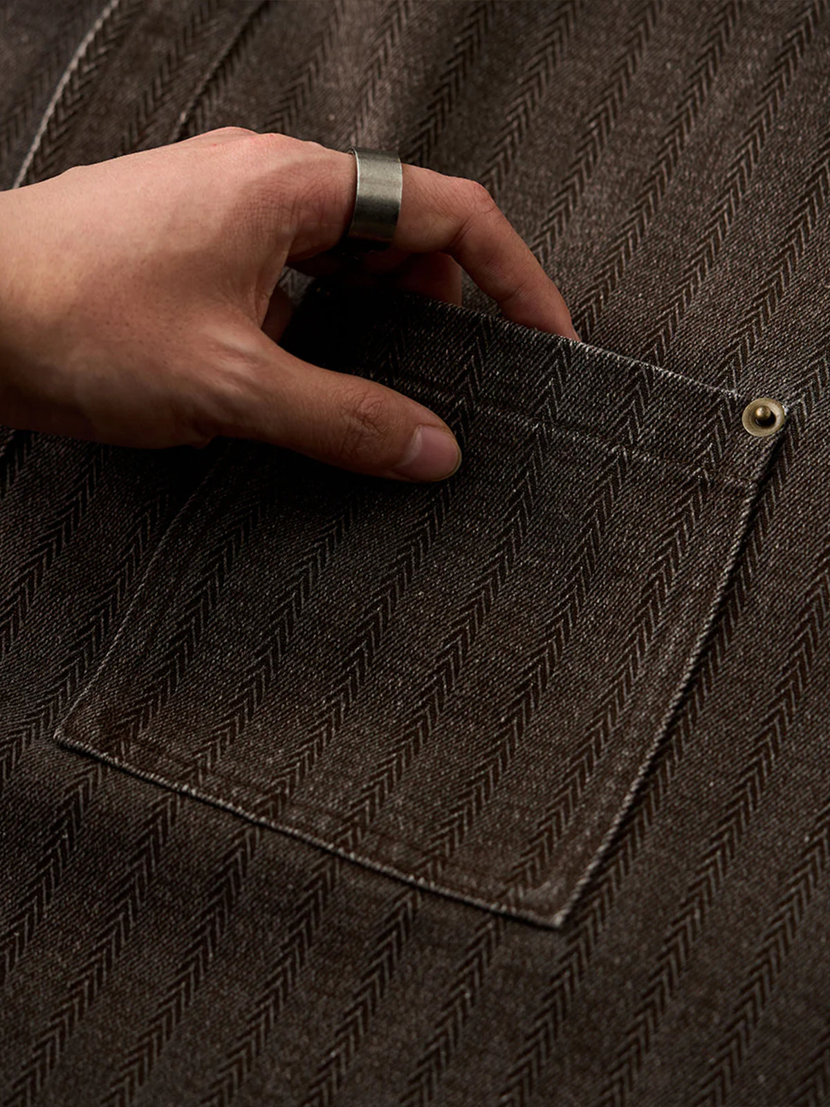 [Pre-Order] Multi-Functional Coated Herringbone Jacquard Denim Shirt
