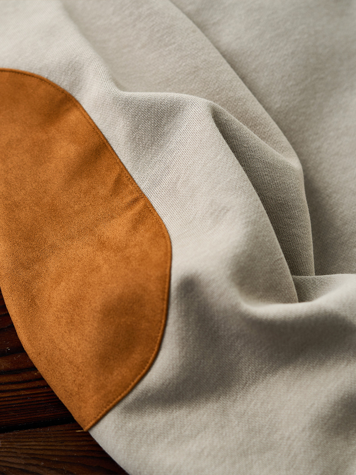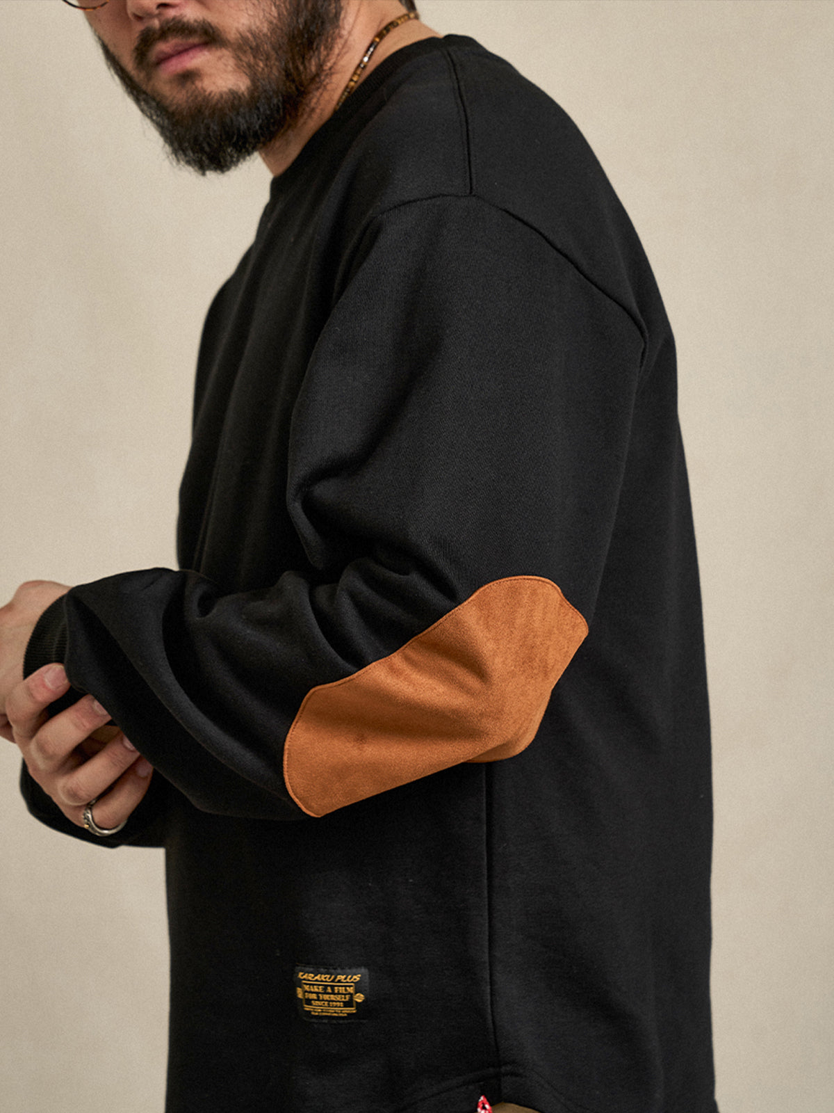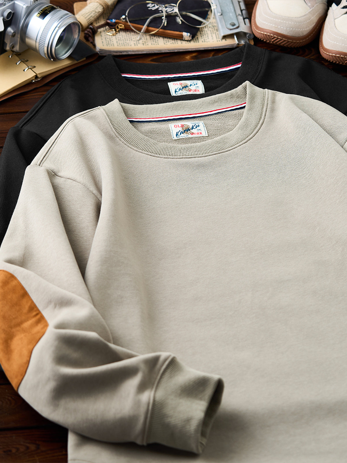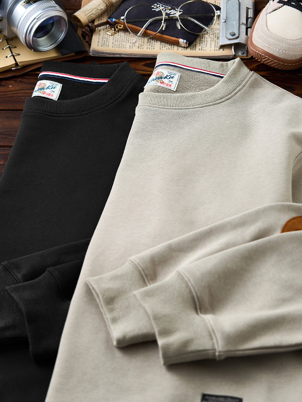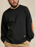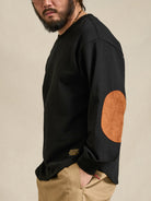 Terry-Lined Crewneck Sweatshirt with Red Drawstring & Suede Elbow Patches