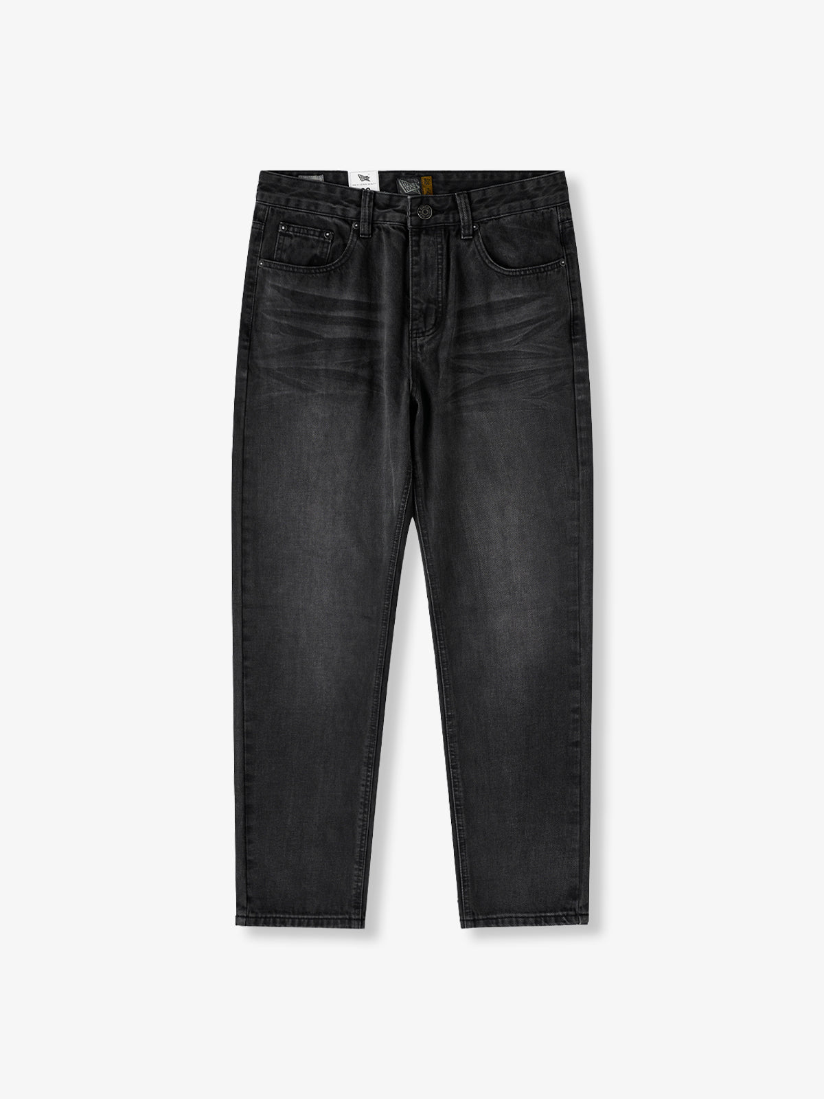 These straight-leg denim pants feature a combination of whisker and washed effects for a relaxed, lived-in look. Whisker detailing around the thighs and knees creates natural shading and depth, while the overall washed finish softens the denim for a comfortable, broken-in feel. The result is a pair of jeans that wear in easily, offering everyday comfort and a timeless, versatile silhouette.