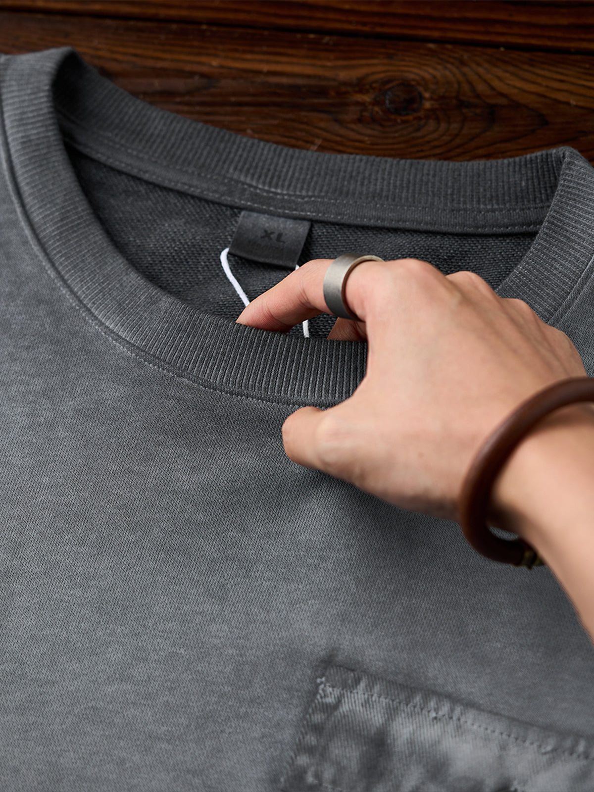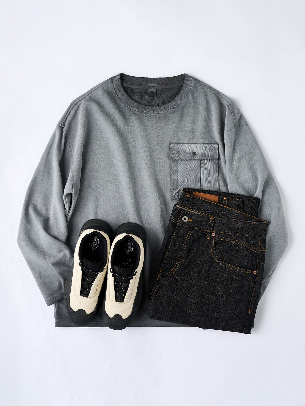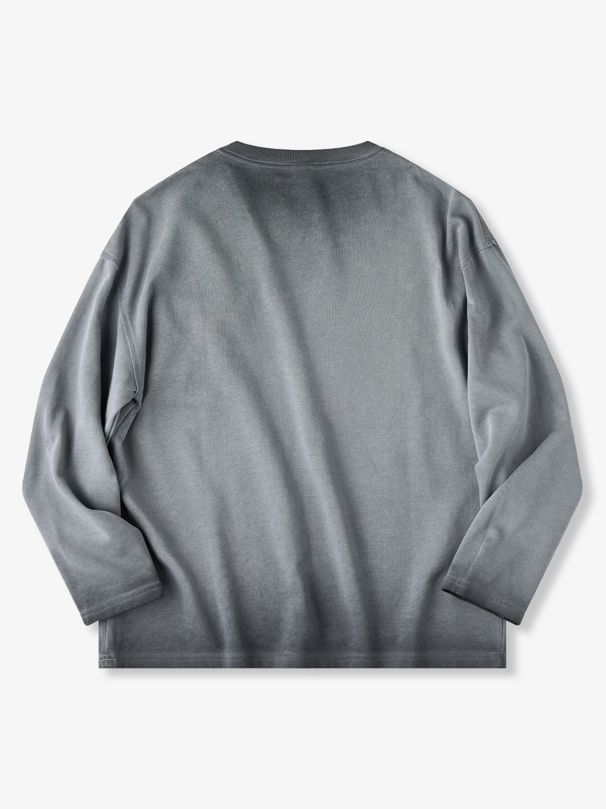 This long-sleeve T-shirt features gradient dyeing and a washed finish, creating depth and visual interest. The body showcases a subtle color transition, while the washed effect adds softness and natural variation, giving the shirt a relaxed, worn-in look from the first wear. A pleated pocket on the chest adds three-dimensional detail, blending style and functionality. With a relaxed fit, this piece works as a standout, easy-to-style long-sleeve top.