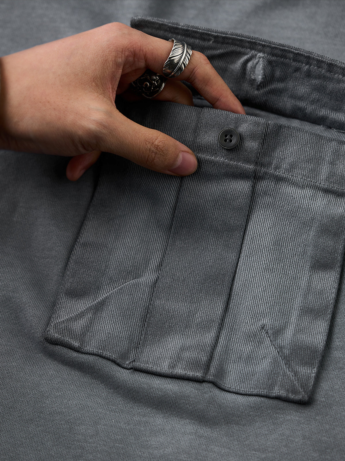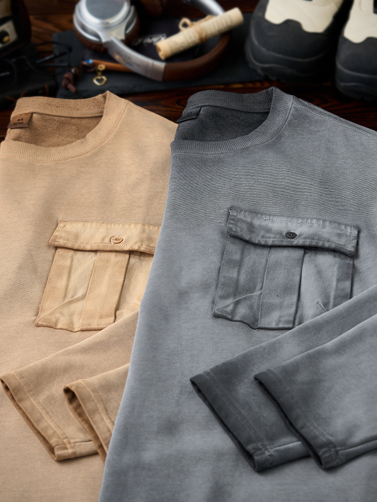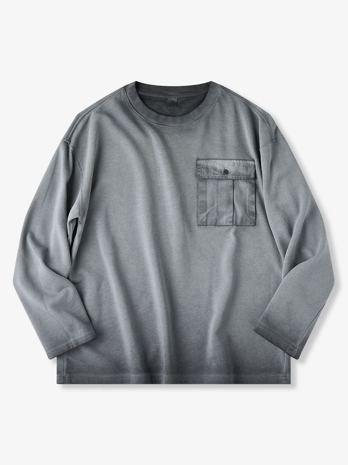 Long-Sleeve Gradient-Dyed Washed T-Shirt with Pleated Pocket