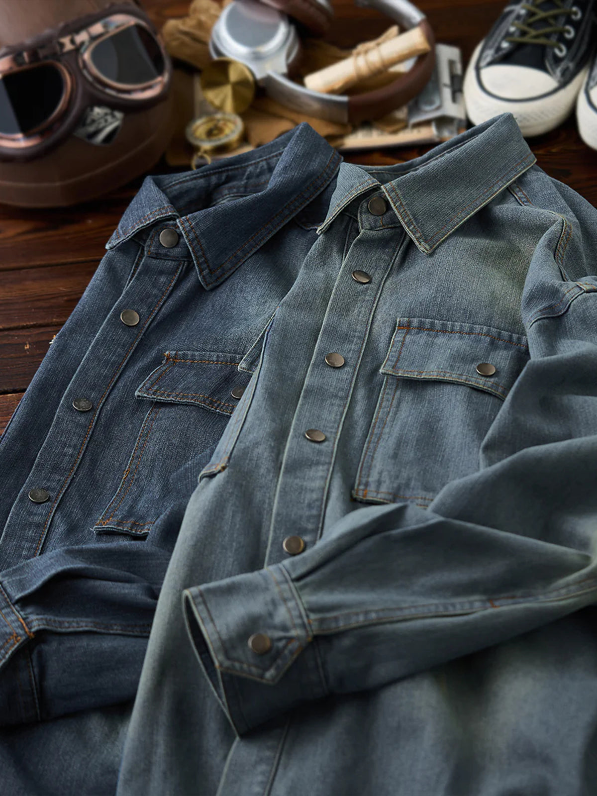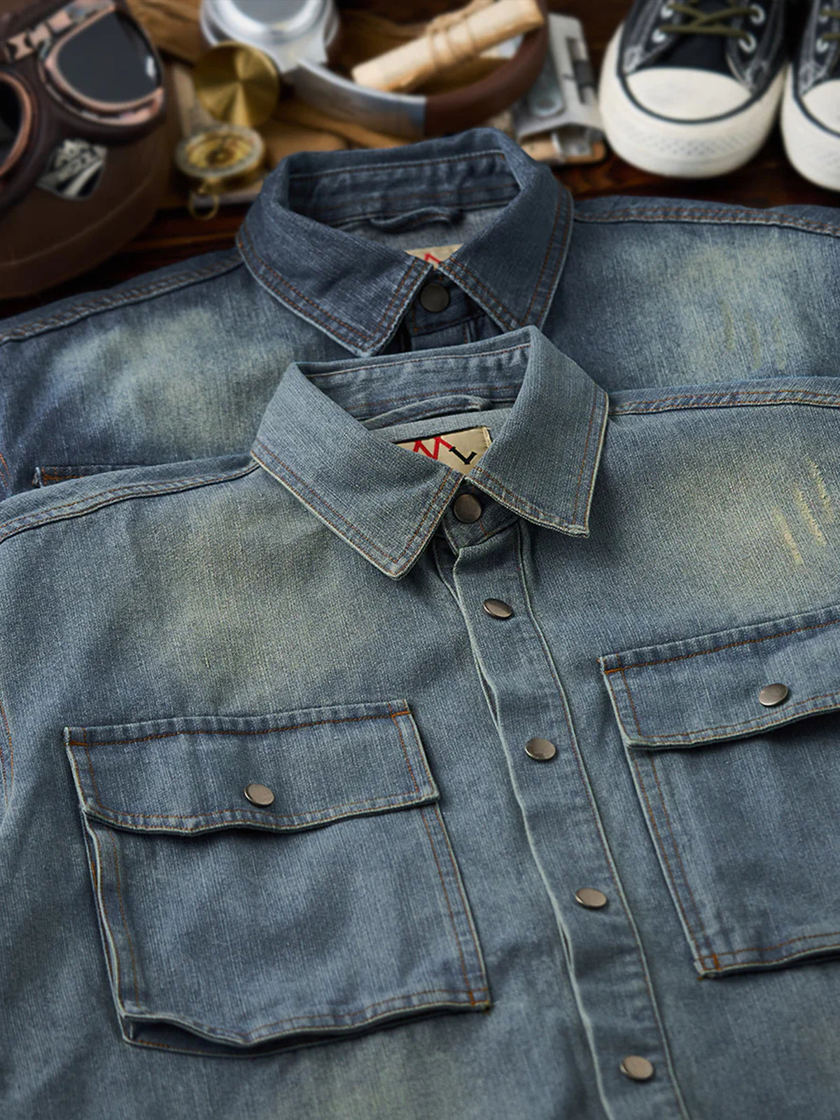 - Fabric Features: Crafted from durable, high-quality denim, this shirt offers comfort and longevity. The stonewash treatment enhances its vintage appeal and worn-in texture, giving it a distinct, rugged look.