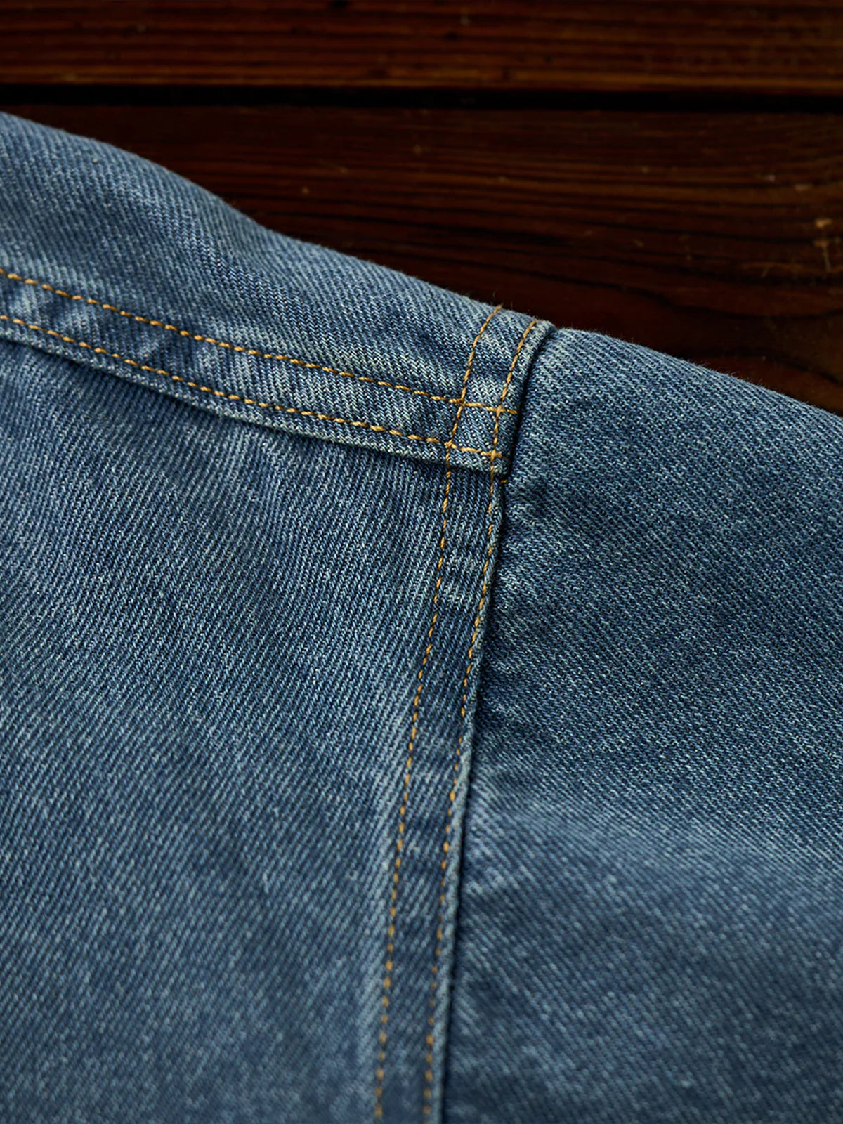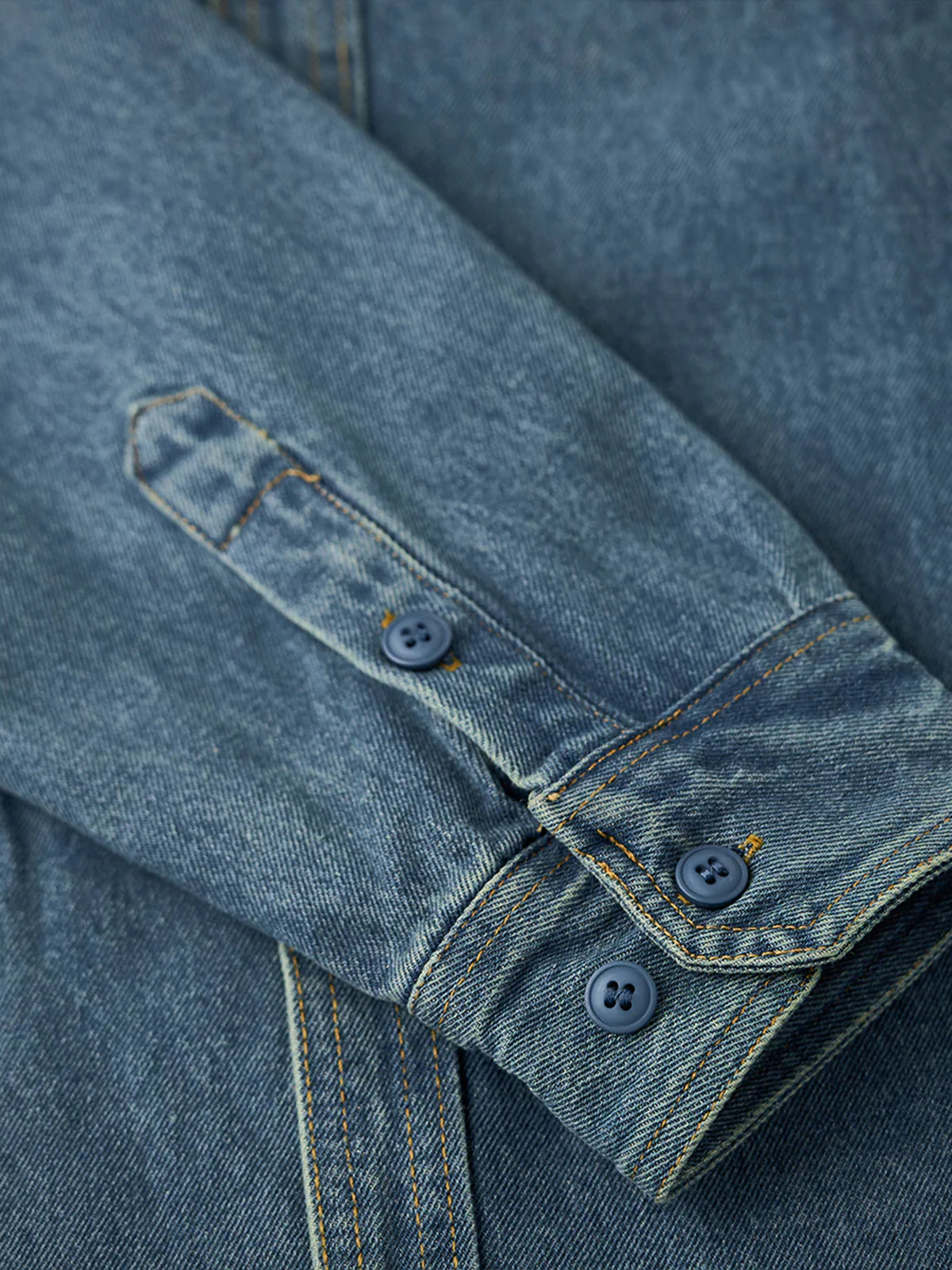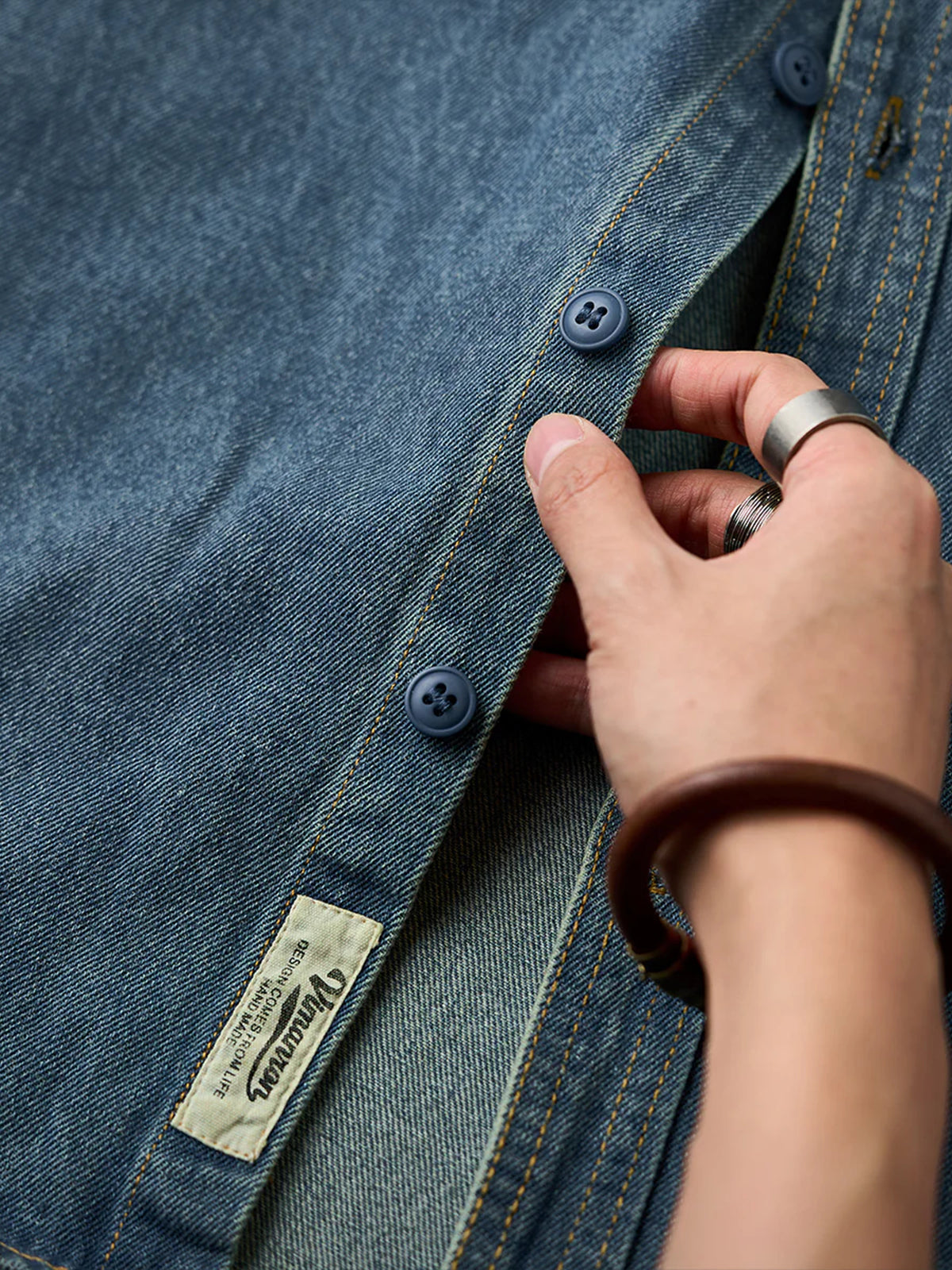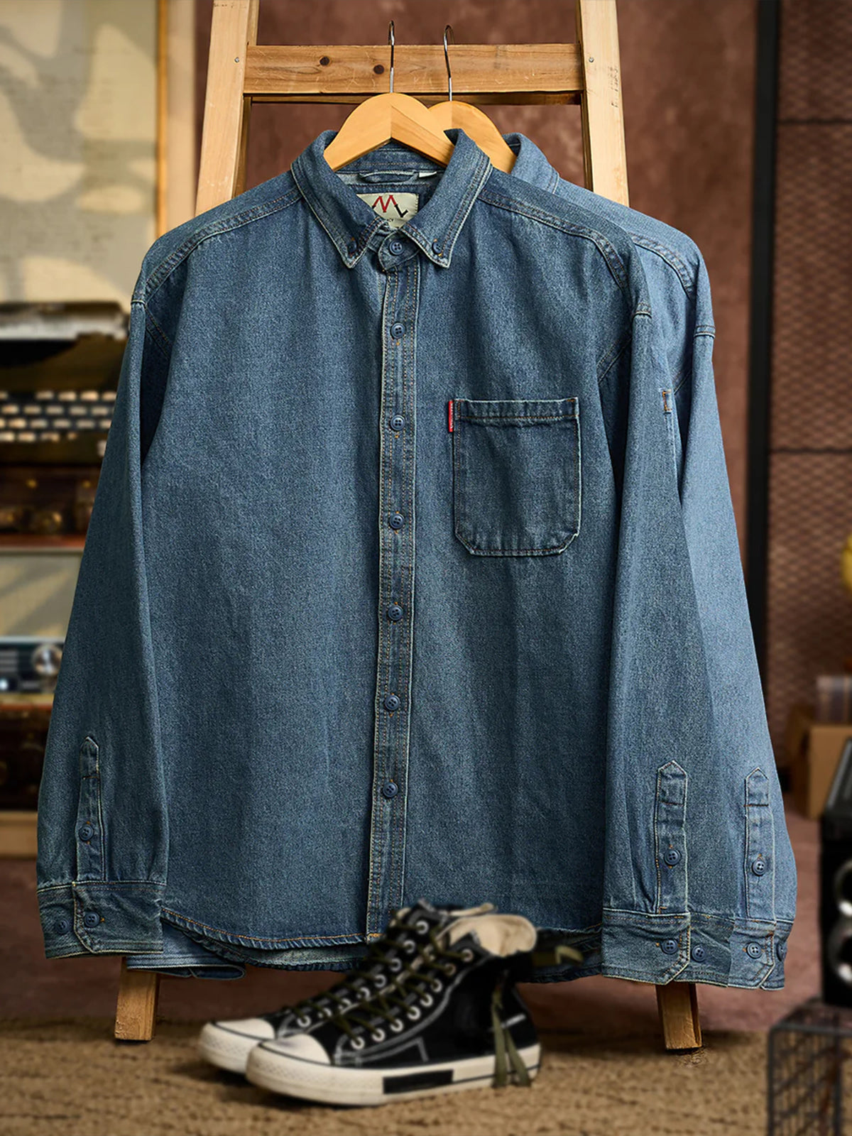 A denim work shirt that combines the ruggedness of traditional workwear with easy-to-wear styling. The washed finish gives a subtly faded, vintage-like look and a soft texture that feels comfortable from the very first wear. The rounded hem makes it easy to balance whether worn untucked, lightly layered, or styled for a layered look. The slightly longer back hem adds movement and a dynamic silhouette. Available in two colors, each offering a distinct vibe.