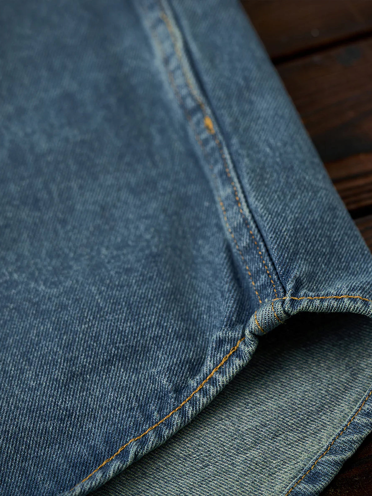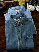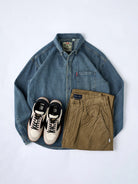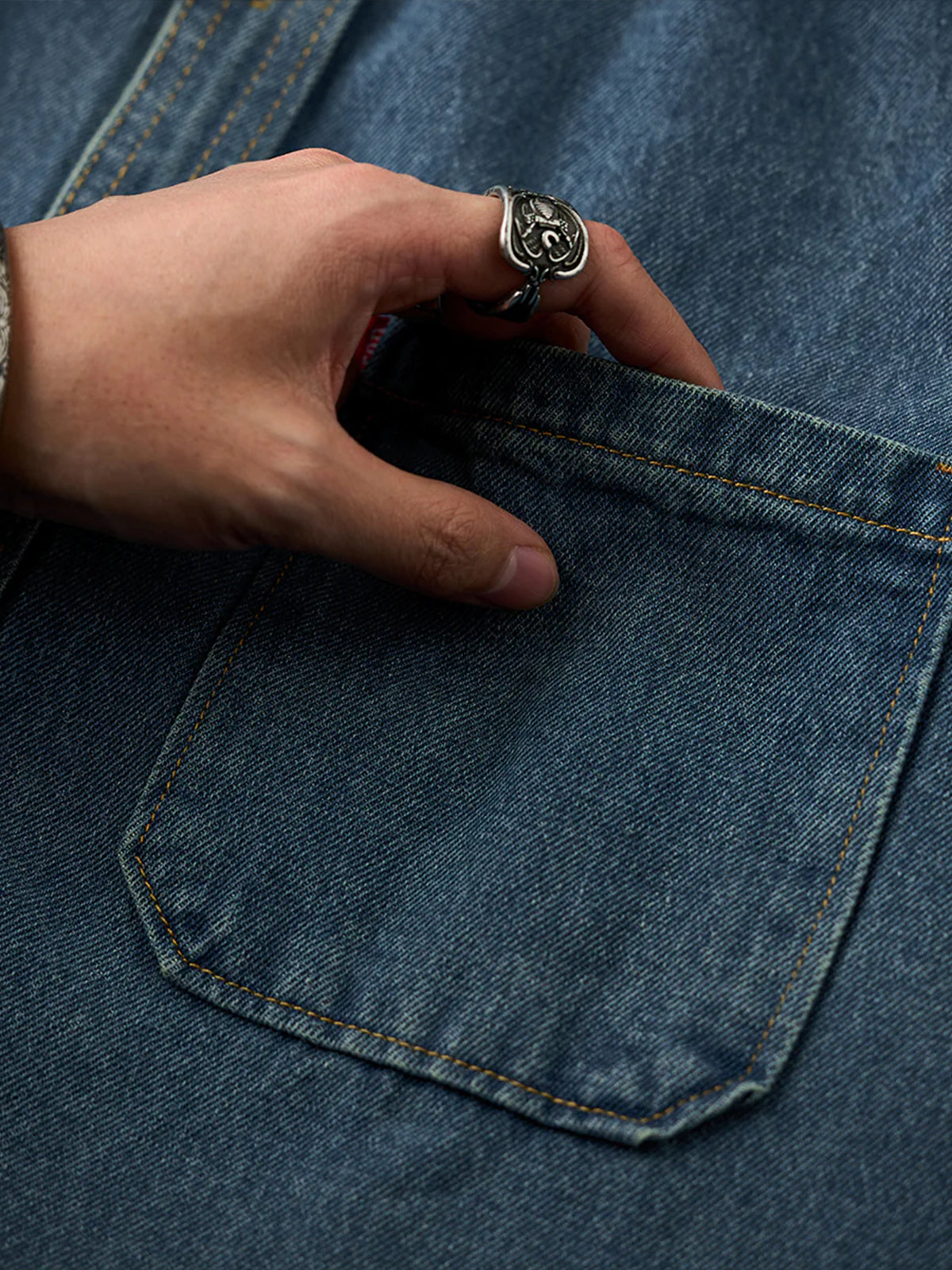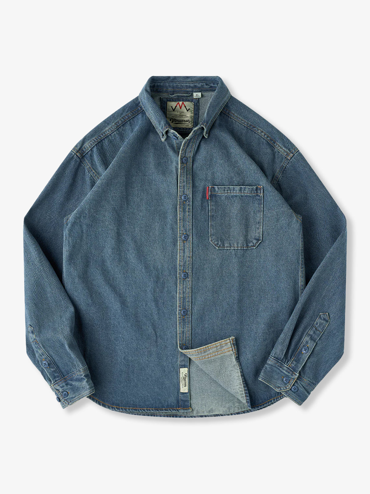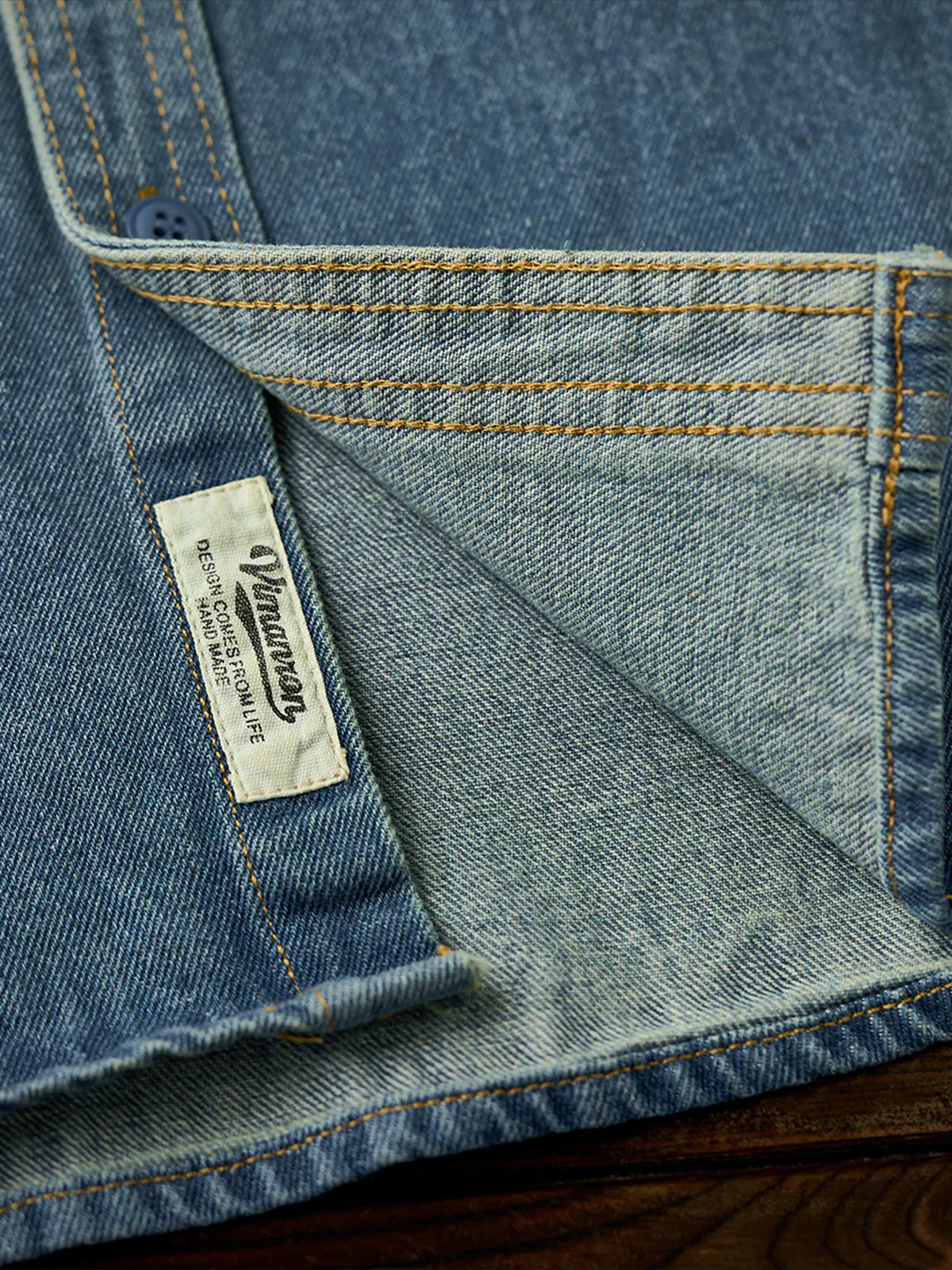A denim work shirt that combines the ruggedness of traditional workwear with easy-to-wear styling. The washed finish gives a subtly faded, vintage-like look and a soft texture that feels comfortable from the very first wear. The rounded hem makes it easy to balance whether worn untucked, lightly layered, or styled for a layered look. The slightly longer back hem adds movement and a dynamic silhouette. Available in two colors, each offering a distinct vibe.