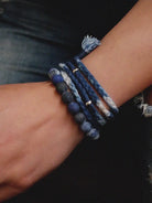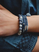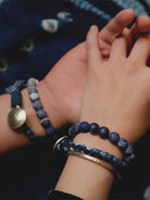 Introducing a chic bracelet made from Lapis Lazuli Tiger Eye, blue natural stones, and white turquoise! The gradient of blue shades creates a beautiful, calm, and luxurious impression. The Tiger Eye features dark blue stripes like fine veins, making it a very striking natural stone. Lapis Lazuli Tiger Eye is one of the oldest and most powerful stones, along with crystal. It is said to help ward off anger and jealousy and to protect against danger. The bracelet uses a simple elastic design, making it easy to put on and take off. Perfect for daily wear or as a charm for protection.