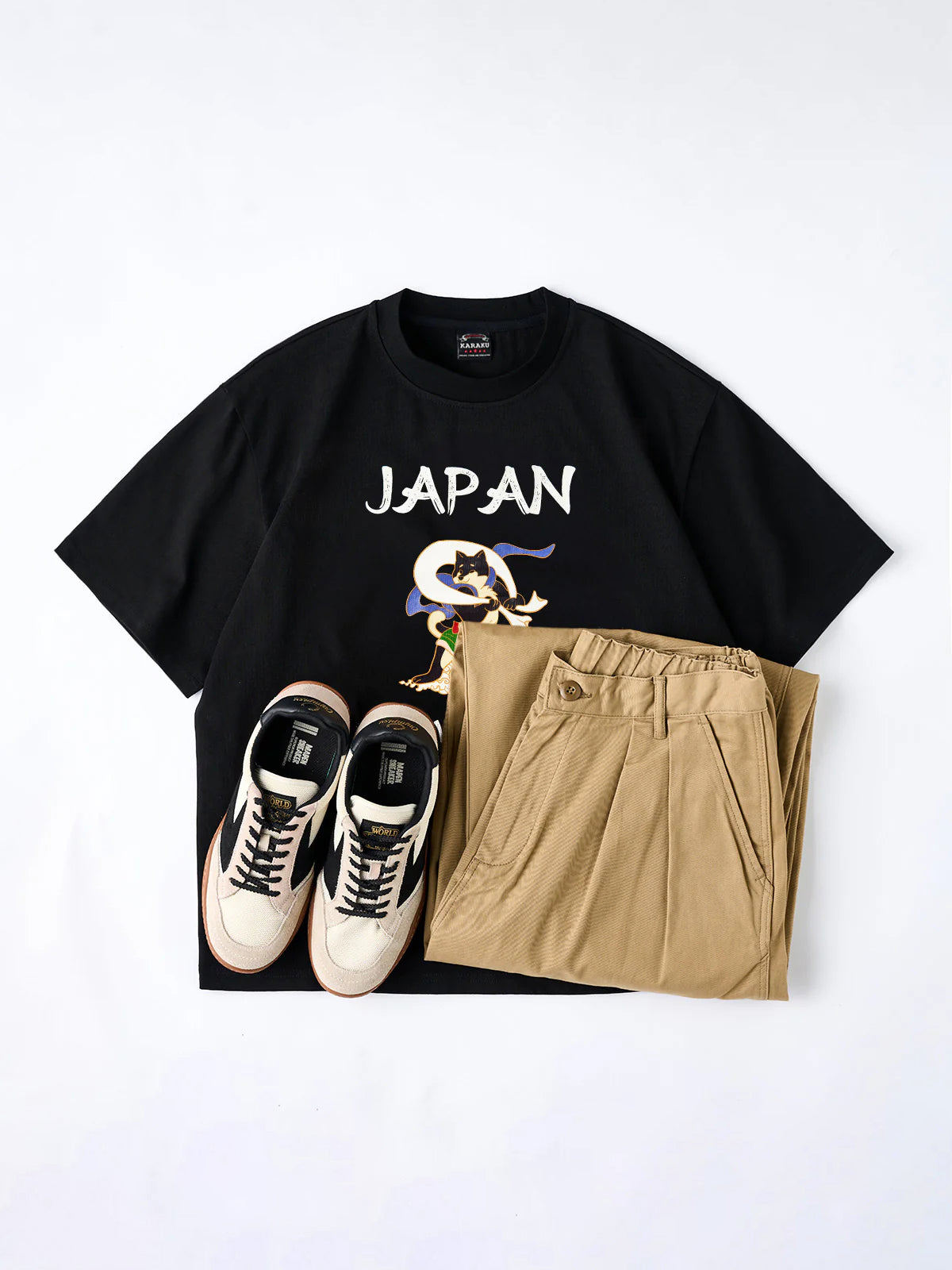 Designed with a comfortably relaxed fit, this T-shirt works just as well worn on its own as it does layered under a jacket. Blending humor with artistic inspiration, it’s a piece full of KARAKU’s signature playful spirit.