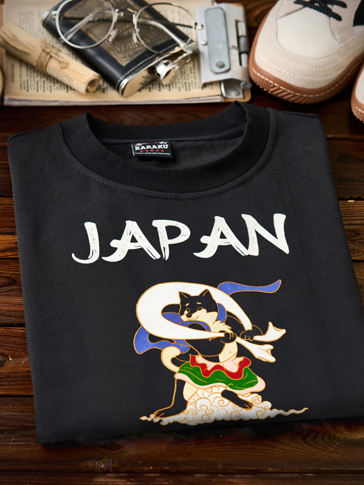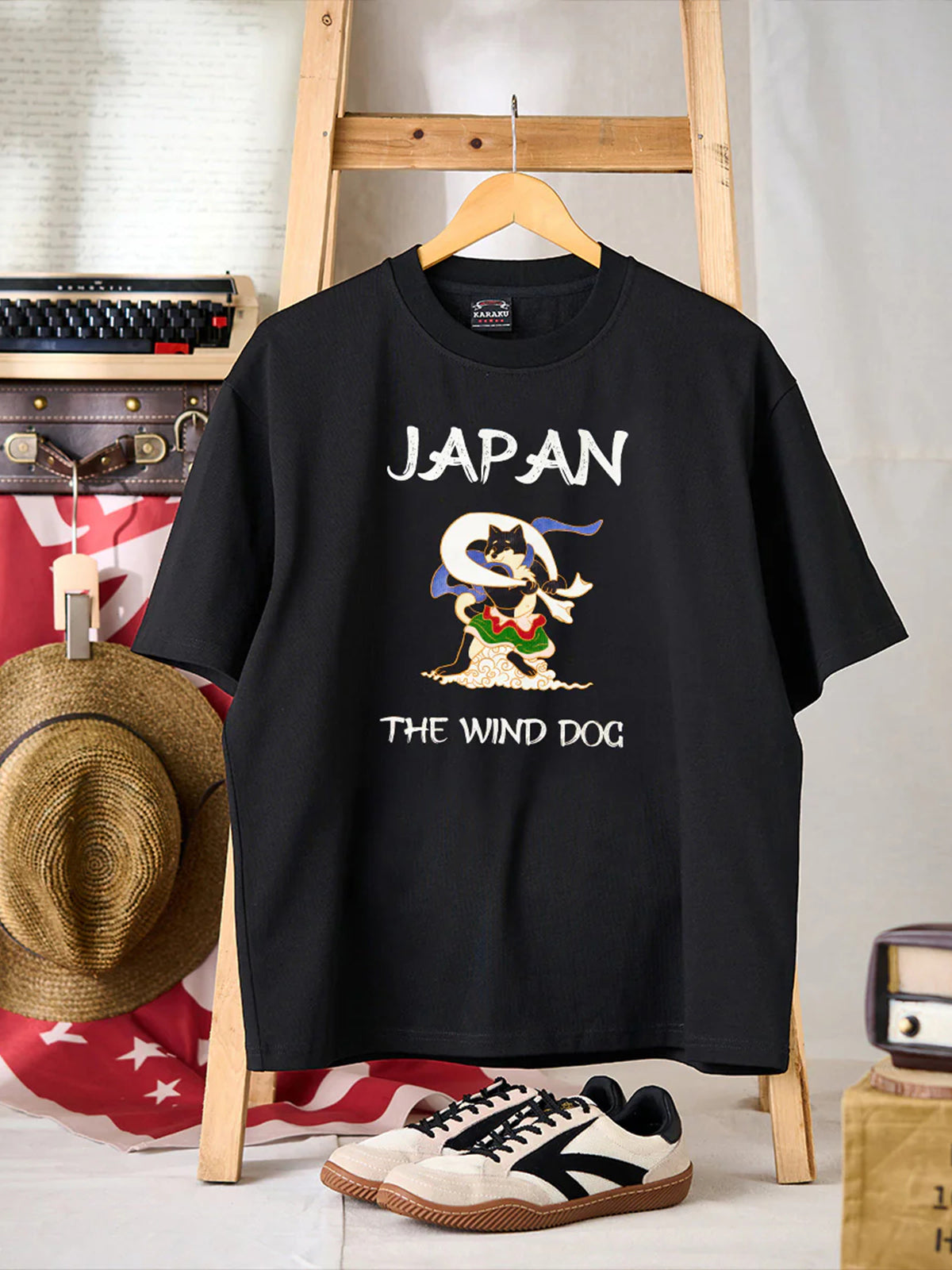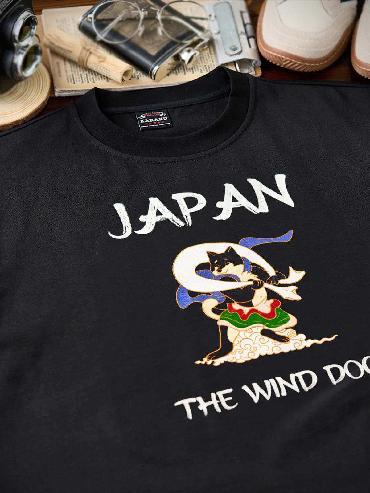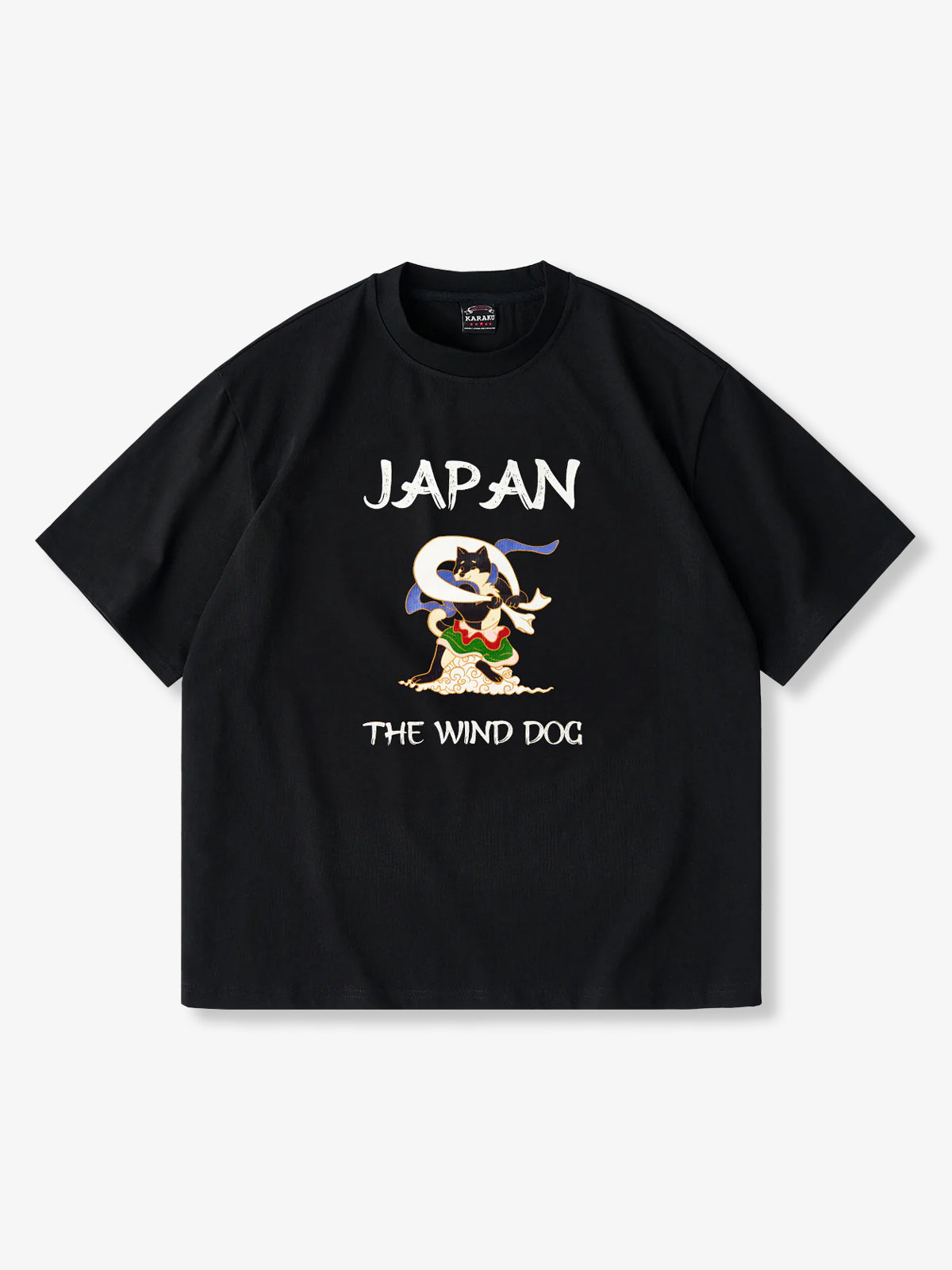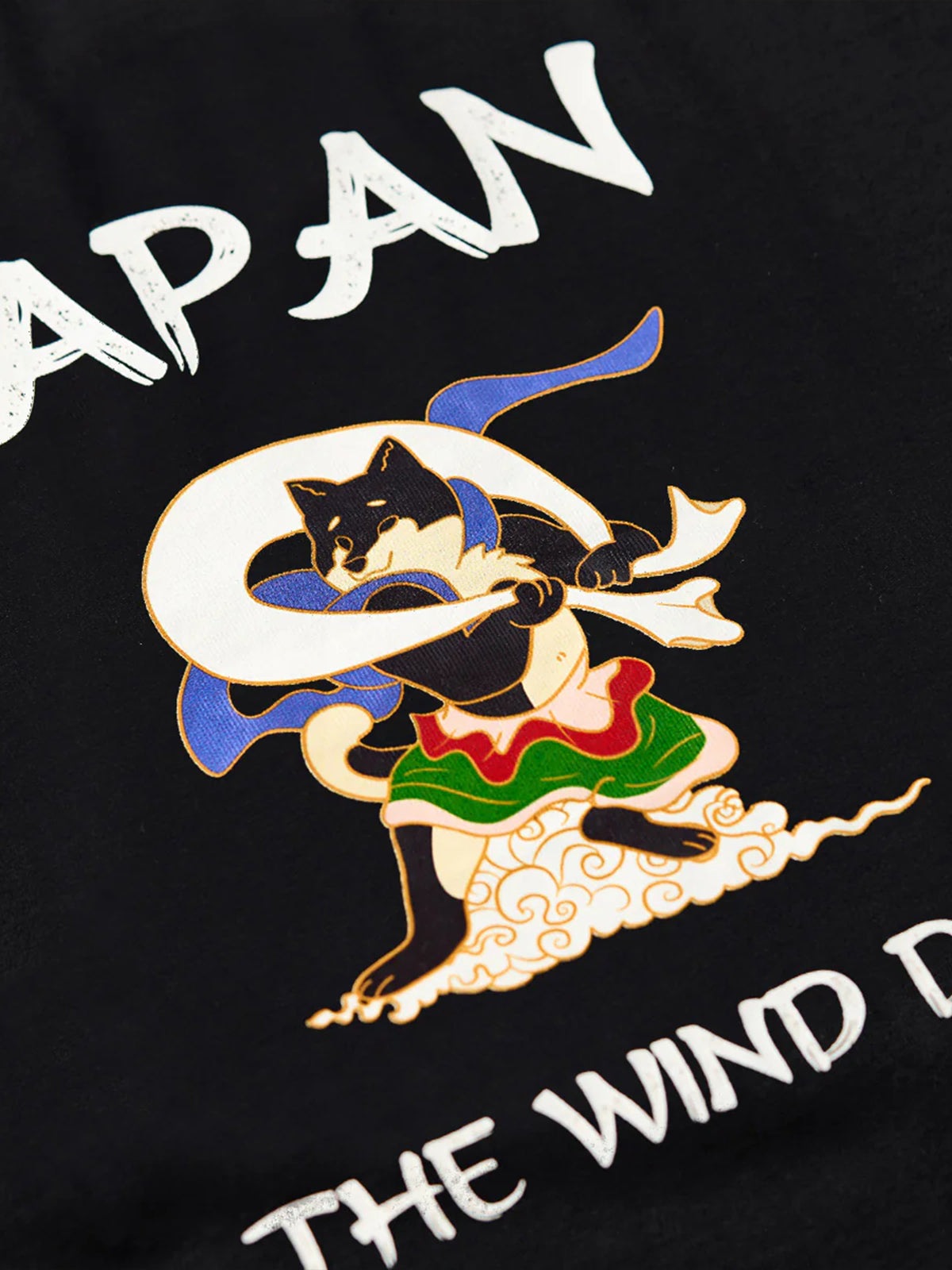 Inspired by the ukiyo-e masterpiece “Wind God and Thunder God,” this humorous parody T-shirt makes a bold statement. Taking center stage is the Black Shiba Wind God, striking a powerful pose as it whips up the wind. Above the graphic is the word “JAPAN,” while below it reads “THE WIND DOG”—a playful pun on “The Wind God” that’s sure to bring a smile to anyone who sees it.