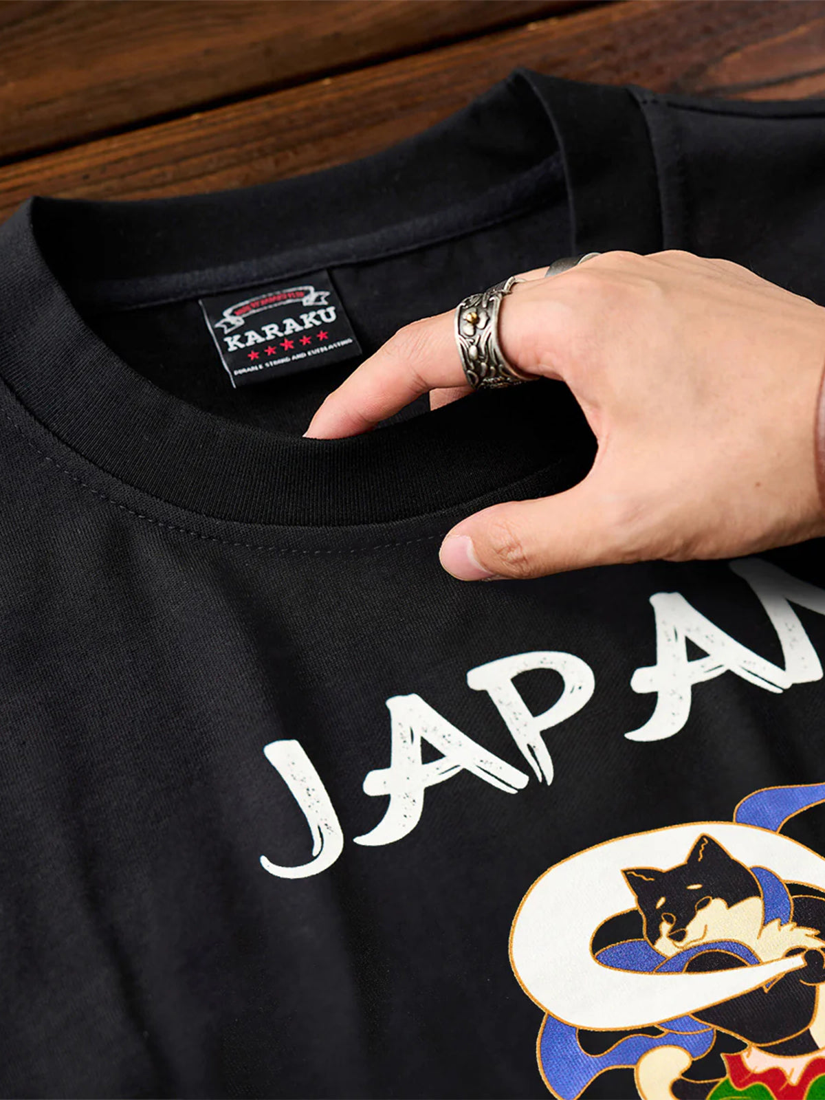 “Black Shiba Fujin” Parody-Style Printed Cotton T-Shirt