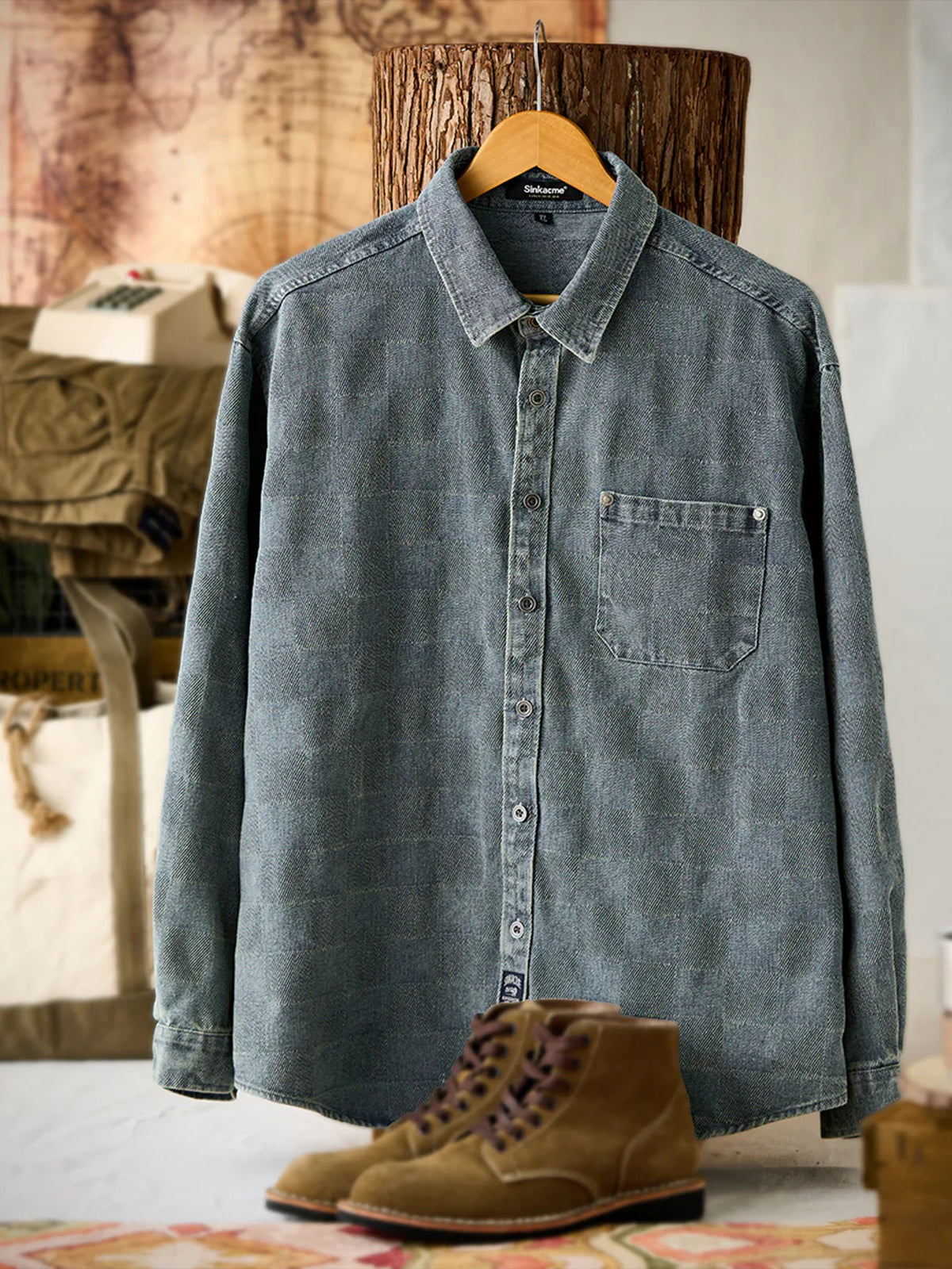 Distressed Check Denim Work Shirt
