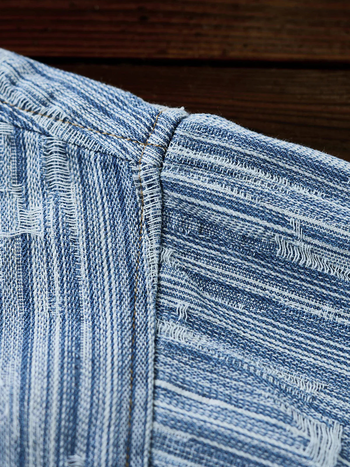 - Fabric Features: Made from durable and long-lasting denim fabric, it offers both comfortable wear and sturdiness. The entire piece has been washed, featuring fading and color variation that emphasize a vintage-like texture.