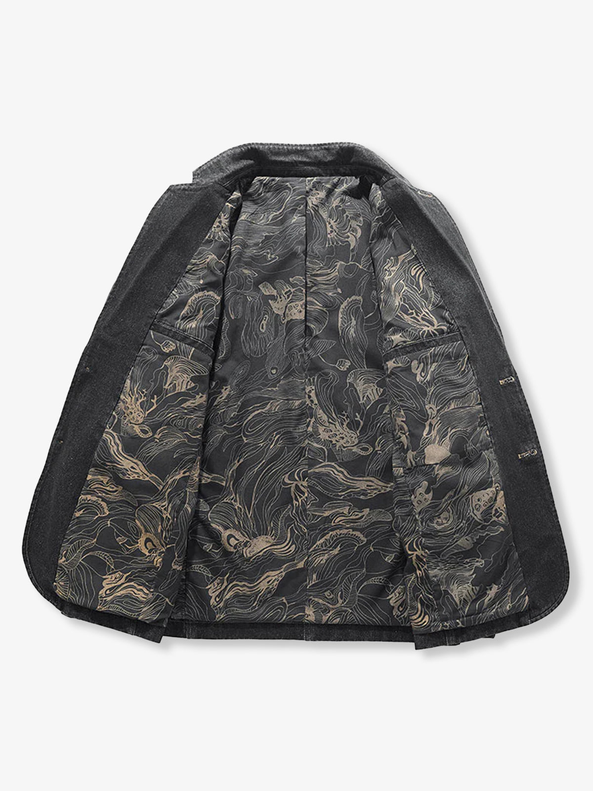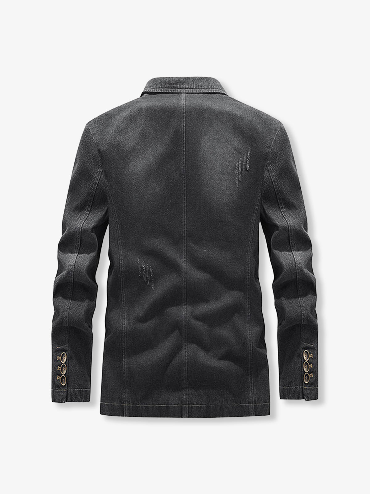 Uraha Pattern Denim Blazer Jacket with Distressed Finish