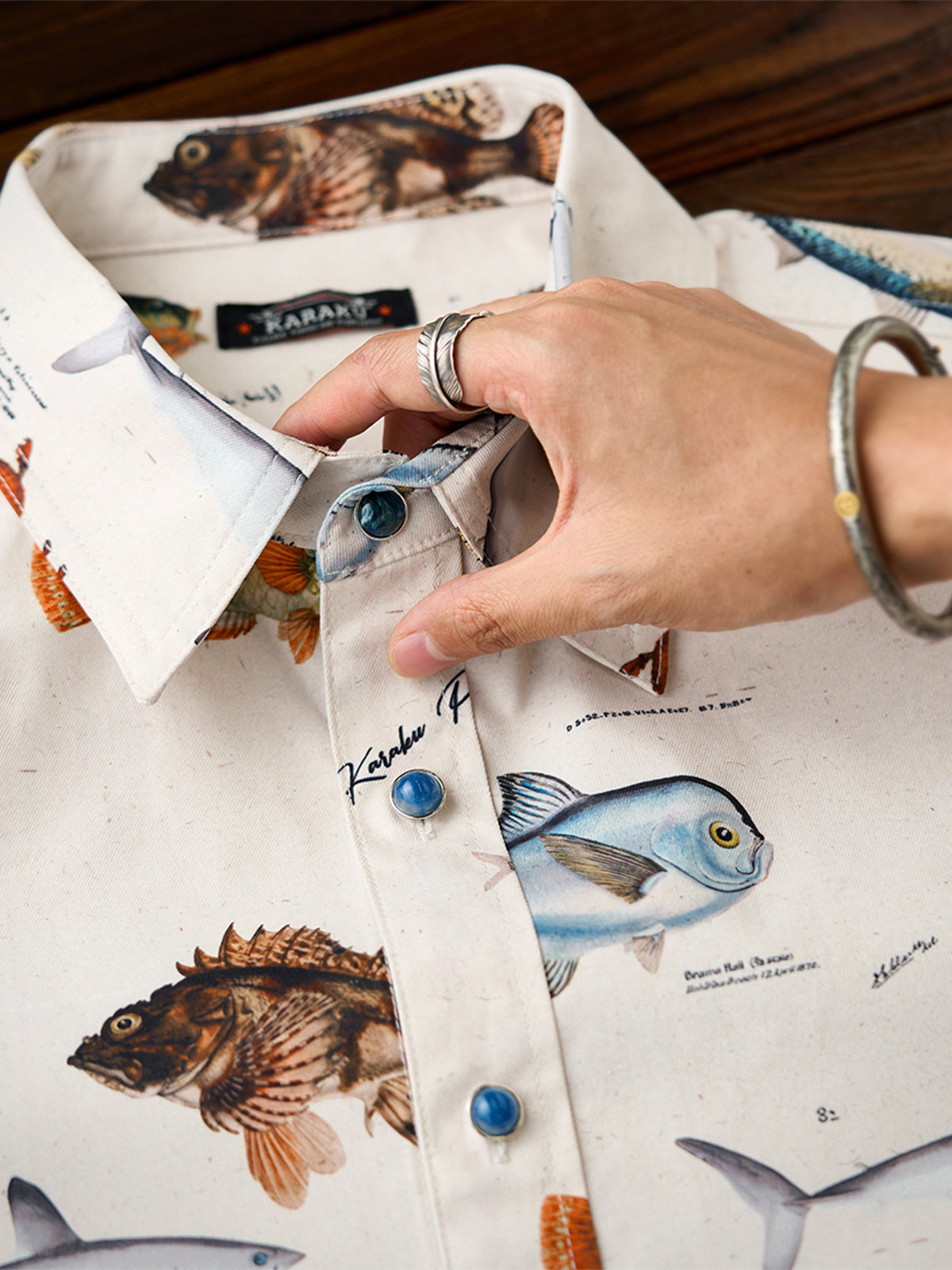 “Encyclopedia of Deep-Sea Fish” All-Over Print Long Sleeve Shirt with Custom Buttons