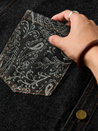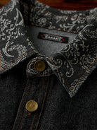 Washed Denim Shirt with Paisley Jacquard Details