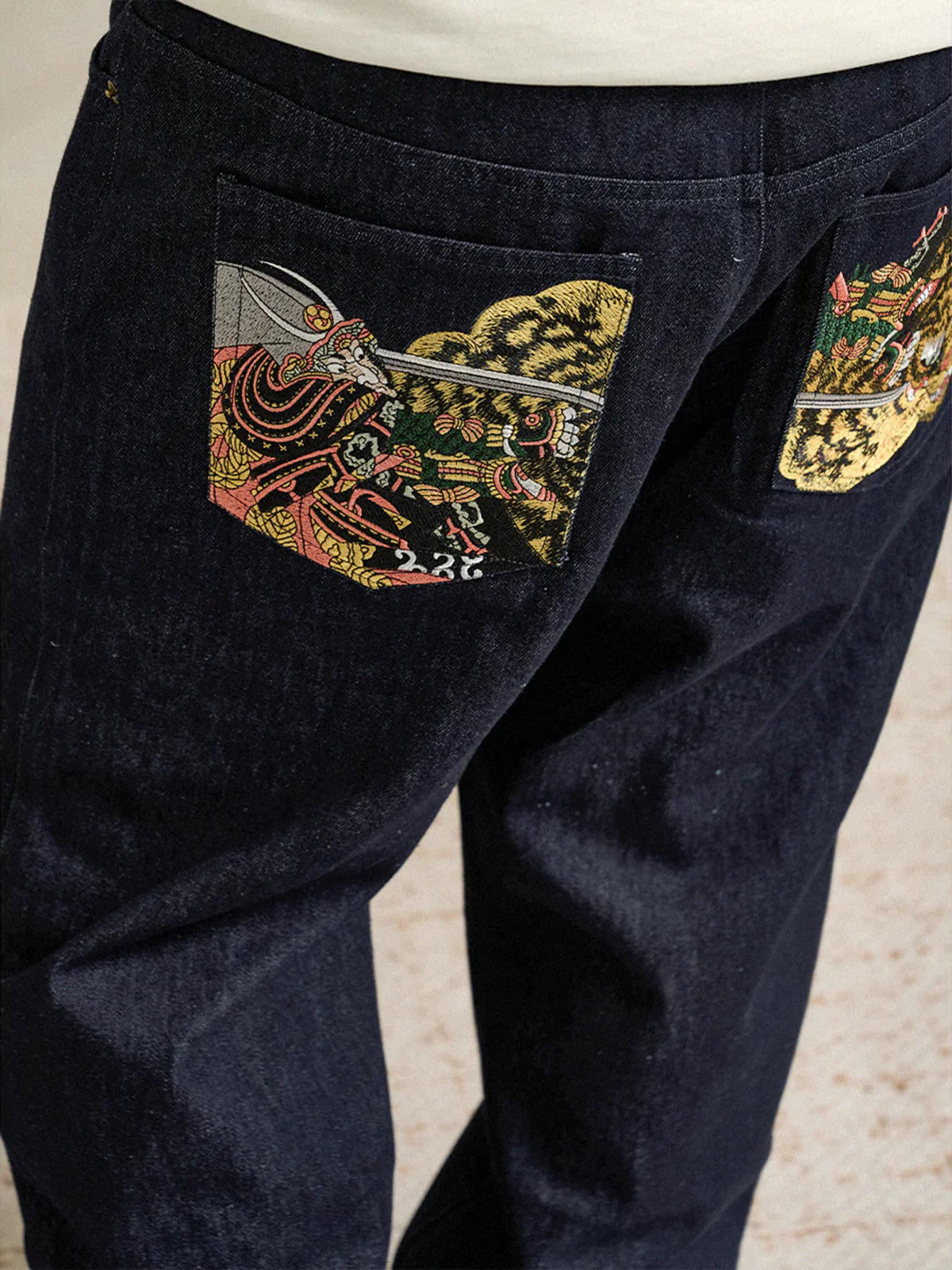 "Roaring Shogun Cat" Print & Karaku Embroidery T-shirt