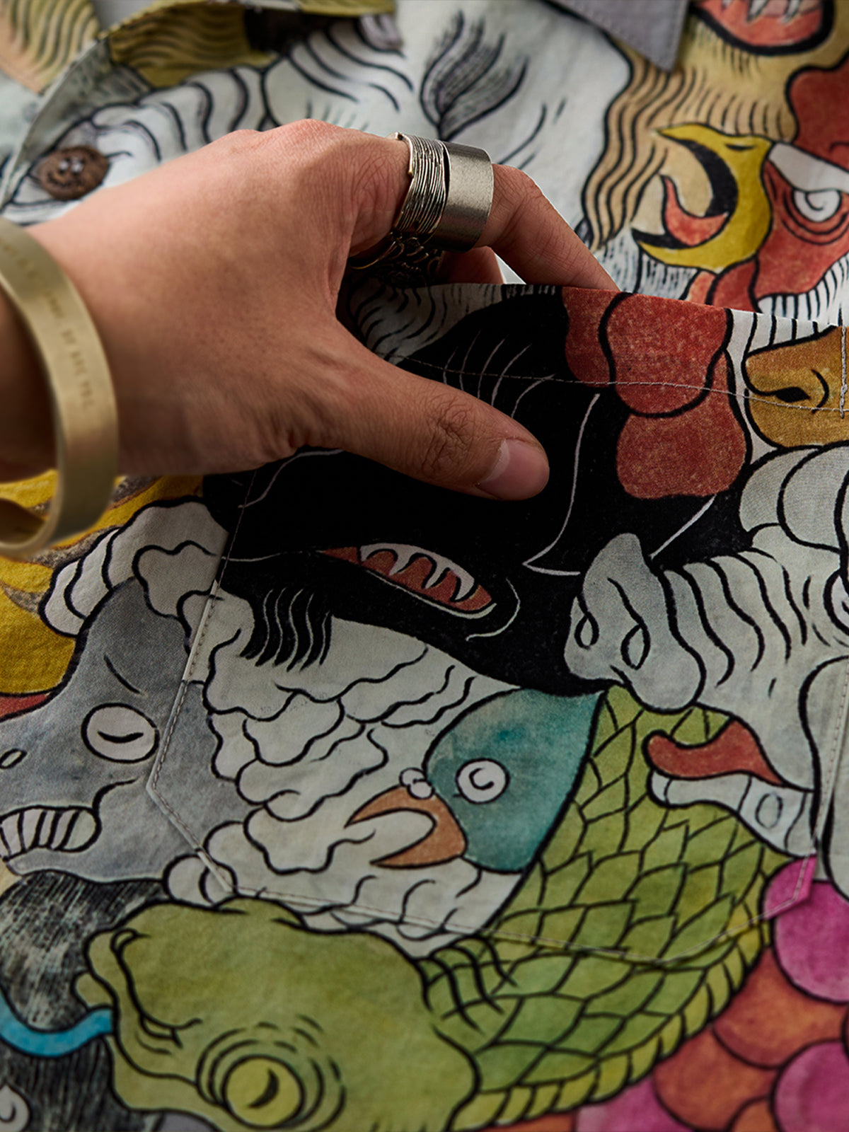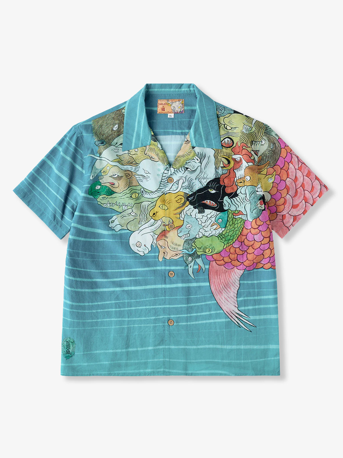 KARAKU×Ayako Ishiguro "Hundred-headed Fish" Ukiyo-e Style Tencel Aloha Shirt