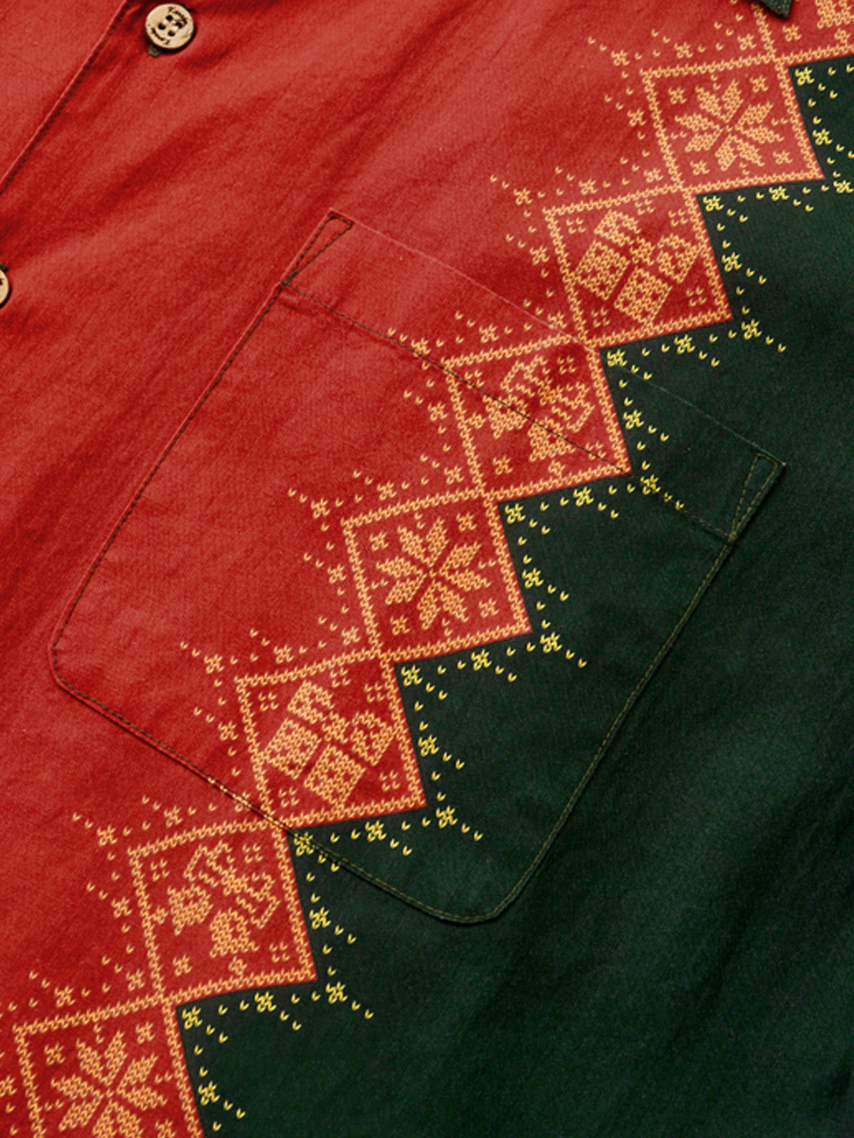 Inspired by the classic 60s and 70s retro style, this shirt combines reds and greens with festive Christmas patterns, creating holiday look. Made from soft, high-quality cotton, it ensures comfort and breathability for all-day wear. Perfect for holiday vacations or Christmas parties, this shirt captures the spirit of the season, making it a stylish choice for celebrating with friends and family.