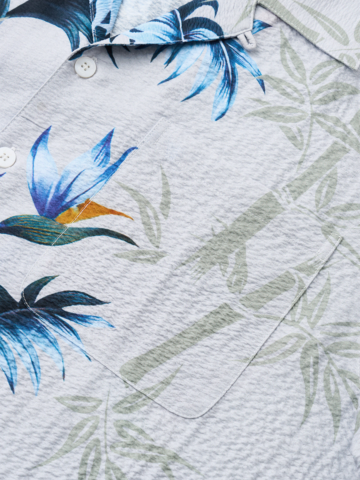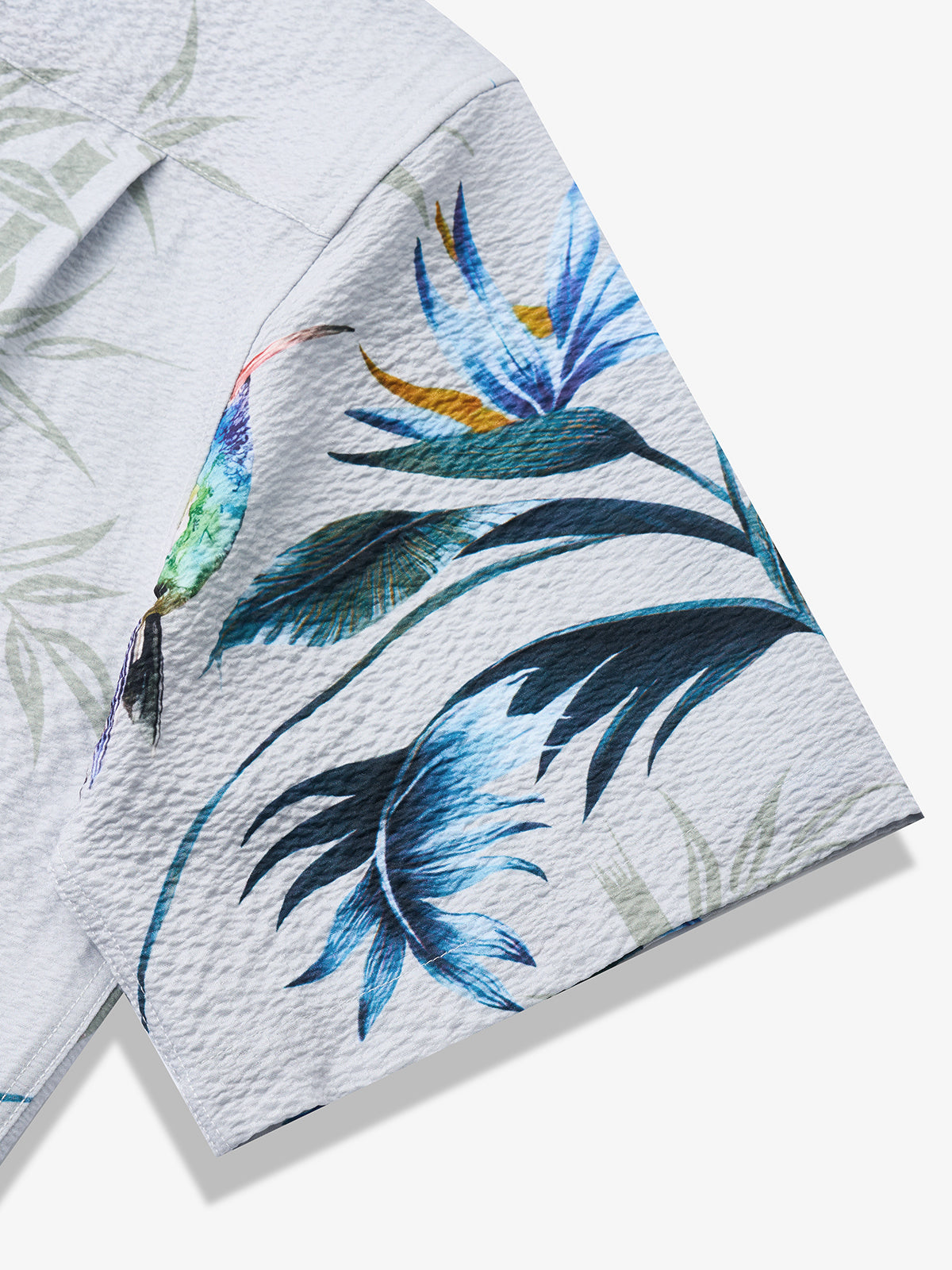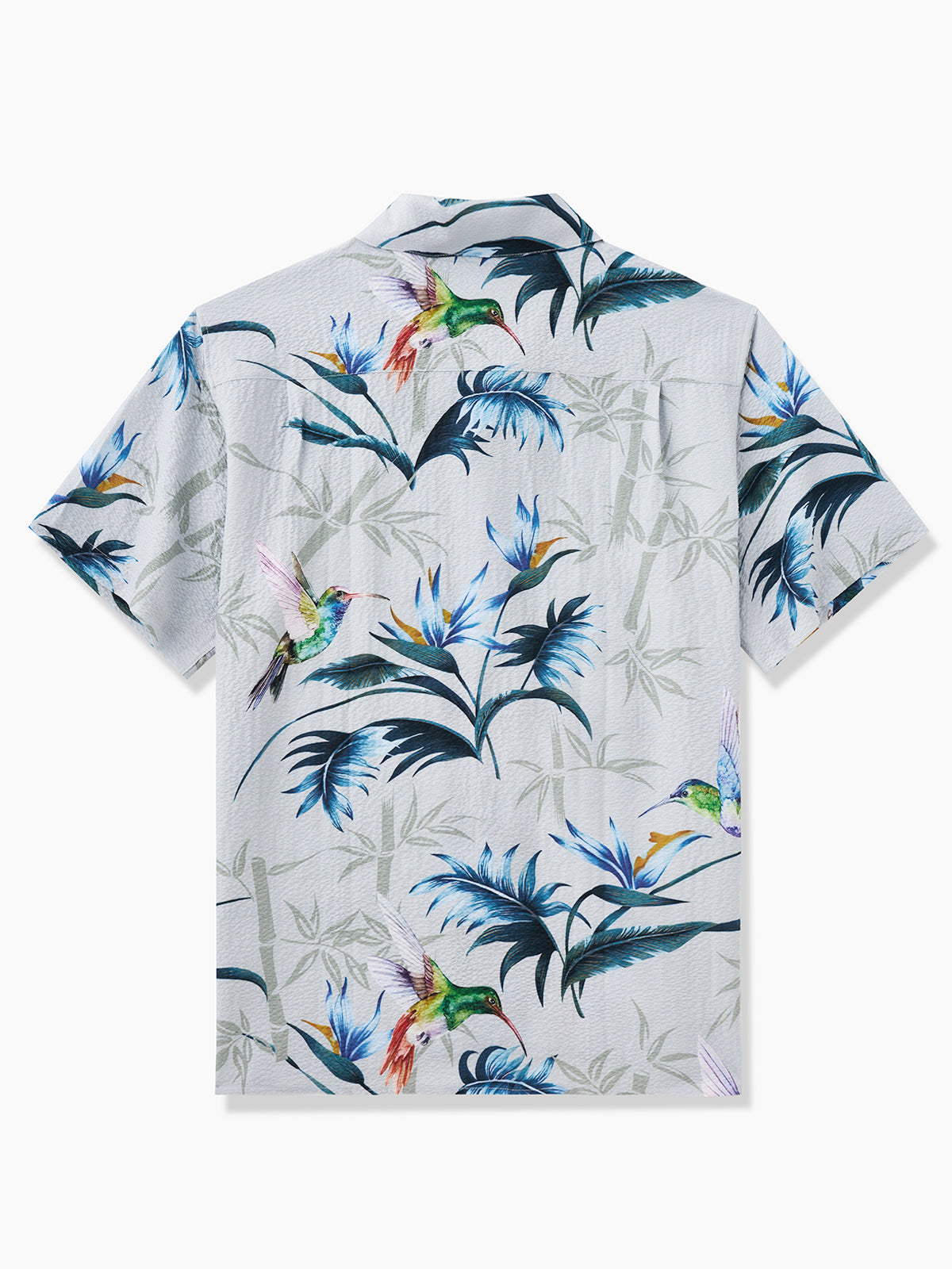 Inspired by bamboo and bird of paradise patterns, this shirt combines Eastern elegance with tropical beauty. Bamboo symbolizes resilience and growth, while the bird of paradise showcases the vibrant beauty of tropical flora. Wearing this shirt, you'll feel as if you're strolling through a serene bamboo grove and a lush tropical garden. Perfect for vacations, garden parties, and weekend gatherings.