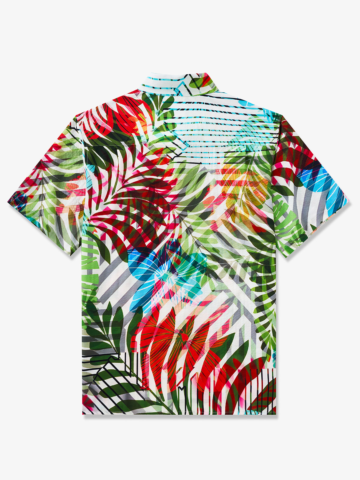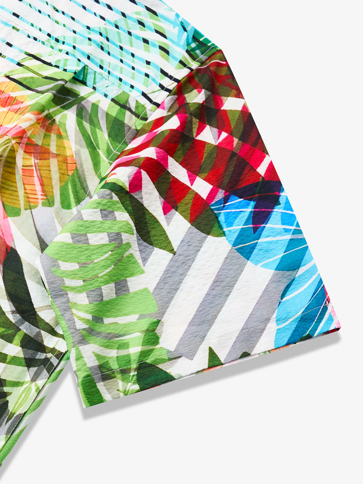 Inspired by the vibrant scenery of tropical rainforests, this shirt features bold colors and lush plant patterns that evoke the untamed spirit of the tropics. The seersucker fabric offers lightweight comfort and breathability. Perfect for beach vacations, weekend gatherings, or summer strolls, it's ideal for men who love nature, seek unique style, and enjoy outdoor living.