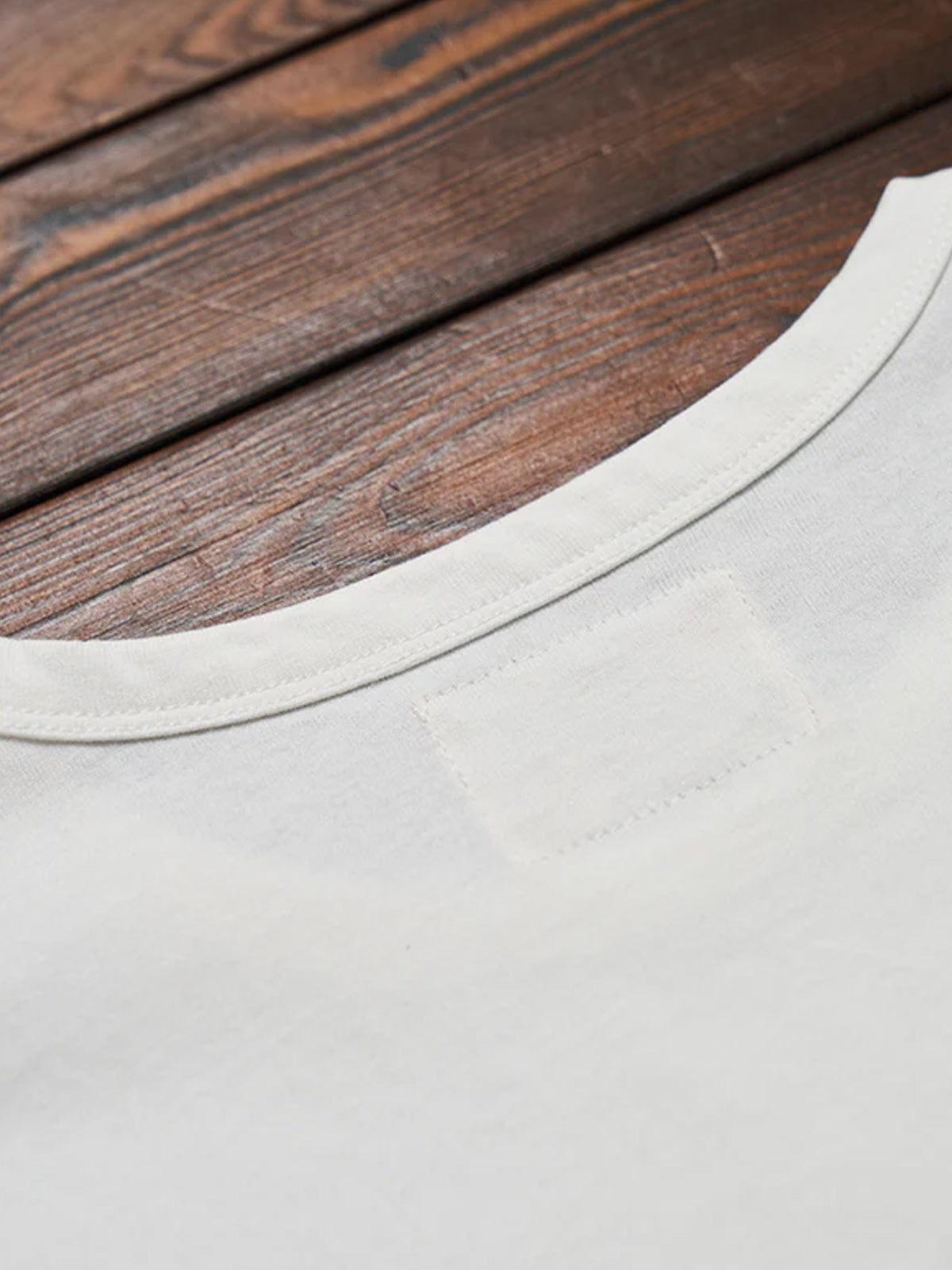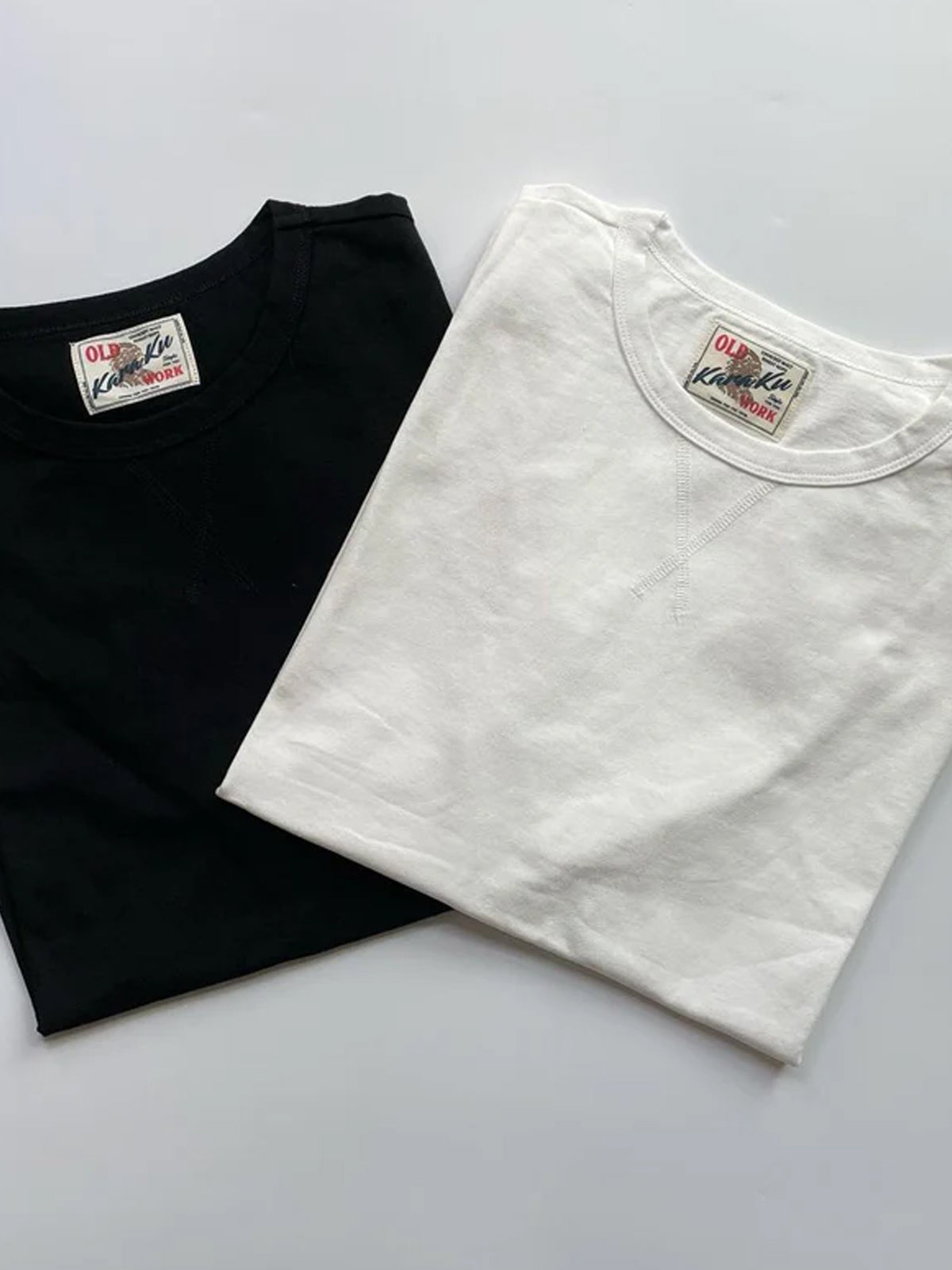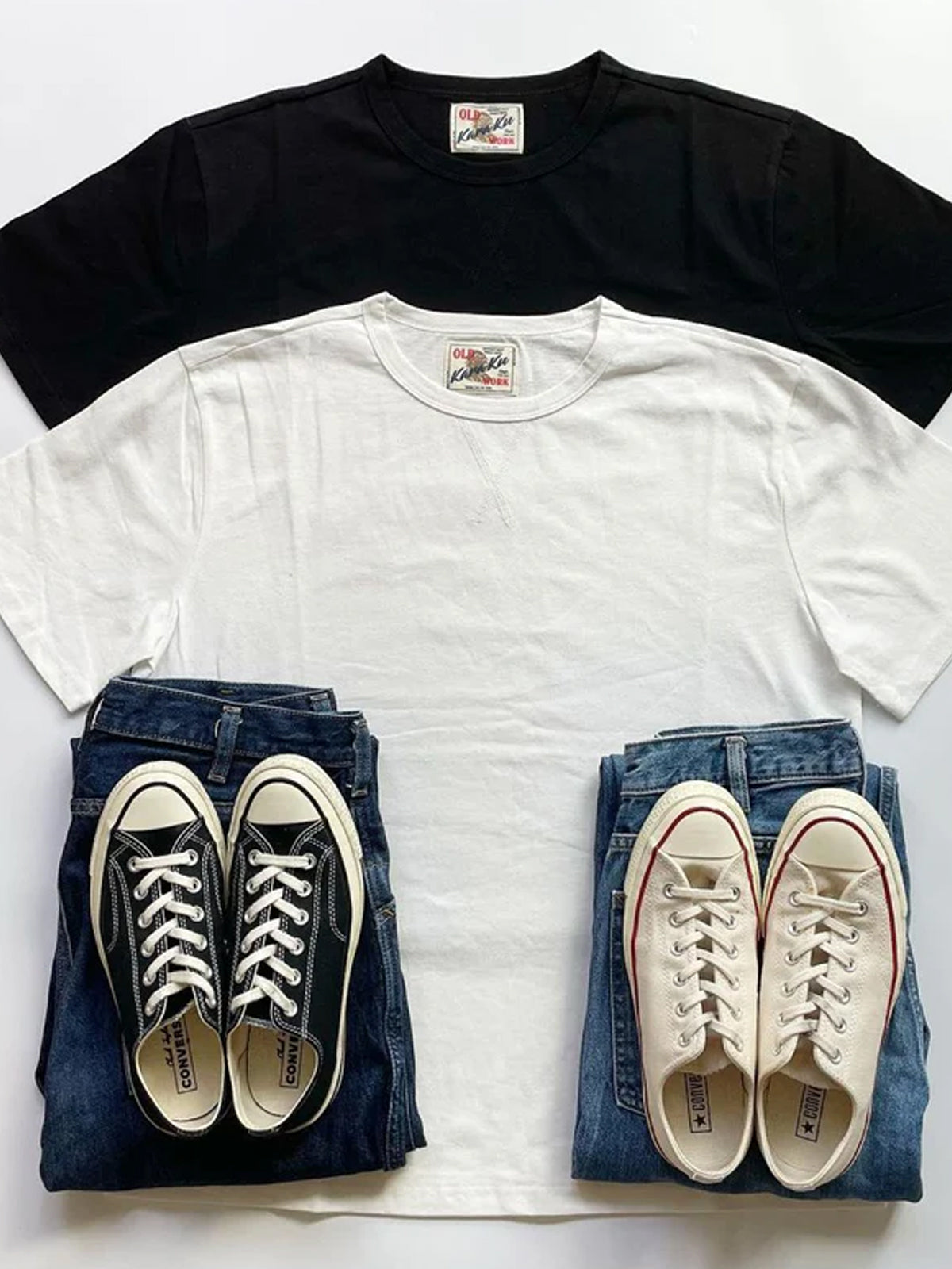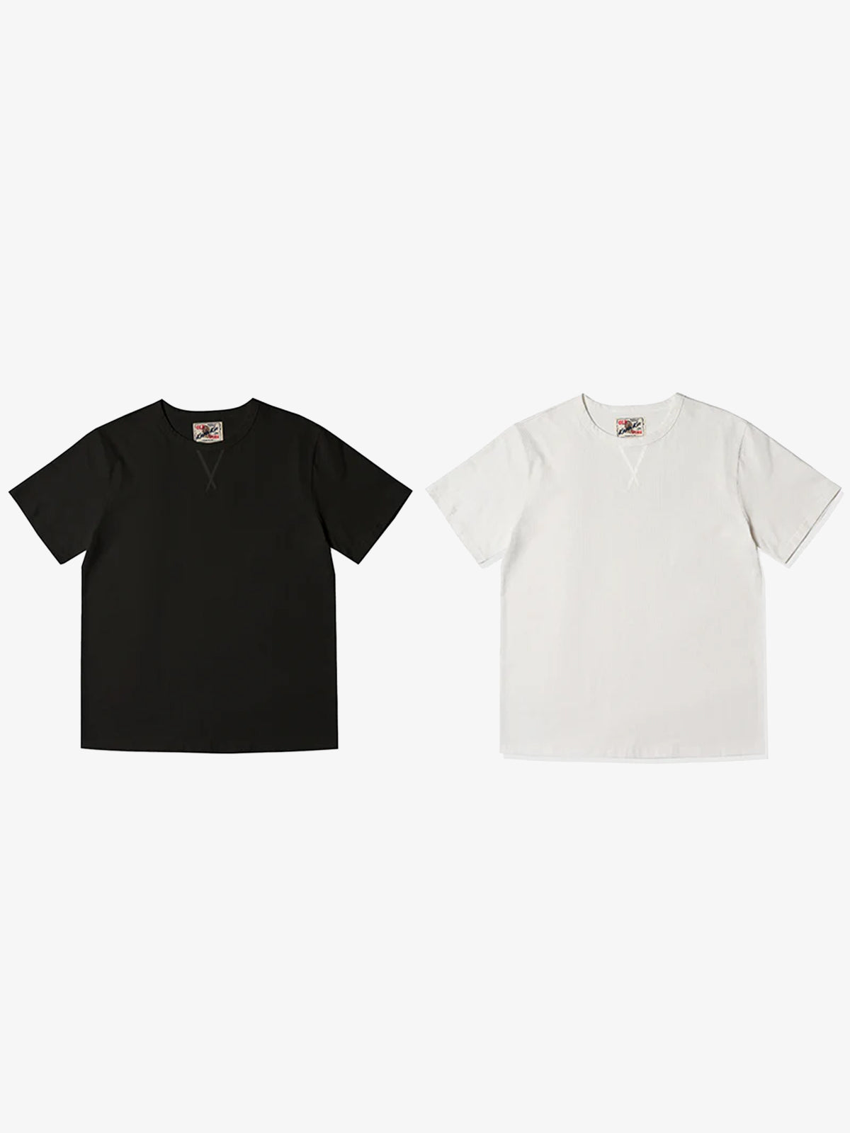The triangle sewn on the front is one of the main points, and it comes from the sneakers of the US Navy in the 1930s. The neck is a round neck, simple and clean. Ribbed knit, it gives a moderate fit and a neat impression. The silhouette is designed to fit the body while still being moderately spacious for a comfortable fit.There are two colors to choose from: black (suitable for any color) and white (with sufficient cleanliness).