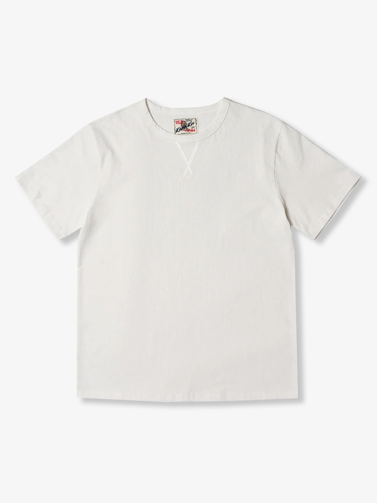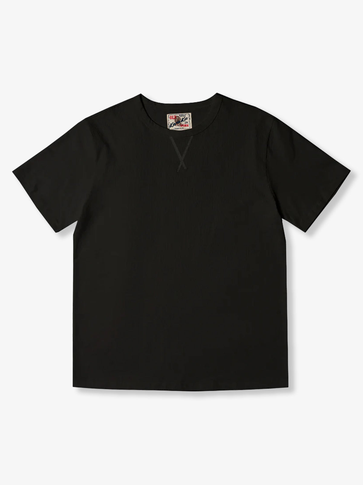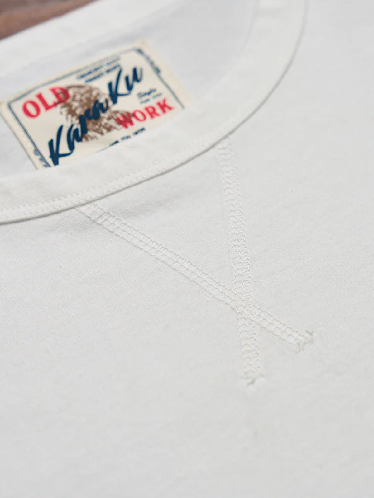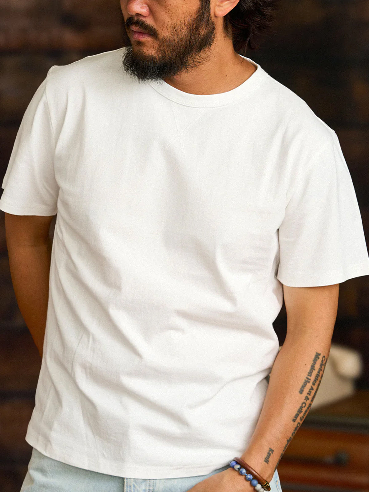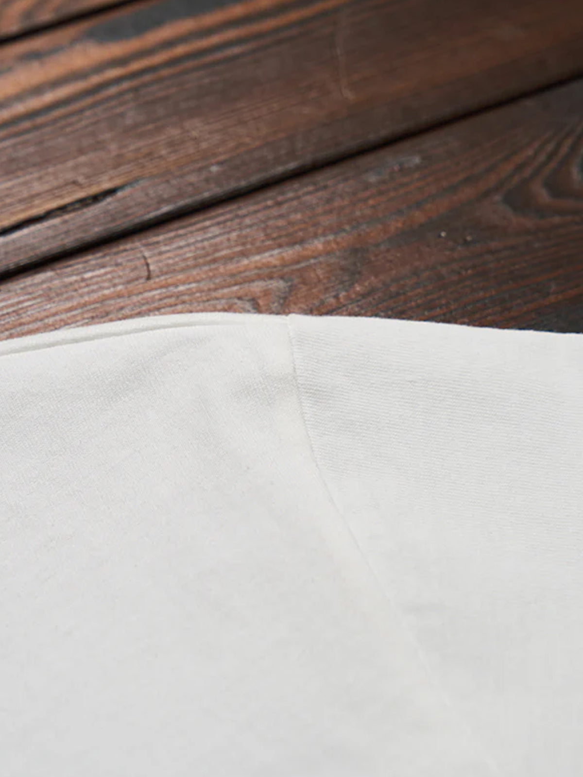 The triangle sewn on the front is one of the main points, and it comes from the sneakers of the US Navy in the 1930s. The neck is a round neck, simple and clean. Ribbed knit, it gives a moderate fit and a neat impression. The silhouette is designed to fit the body while still being moderately spacious for a comfortable fit.There are two colors to choose from: black (suitable for any color) and white (with sufficient cleanliness).
