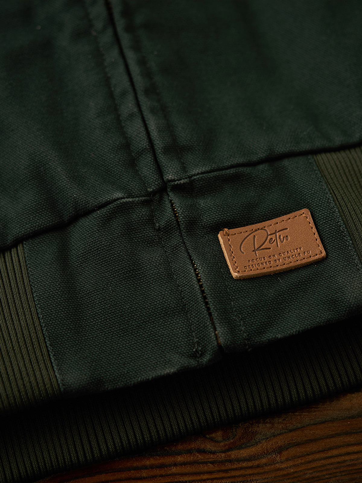 - Ribbed cuffs and hem