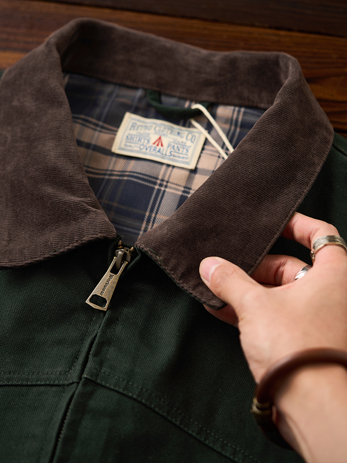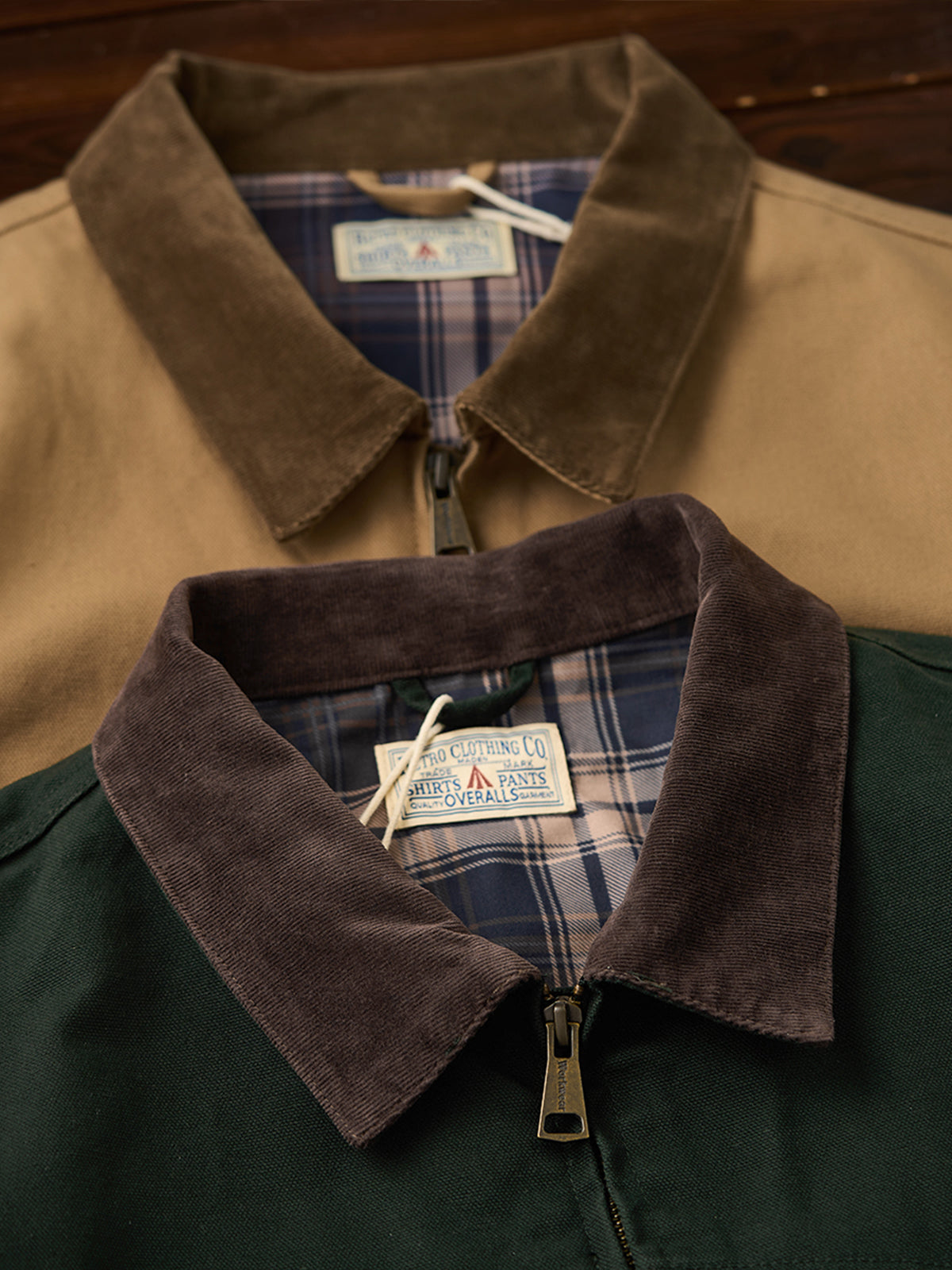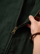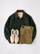Introducing the retro-inspired Santa Fe jacket, featuring a unique corduroy collar design. The ribbed cuffs and hem enhance warmth, while the sturdy canvas fabric shields against the wind. Crafted from tightly woven cotton canvas, it develops a charming vintage look with wear. Perfect for pairing with denim or chinos, this classic piece complements American casual and street styles.