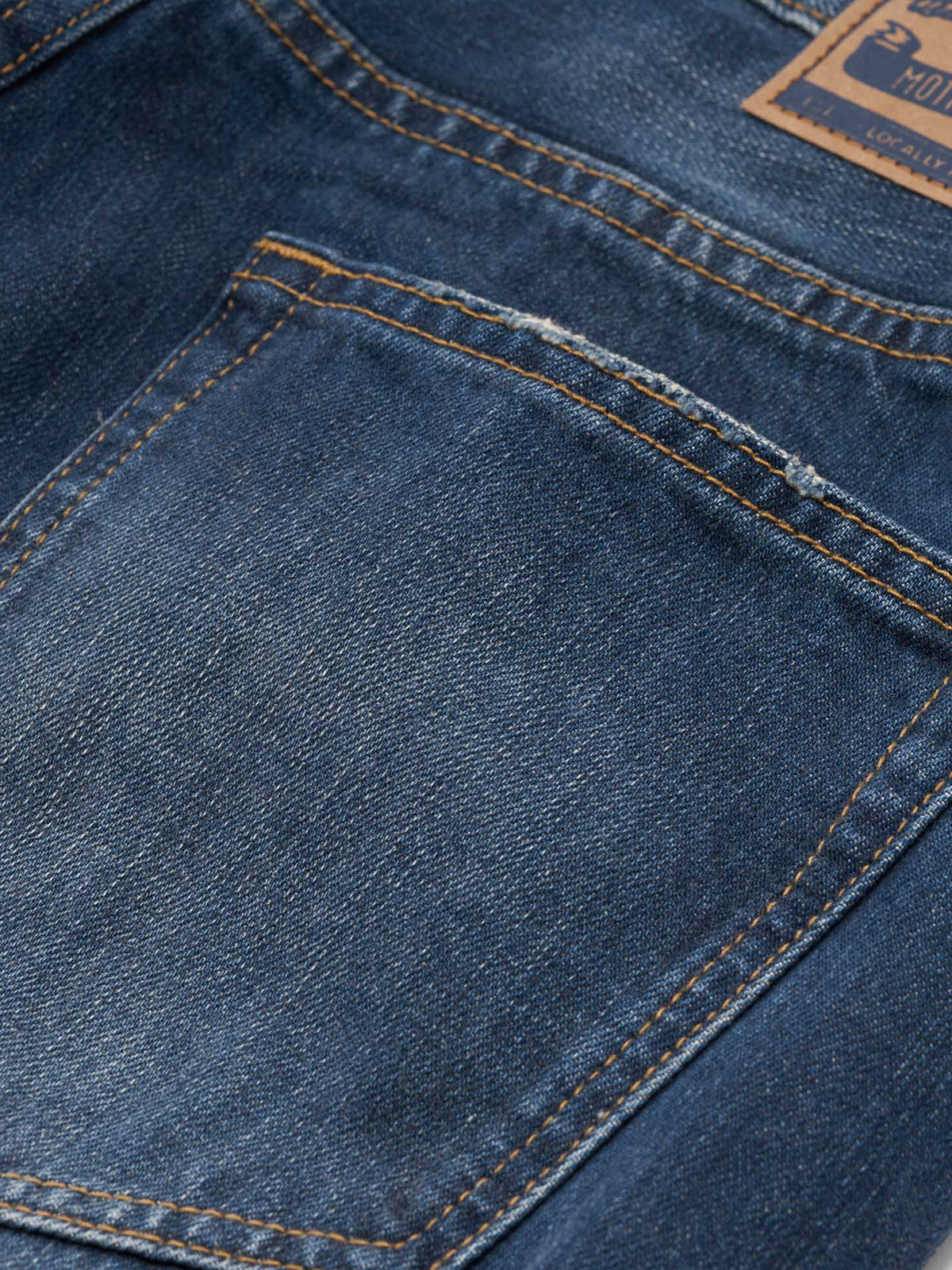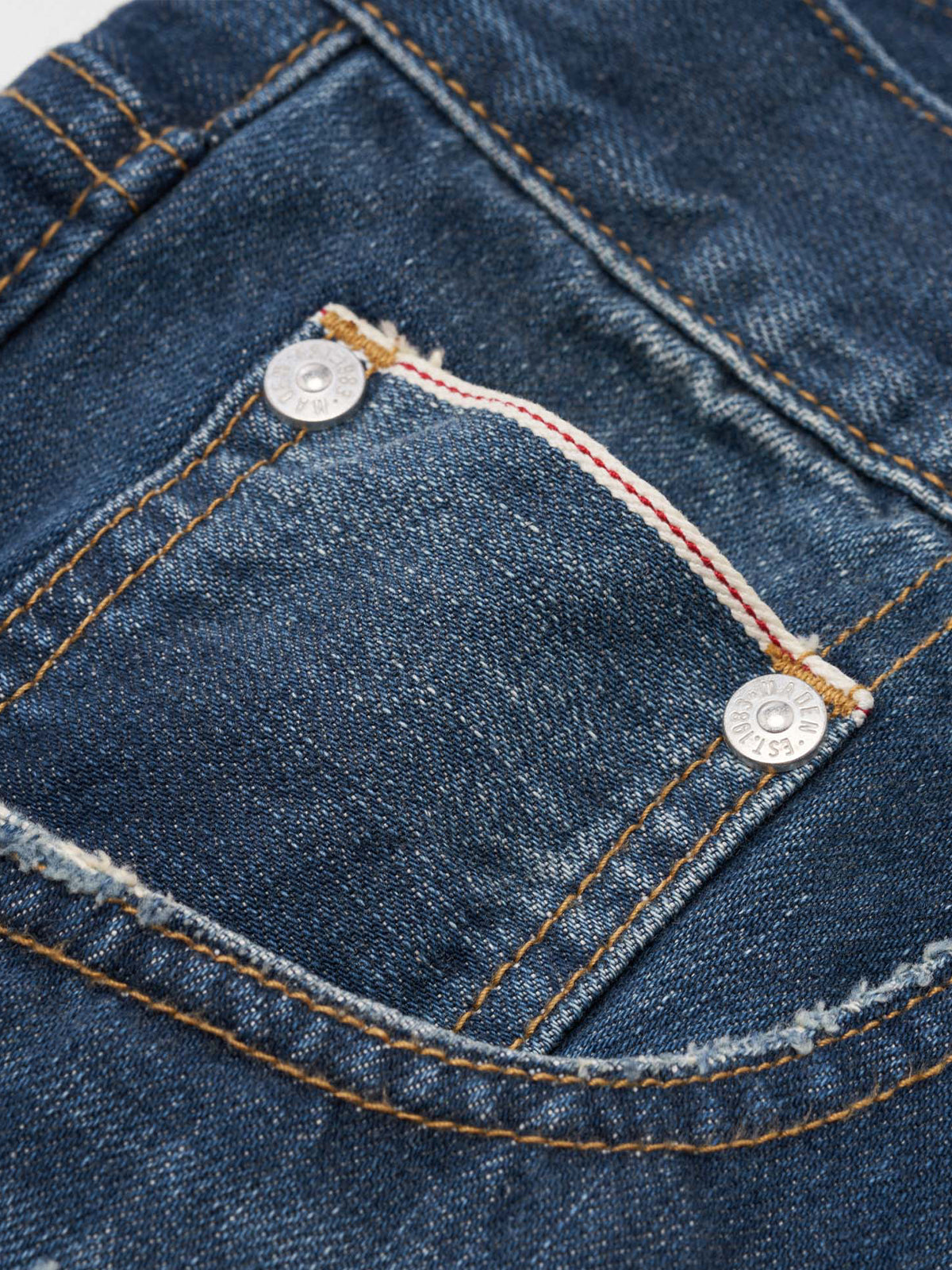 Inspired by classic denim with a modern twist, these stretch selvedge jeans capture timeless style and bold character. Crafted from 100% cotton, the fabric combines durability with flexibility, ensuring a comfortable fit and natural fade over time. Expertly distressed for a worn-in feel, these jeans pair effortlessly with casual tees or structured jackets, offering versatile styling for all ages.